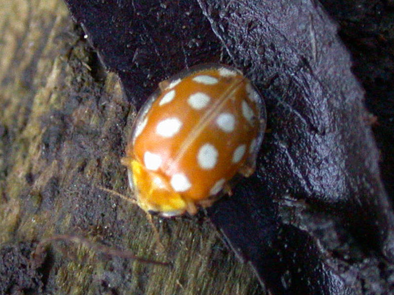 and (f. decempustulata) the spots fully joined leaving 10 irregular orange blobs.