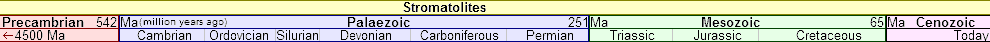 Timescale: Stromatolites have been around since Precambrian times, more than 542 million years ago.