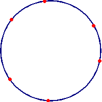 The points don't have to be evenly spaced around the circle, in fact, it's better if they aren't. The lines cross each other, of course, but you're not allowed to have three lines crossing at a point. If this happens, move one of the points so you get a small part within the three lines. On the other hand, if the points are bunched up too close to each other, the parts can be so tiny that you can't count them. To make it easier for you, this page will count them for you. Click on the buttons and see if you can spot the pattern!