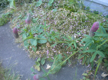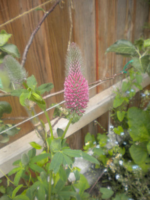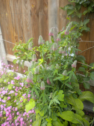 I bought these on a stall at Strawberry Fair (an annual Cambridge event). I tend to buy plants at such stalls, just to see what happens. It has the effect that they tend to flower at the event's time of year, as growers often like to sell plants in flower. This is definitely a strange plant, straggling a bit, but I like it. It has a reasonably long growing period. I know that some of the photos make it look like a lupin, but it doesn't, really! It's much smaller, doesn't form seed heads in the same way, and has a floppy stalk. The leaves and flower head are longer than ordinary clover.