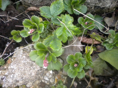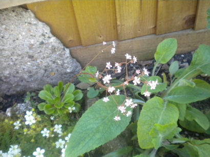London Pride is a perennial. This flowered in May. The photo shows before it is fully out. The flower stem grows longer, with the flowers at the top.