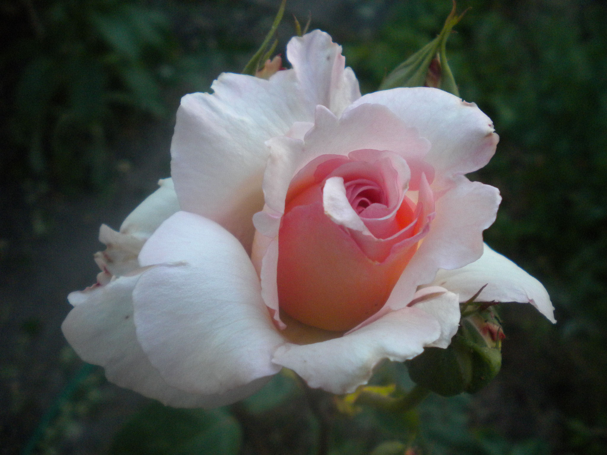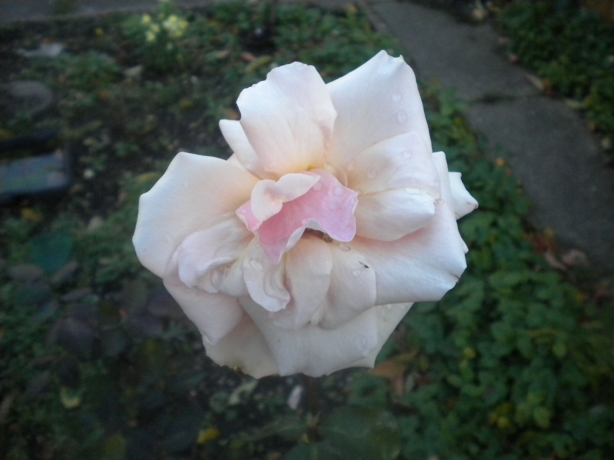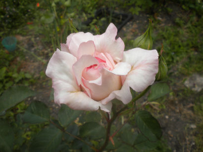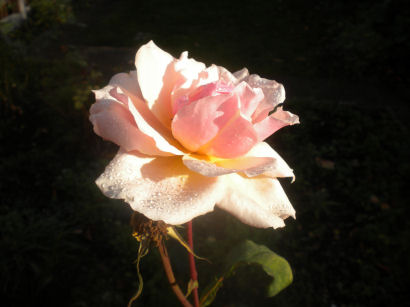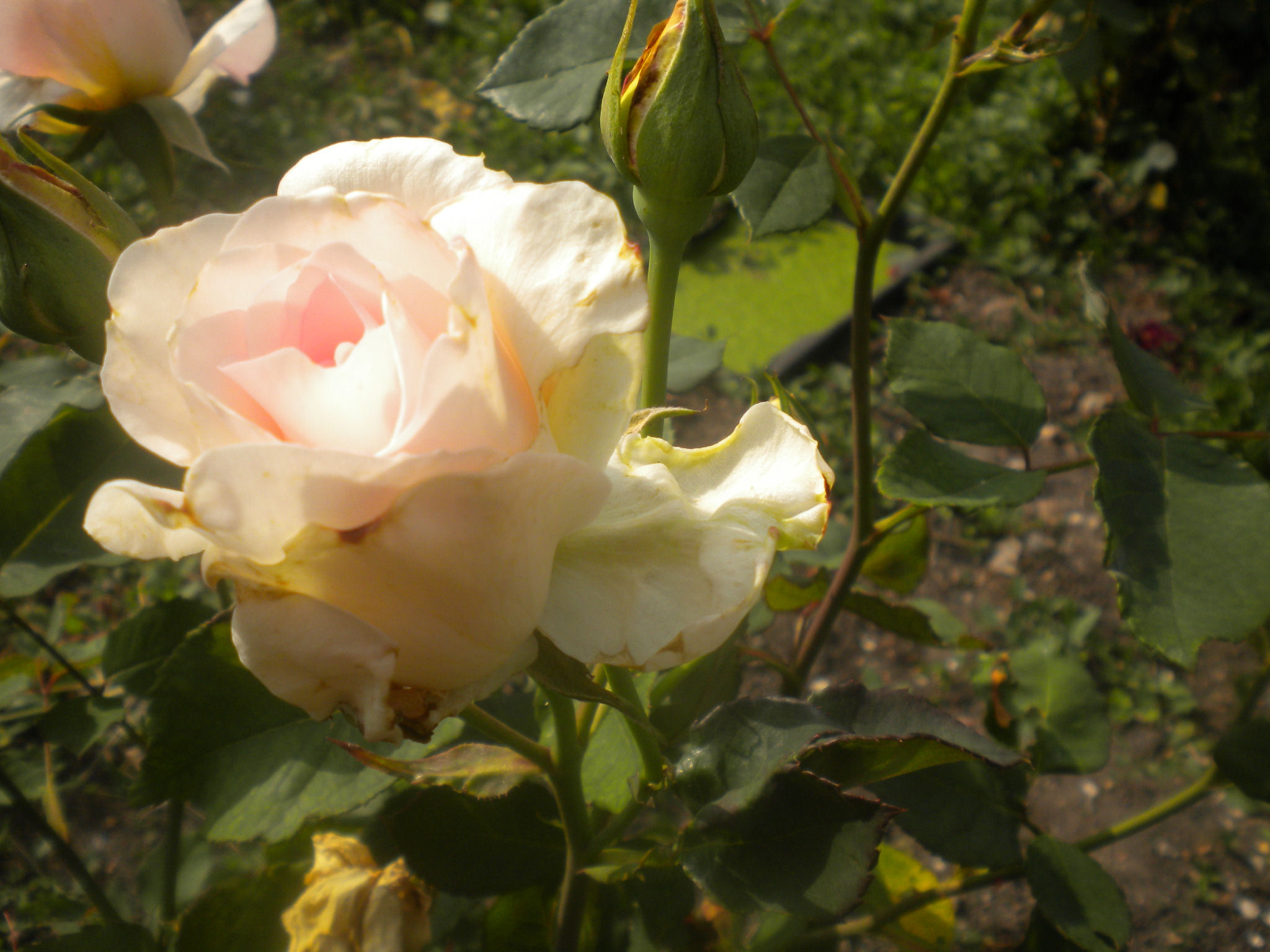 I don't know the name of this rose. It was in the garden when we arrived. This was in 1979, so it's an old plant! I think it is a floribunda rose, with several flowers on each stem,. It flowered from May almost to July and then started flowering again August into October.