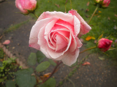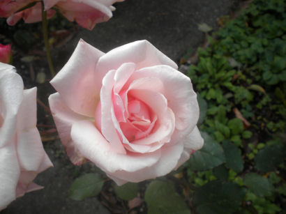 I've called this rose "pink". This is to distinguish it from the other old rose, which I've called "salmon". I've not quite sure if I've got the photographs for the two roses 100% right! With different stages of flowering, and different light coditions, the two roses overlap colours.