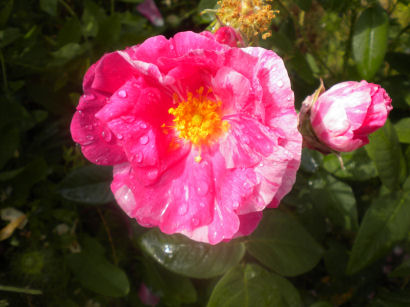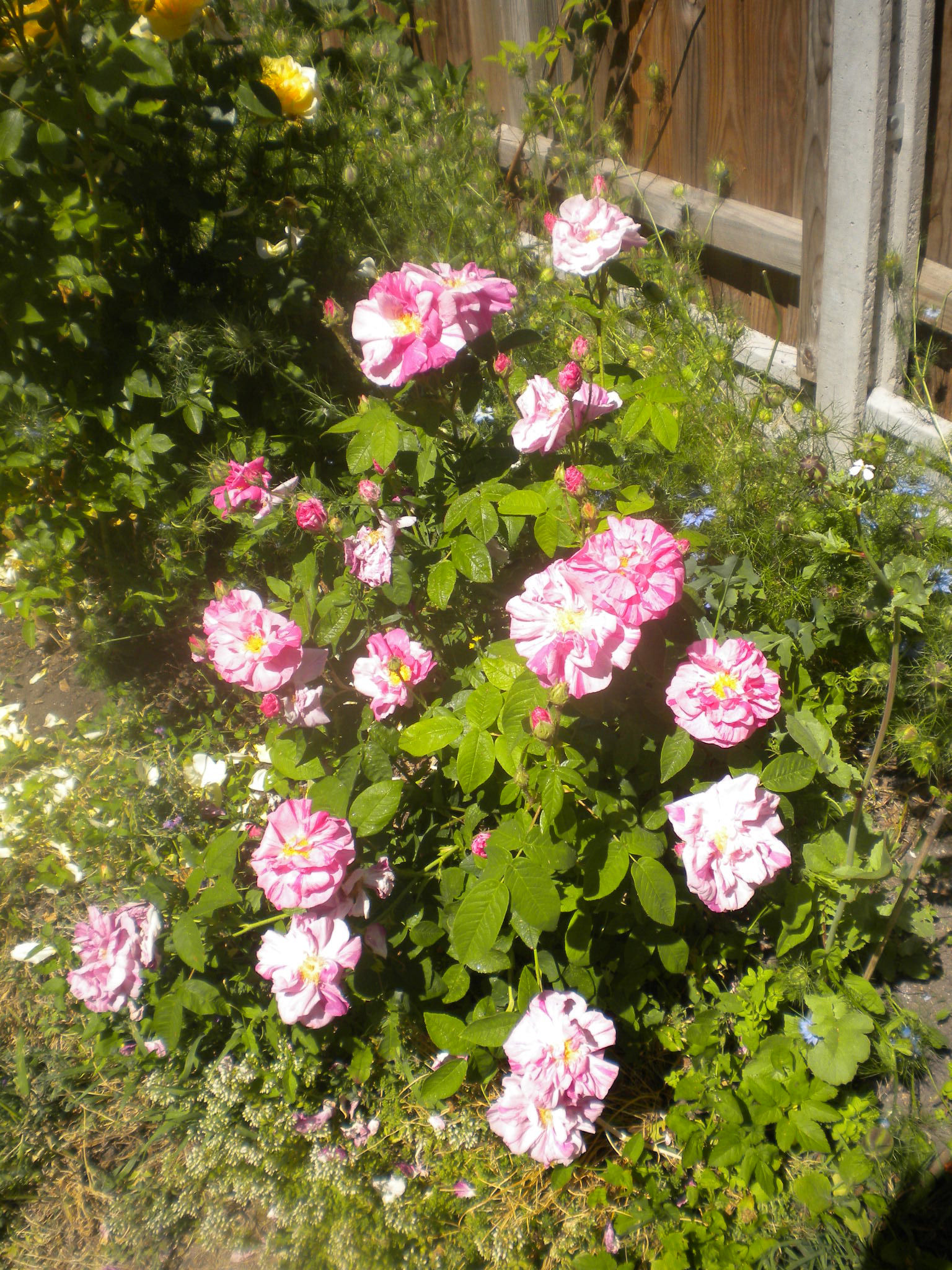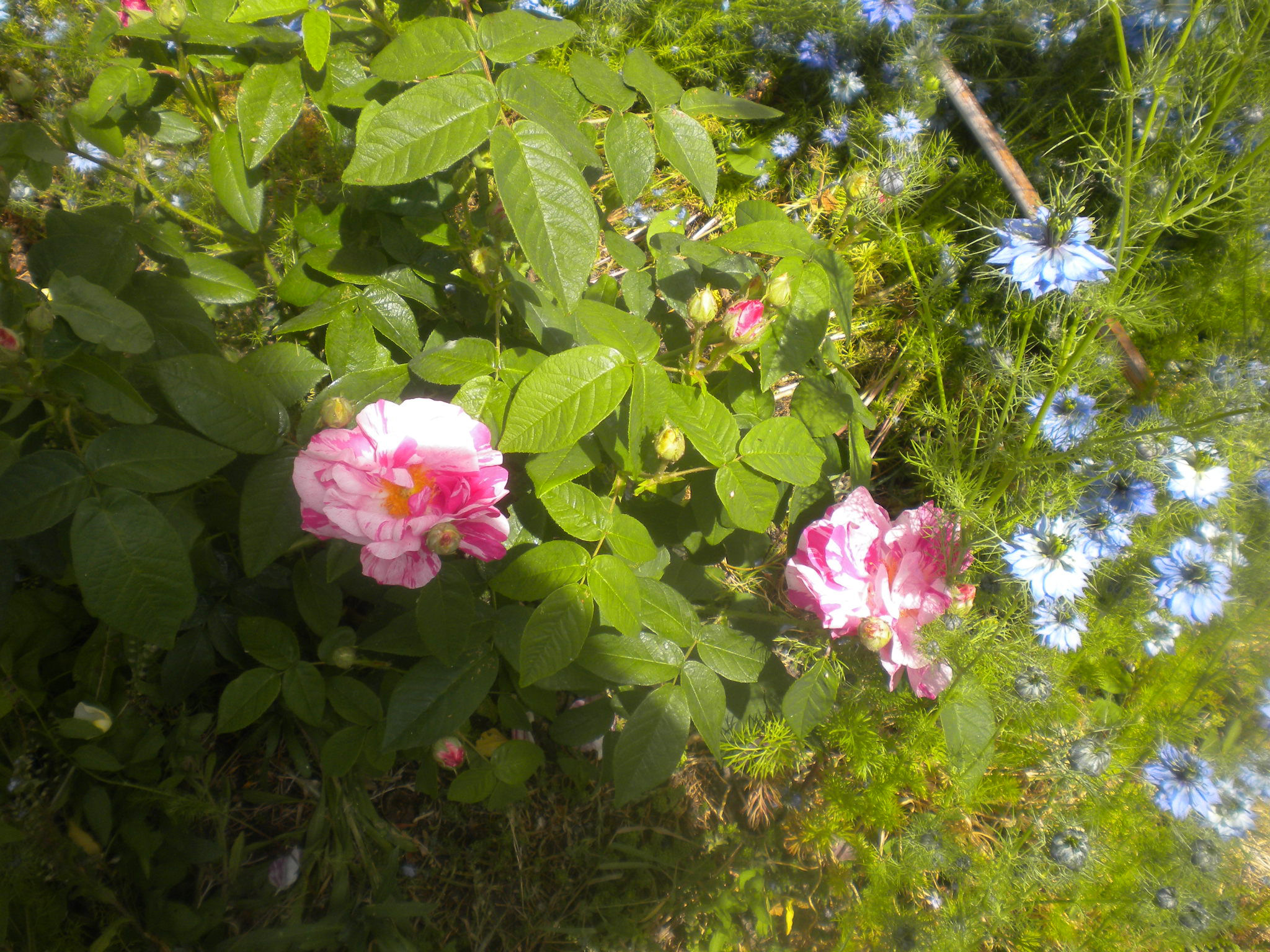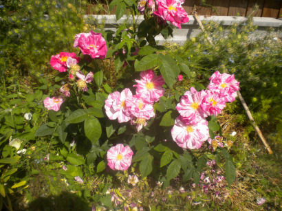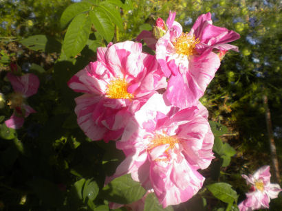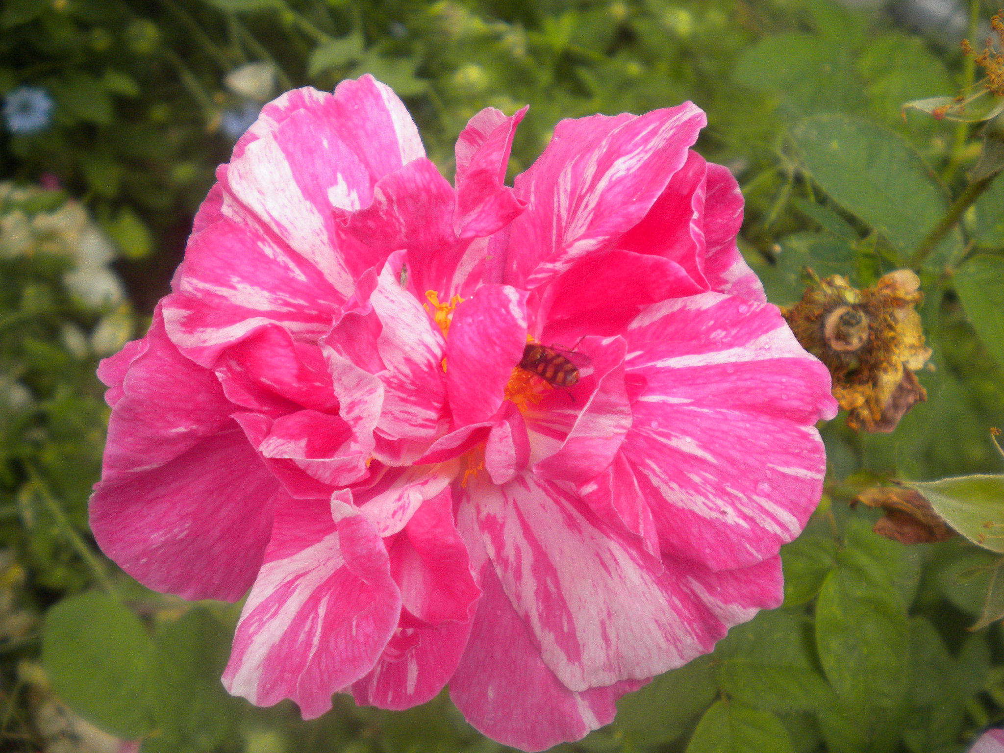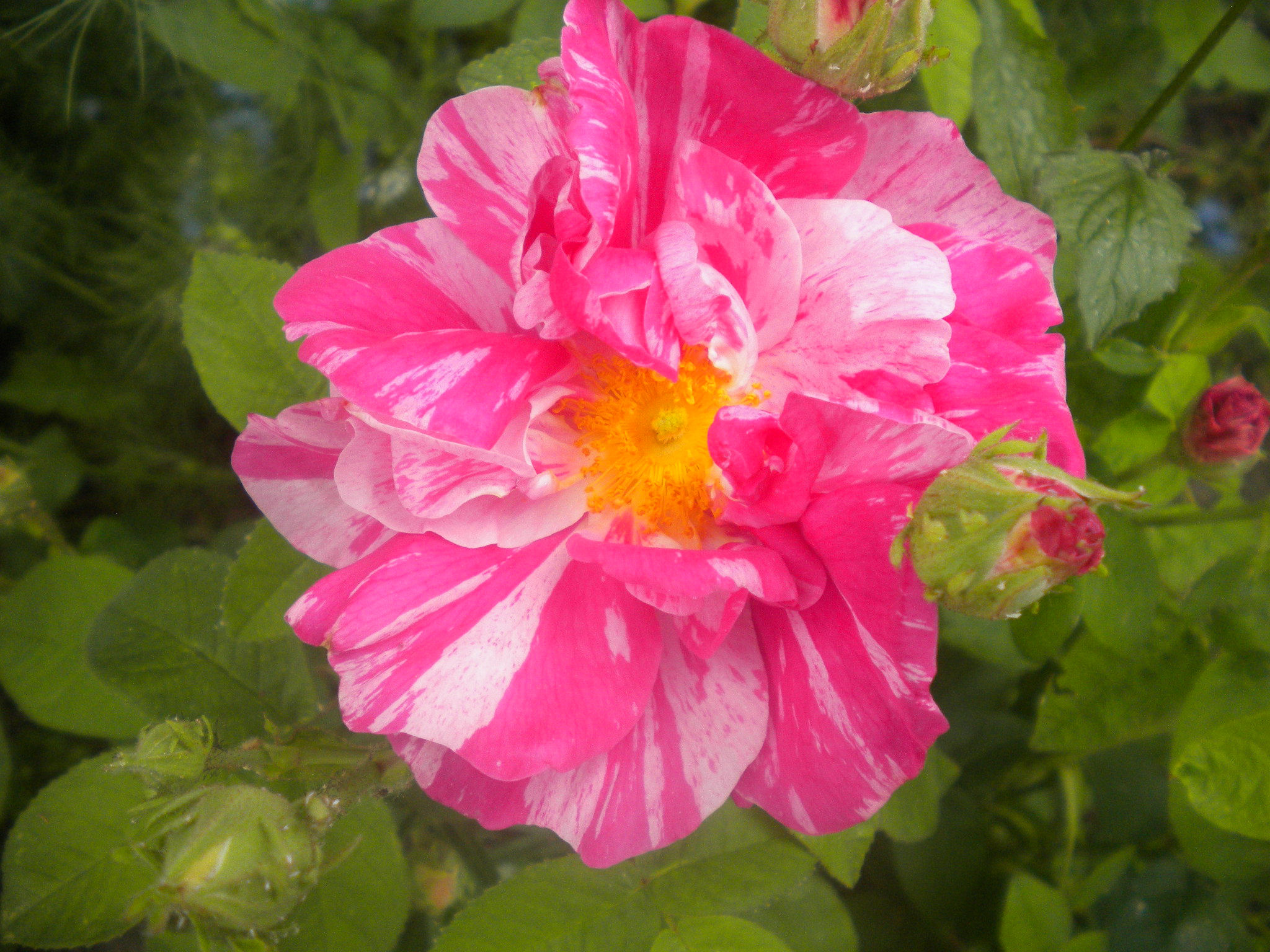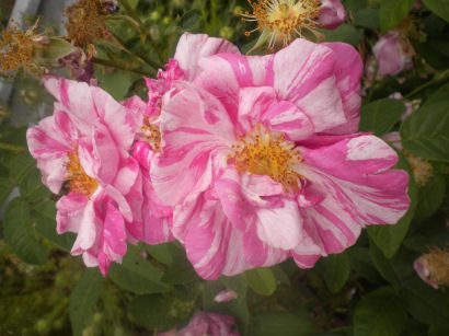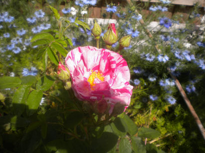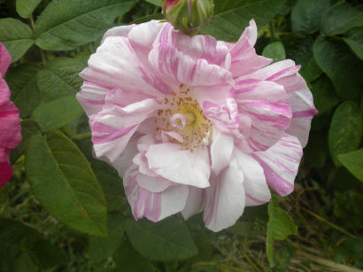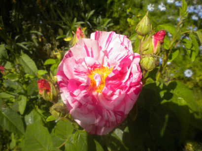 Despite its rather startling stripey appearance, this is an ancient rose, which is why I got it. The name means "Rose of the World" and refers to Mary, mother of Jesus.