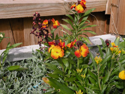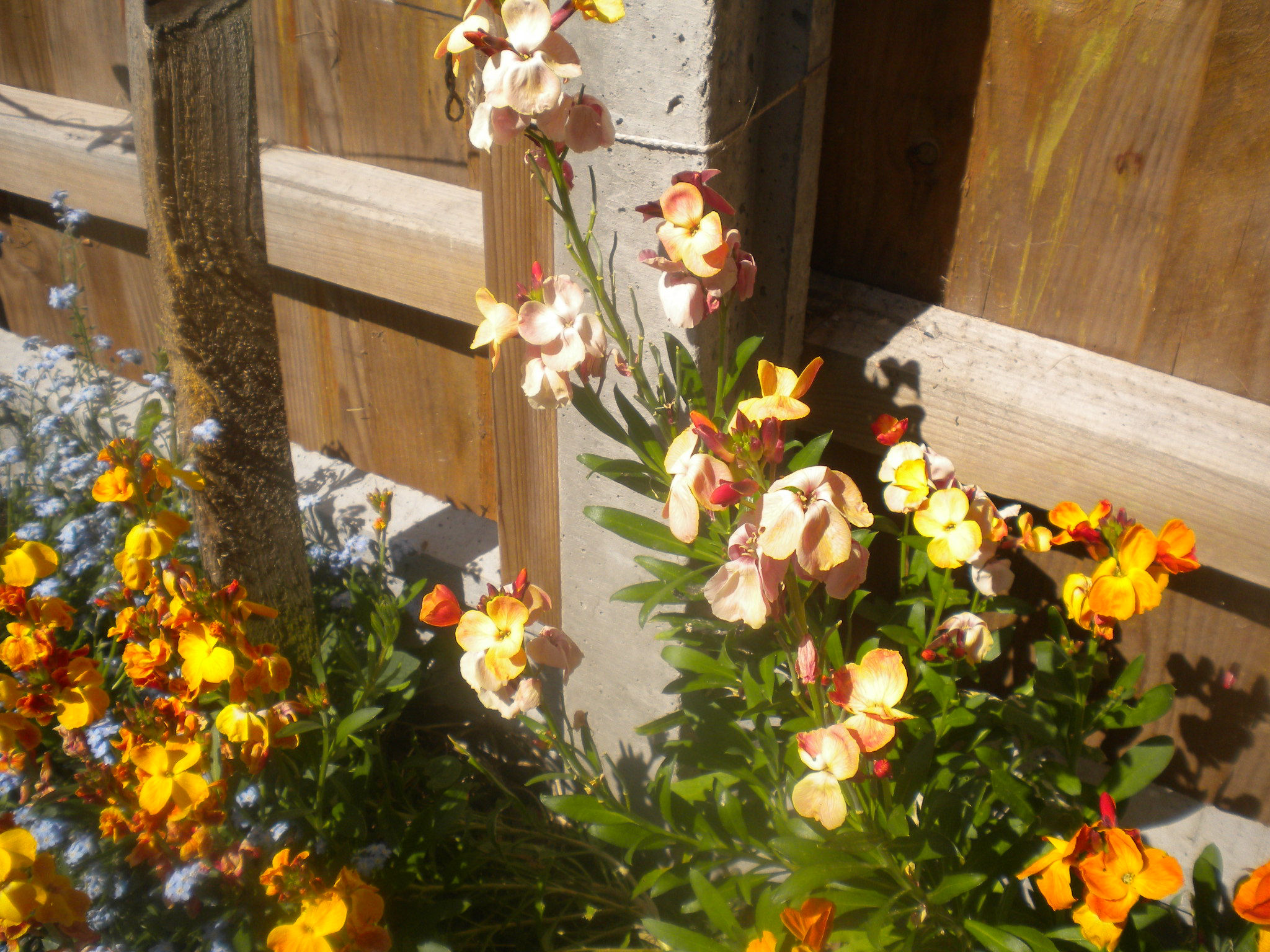 Wallflower are perennials, but are usually grown as biennials. These flowered in April, although buds started to show in late February. There is a good range of colour.