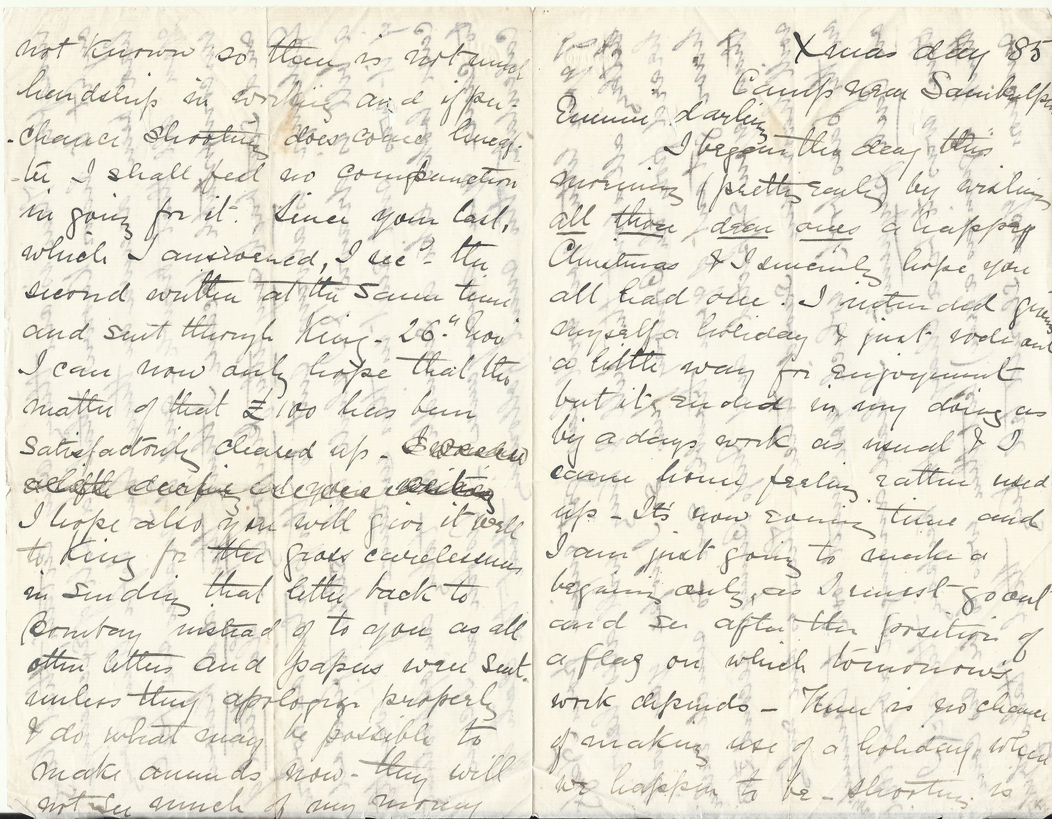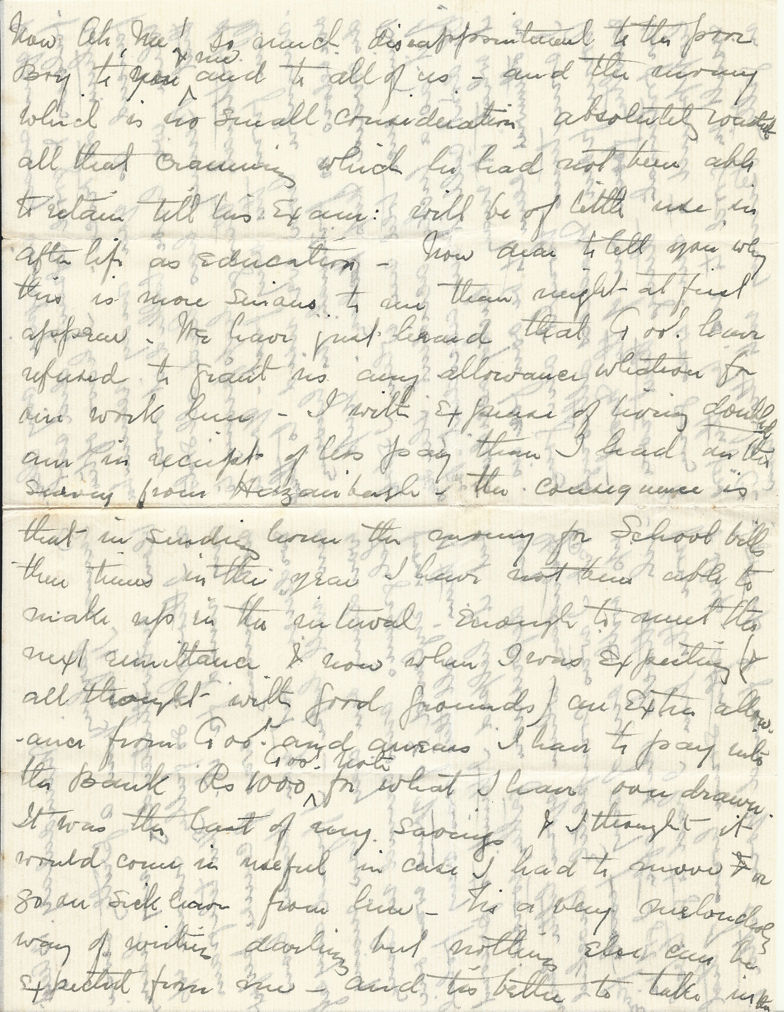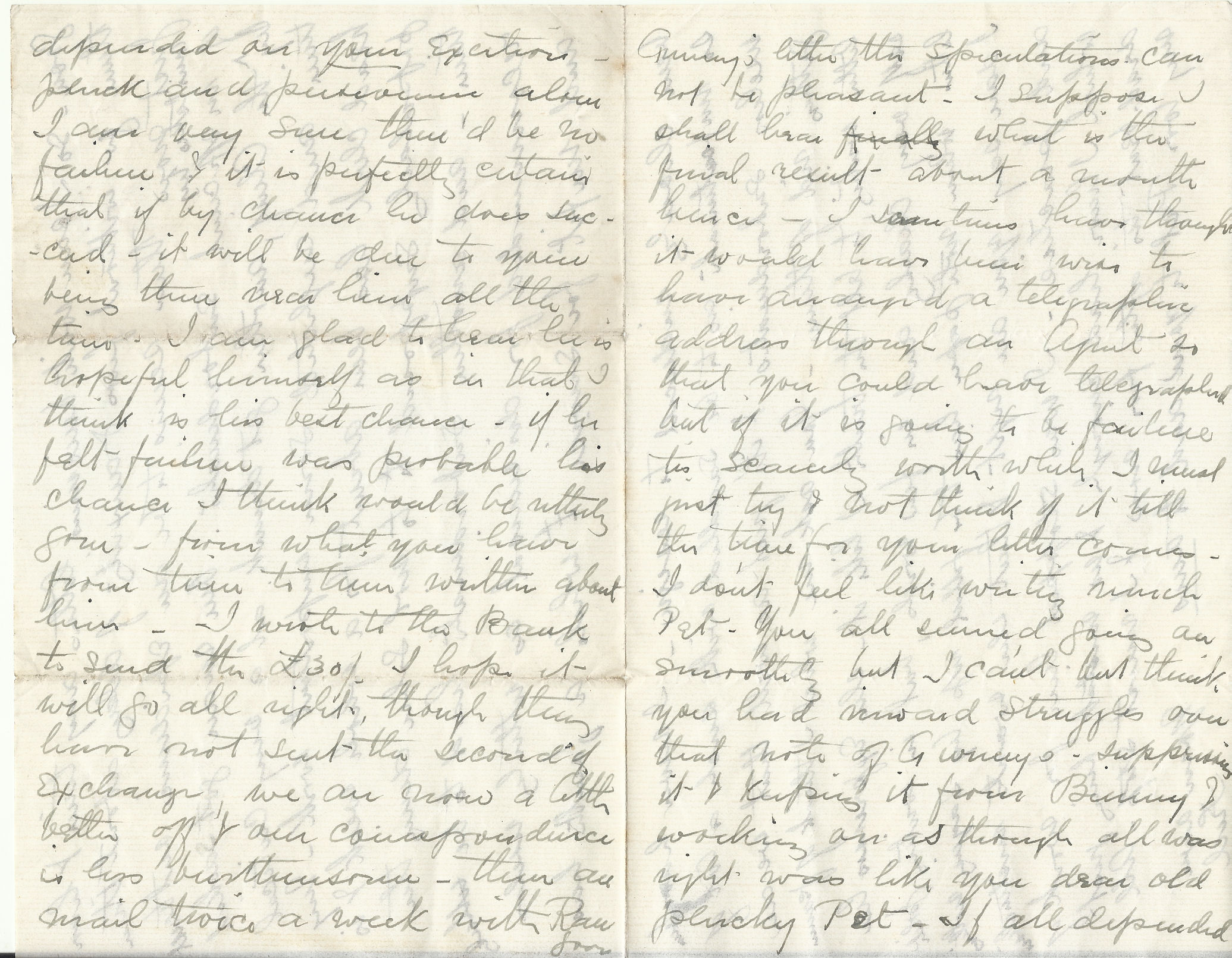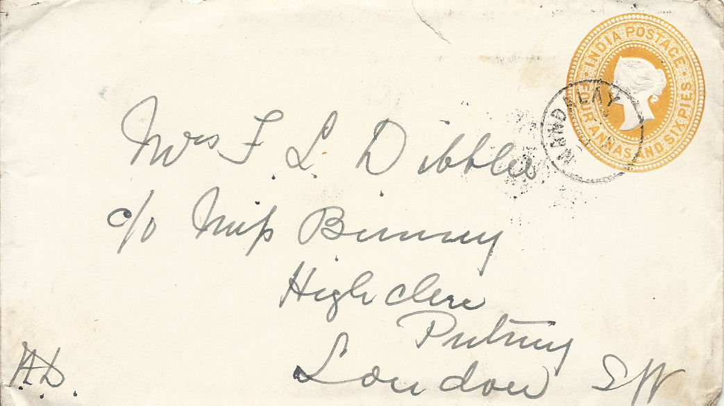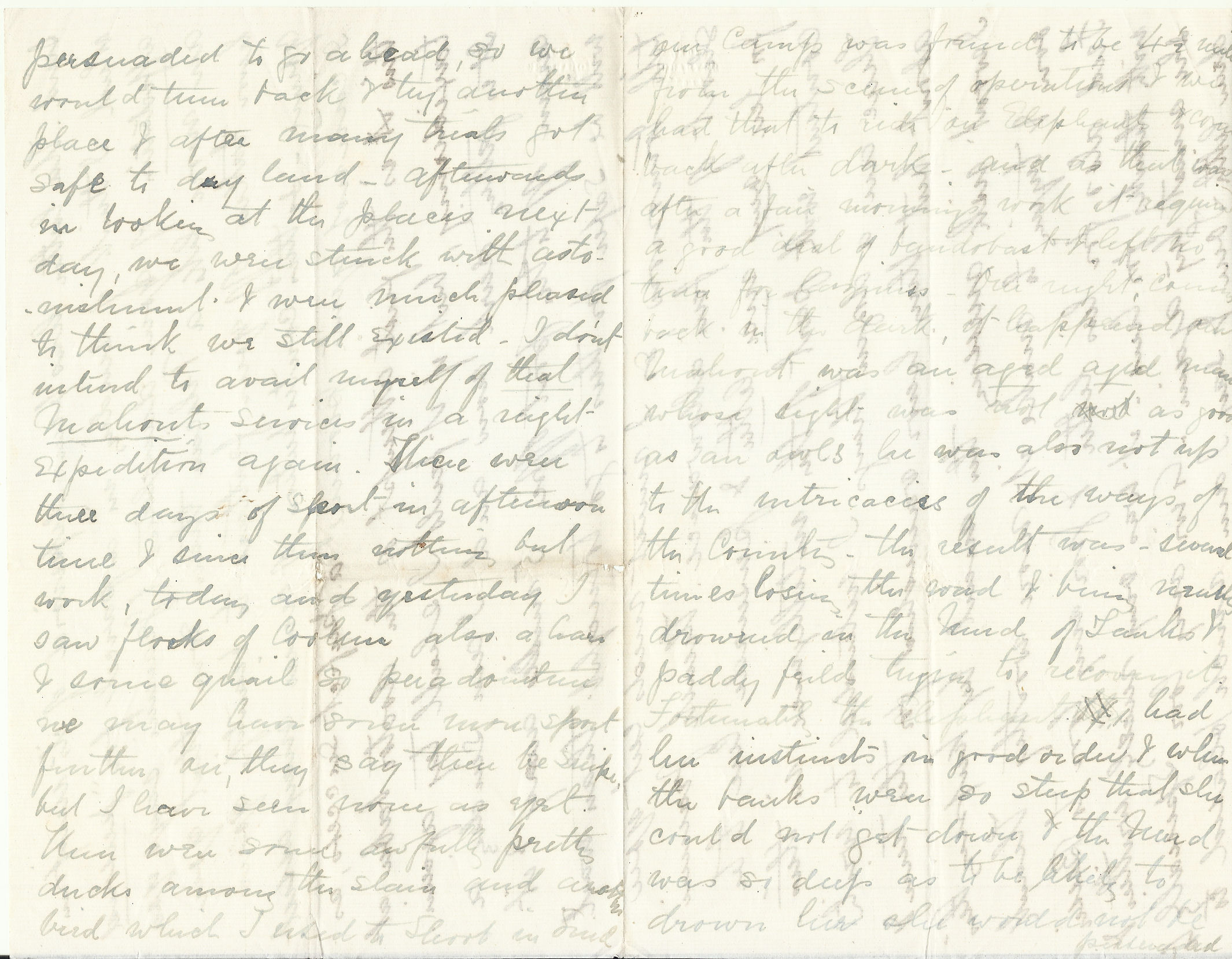 There is a lot in your letter, darling, I want to answer and write about, but it must be put off next mail. I shall have no letter from you, and probably not for three weeks. Next time, write c/o Post Master, Calcutta, and I will leave direction about my new address. I shall send home £30 this mail, as I could not feel sure, how much you had left, and did not like to risk leaving you short, when so many payts would be coming due.