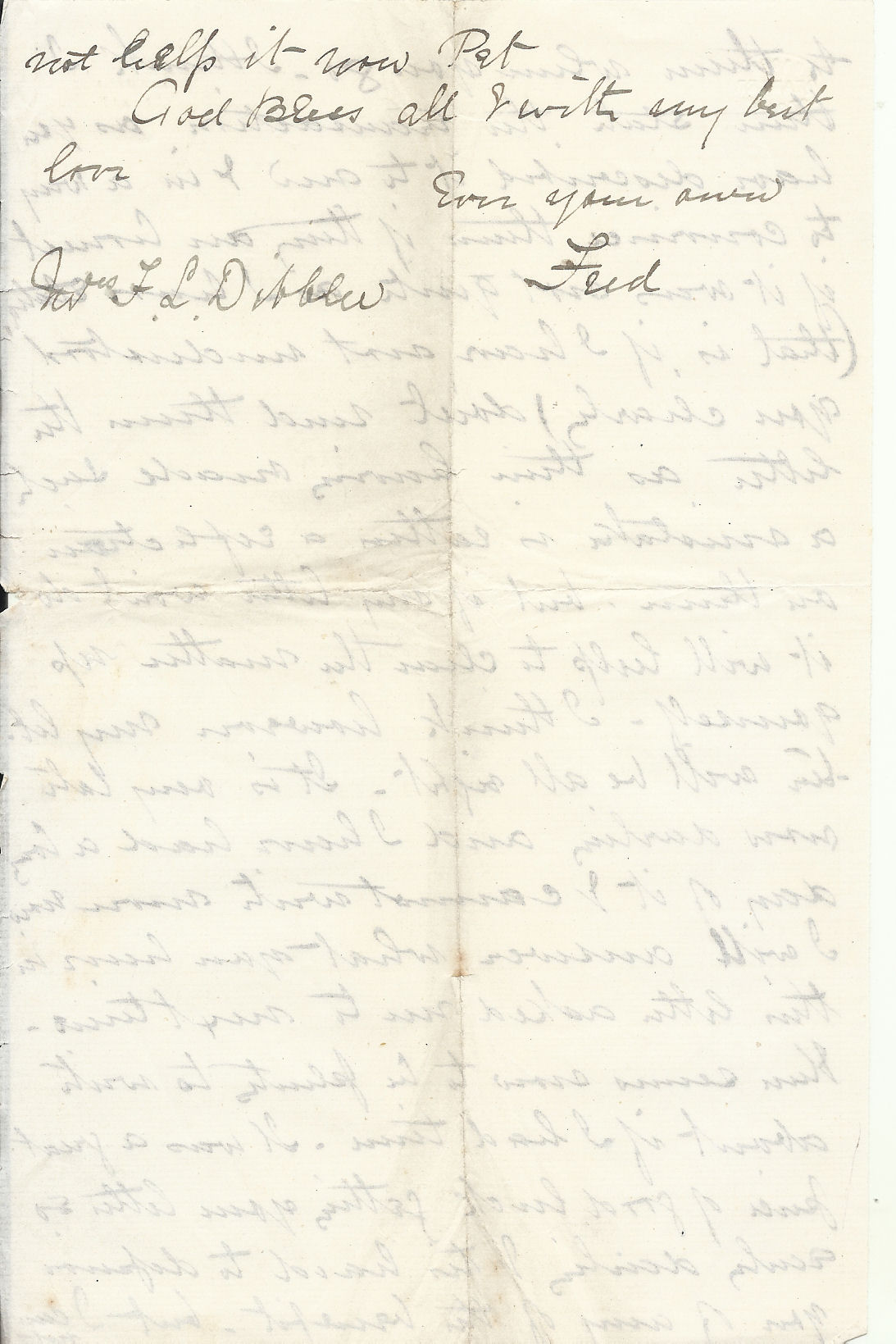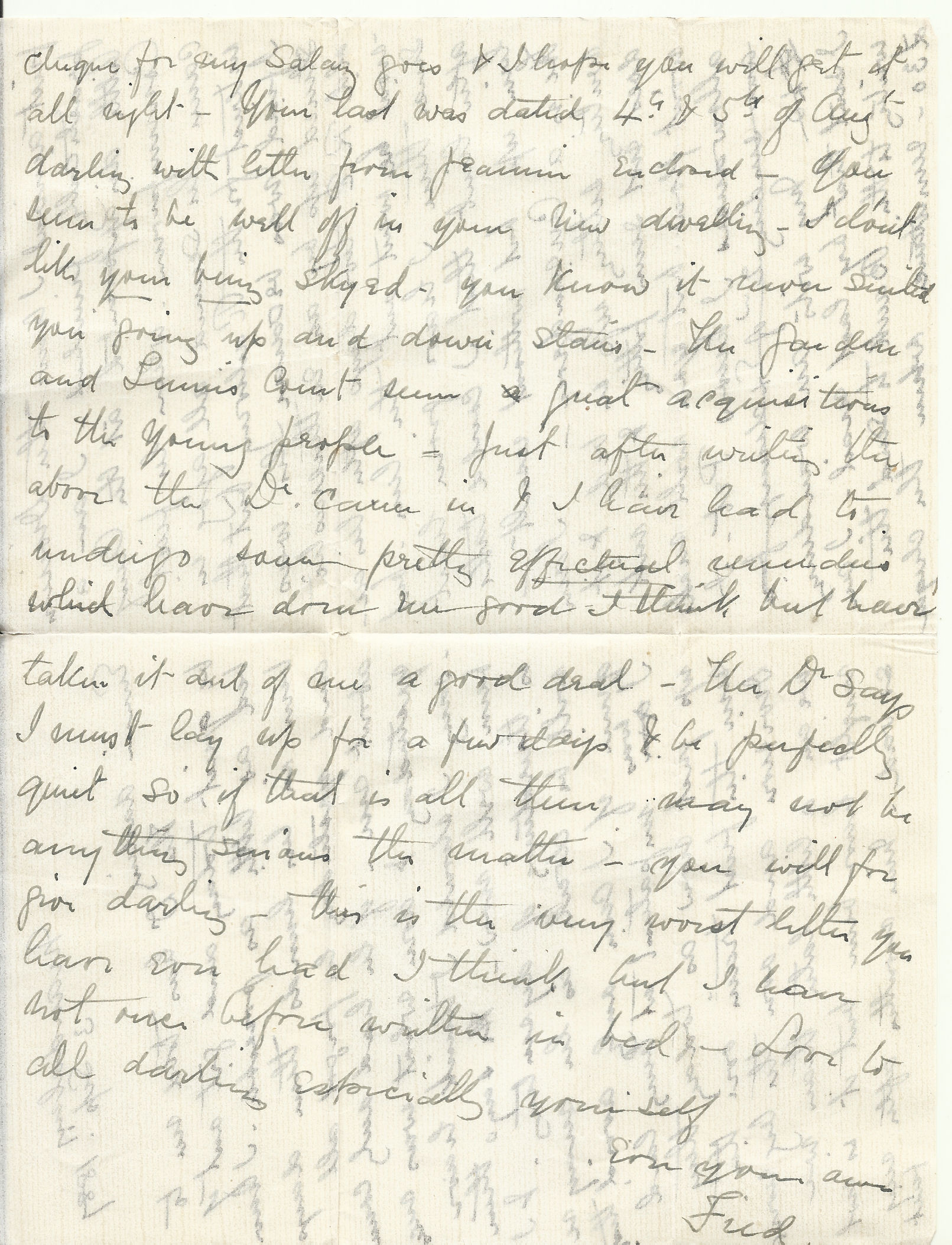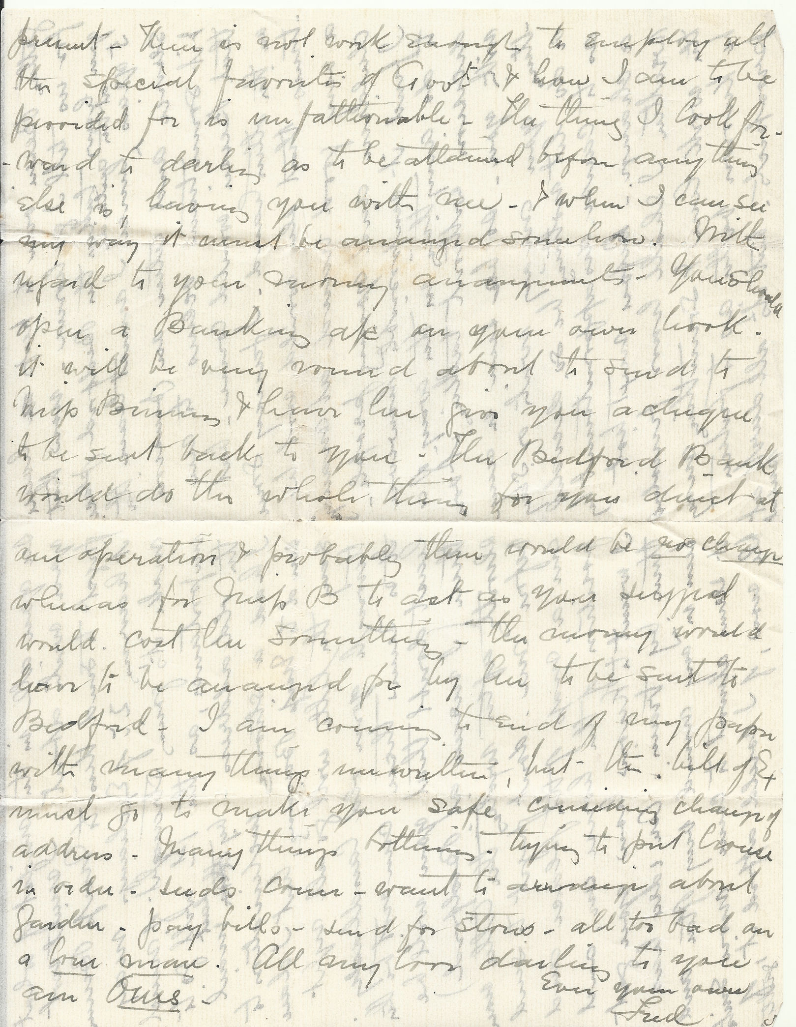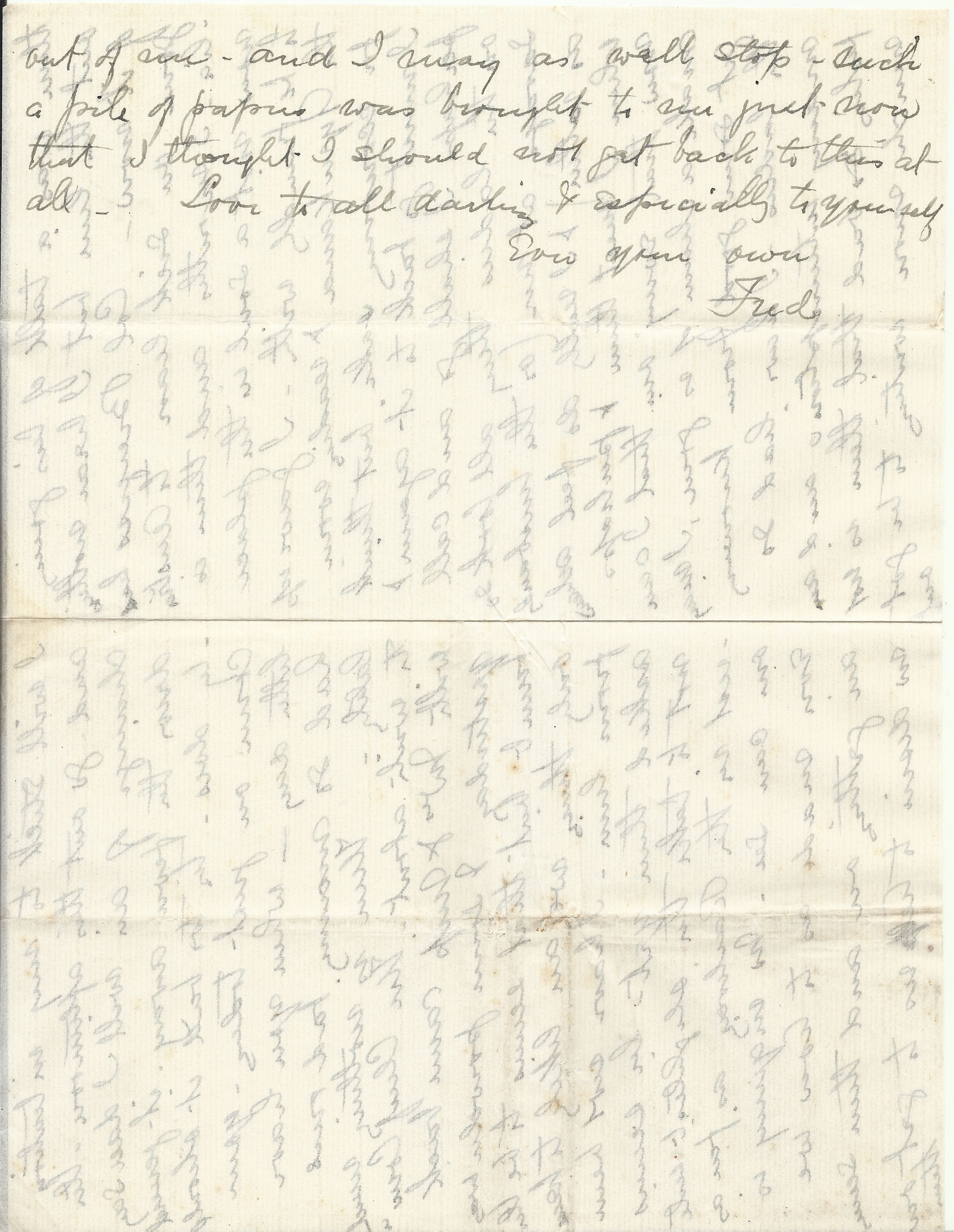 Now, darling, with all my love to you and all the flock, Ever your own, Fred.