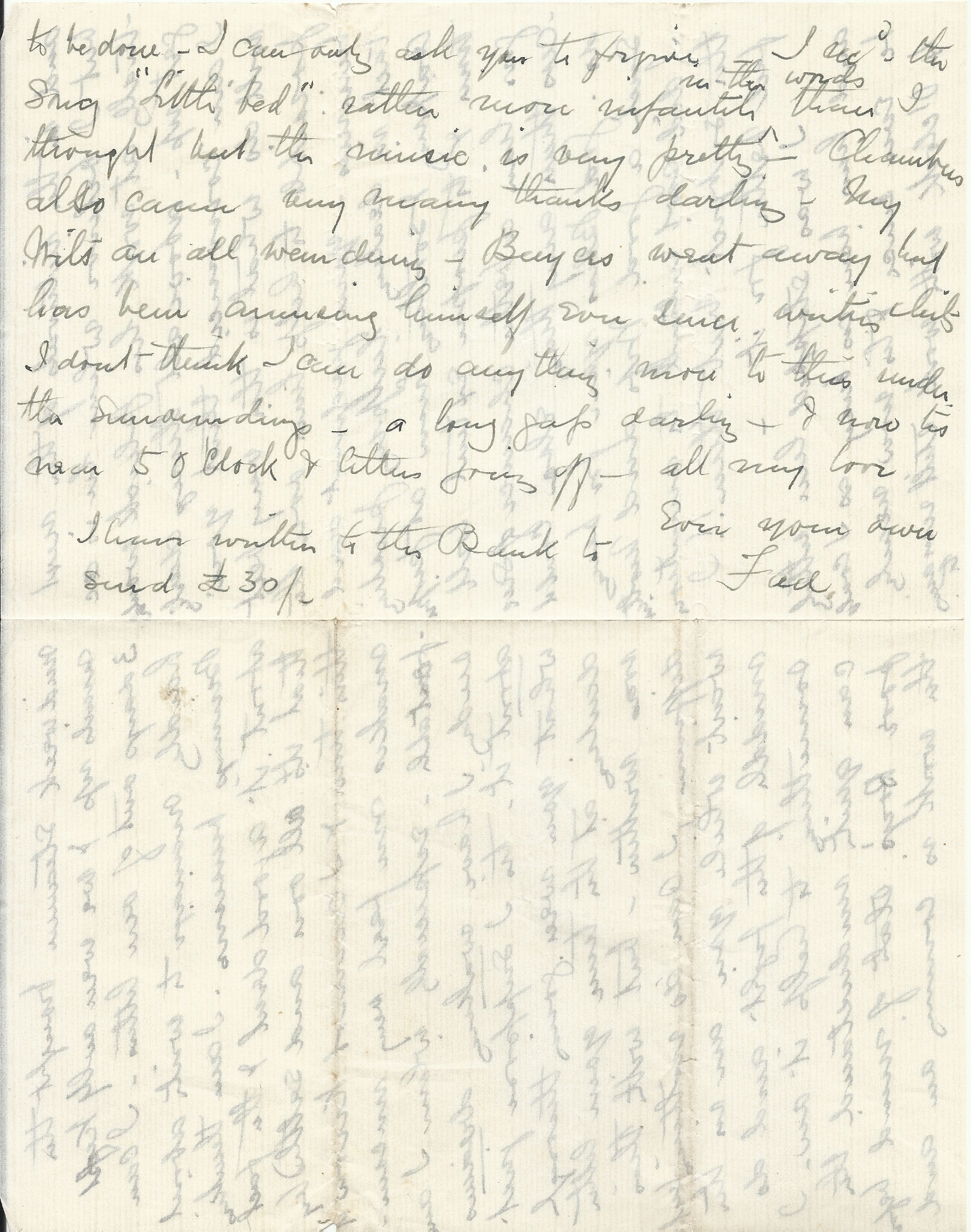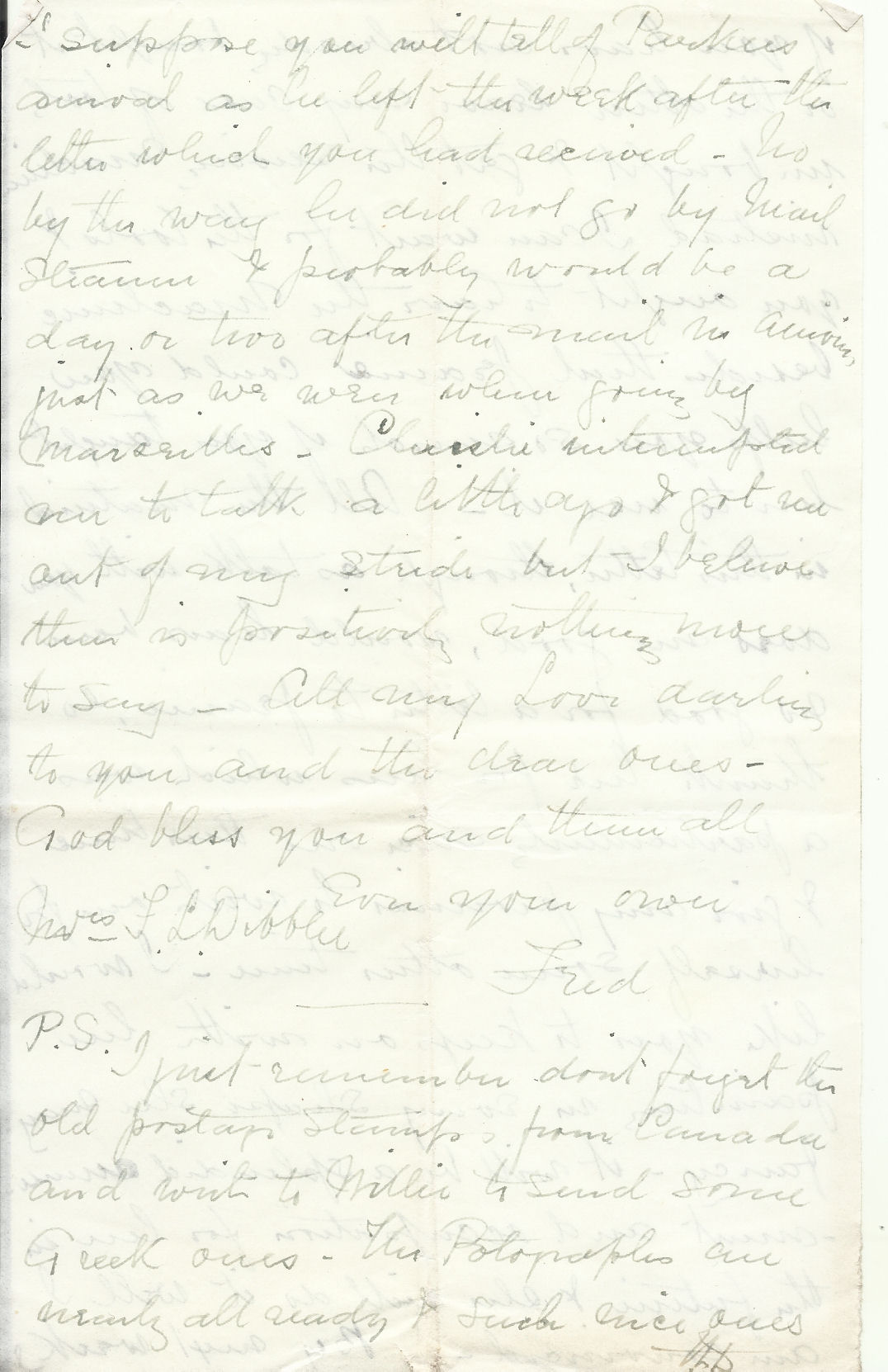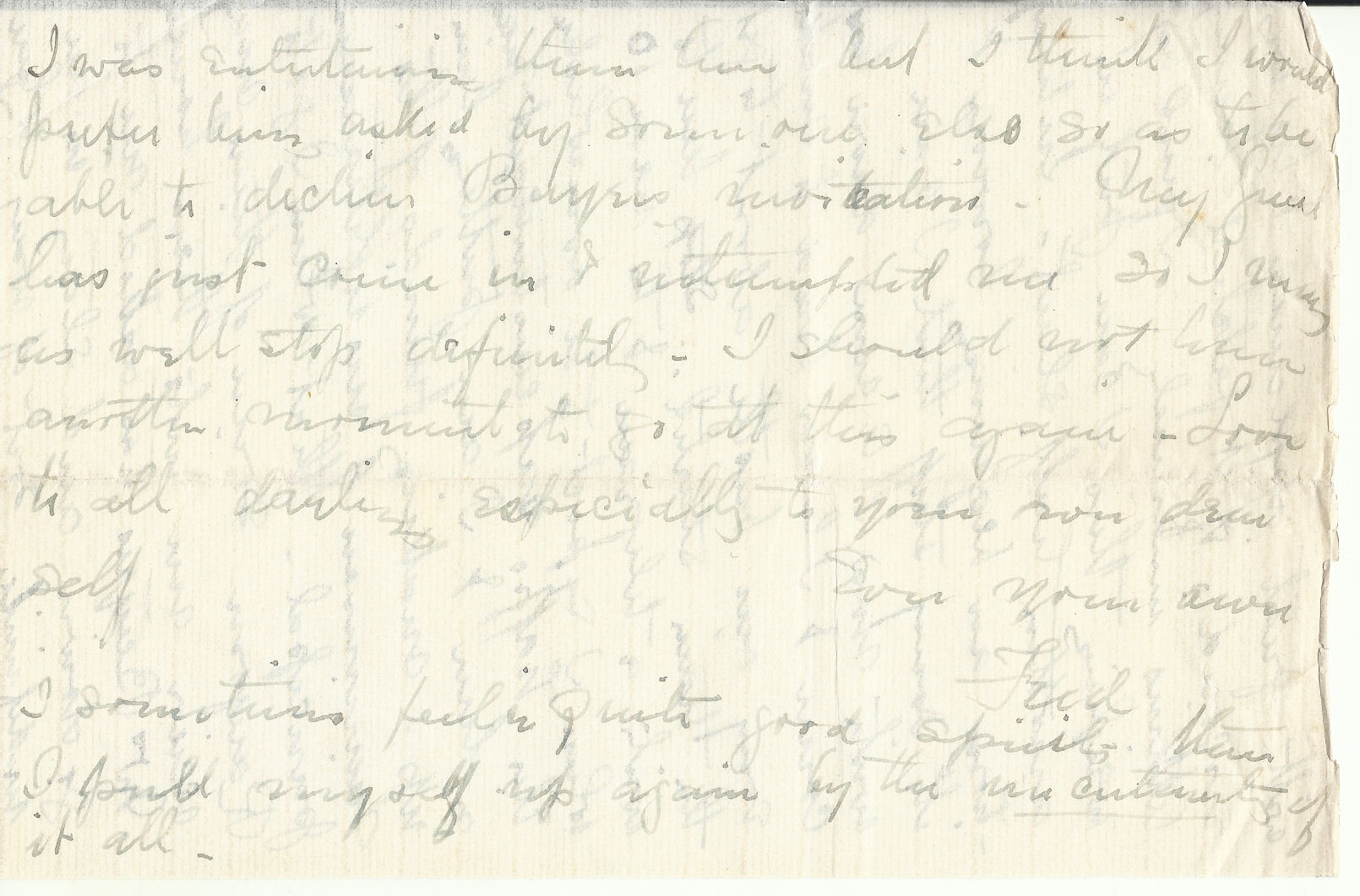 Now, darling, with all my love to you and all the flock, Ever your own, Fred.