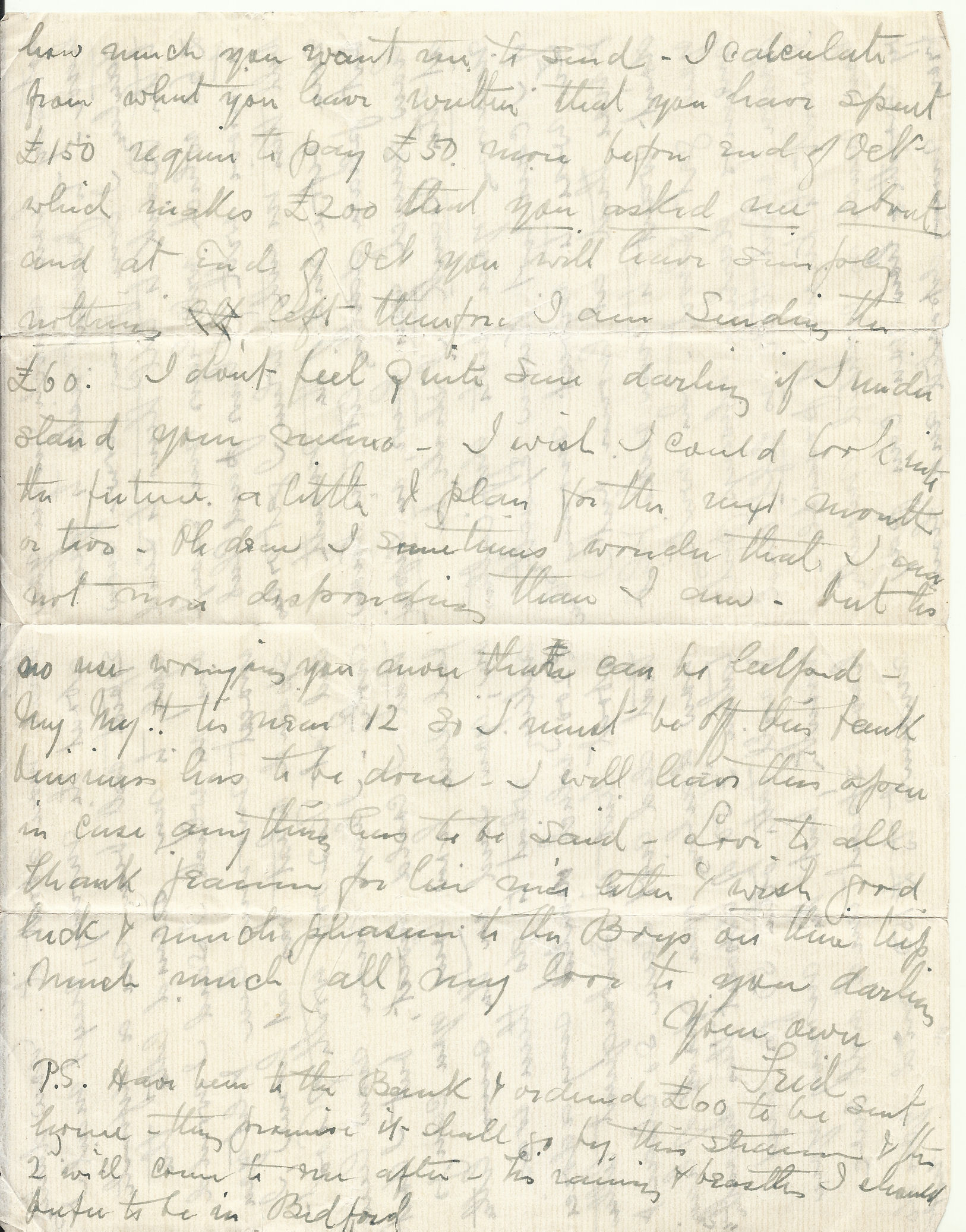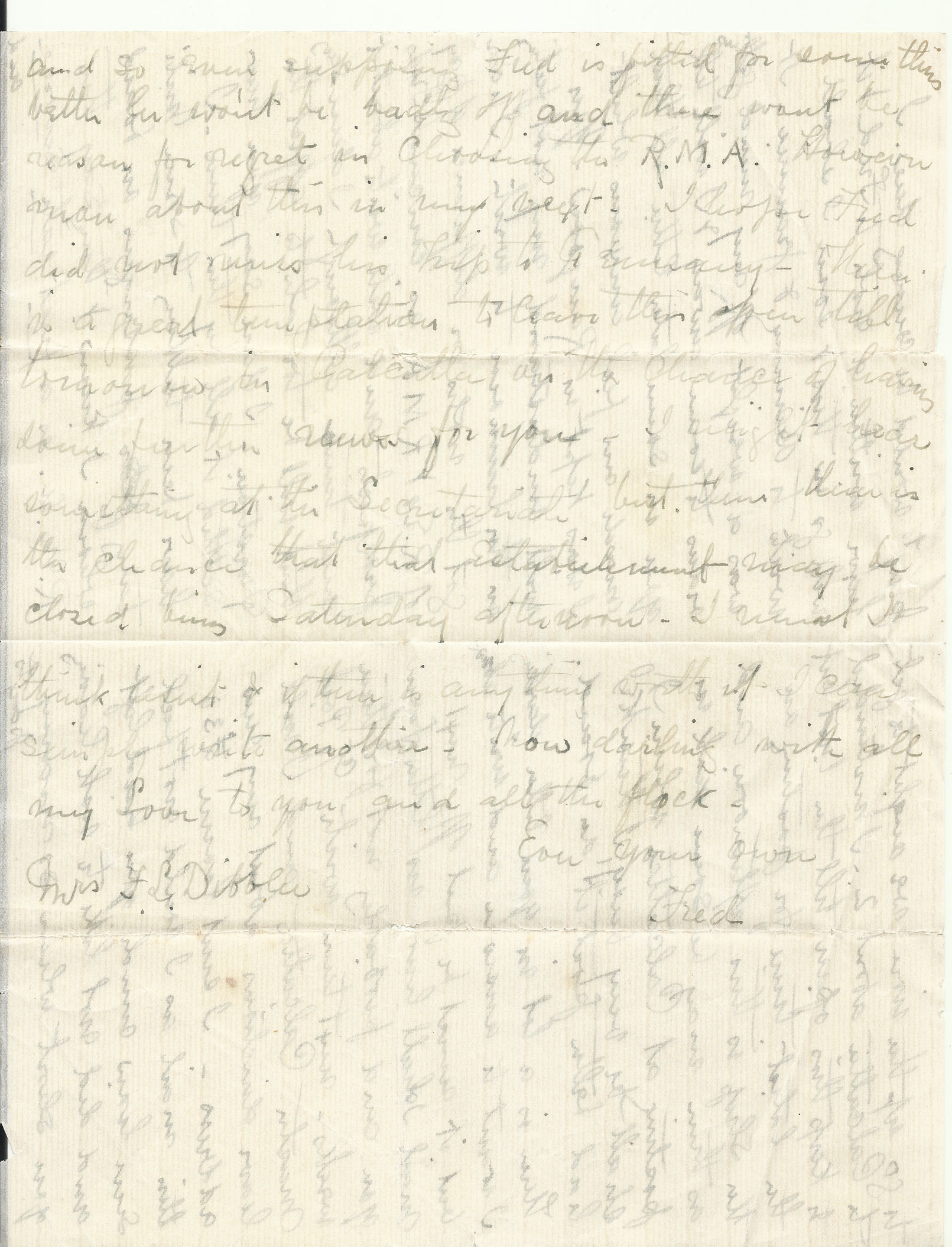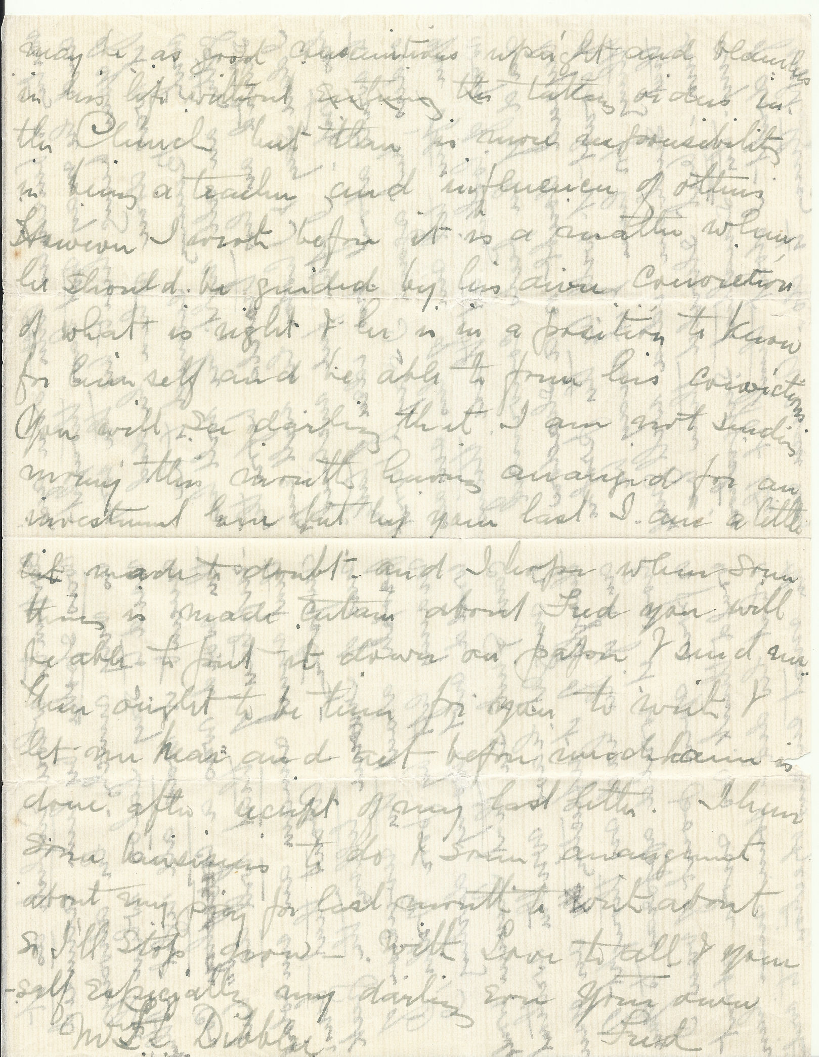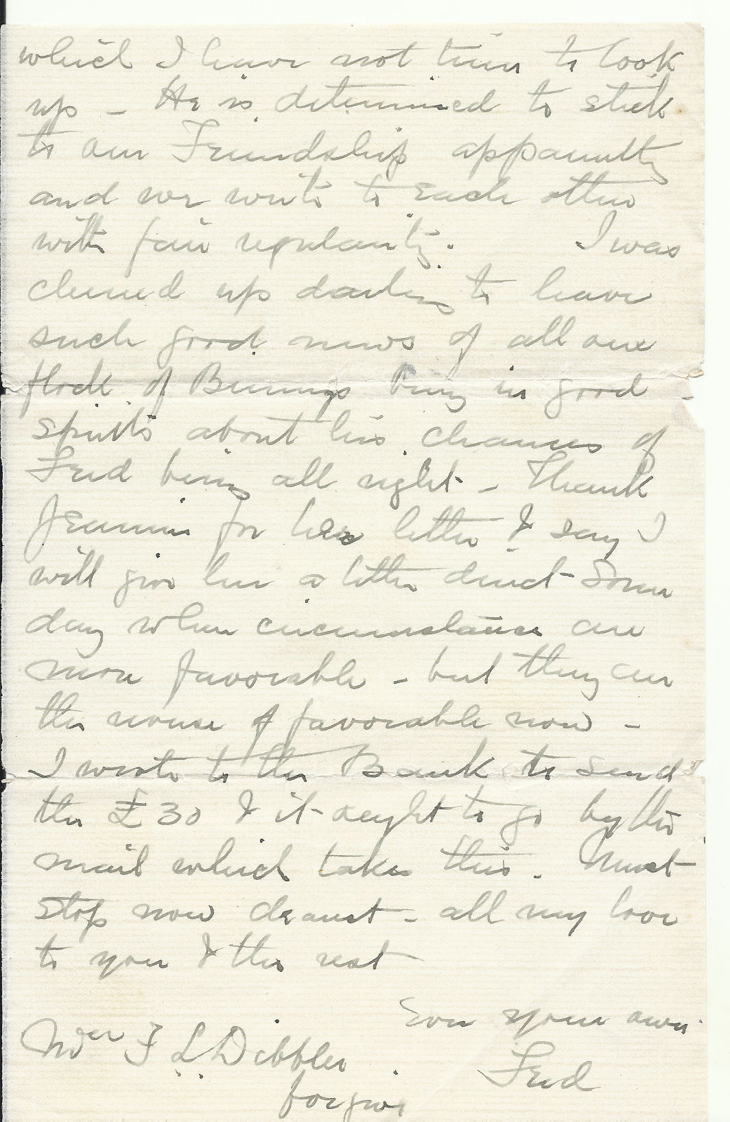 Now, darling, with all my love to you and all the flock, Ever your own, Fred.