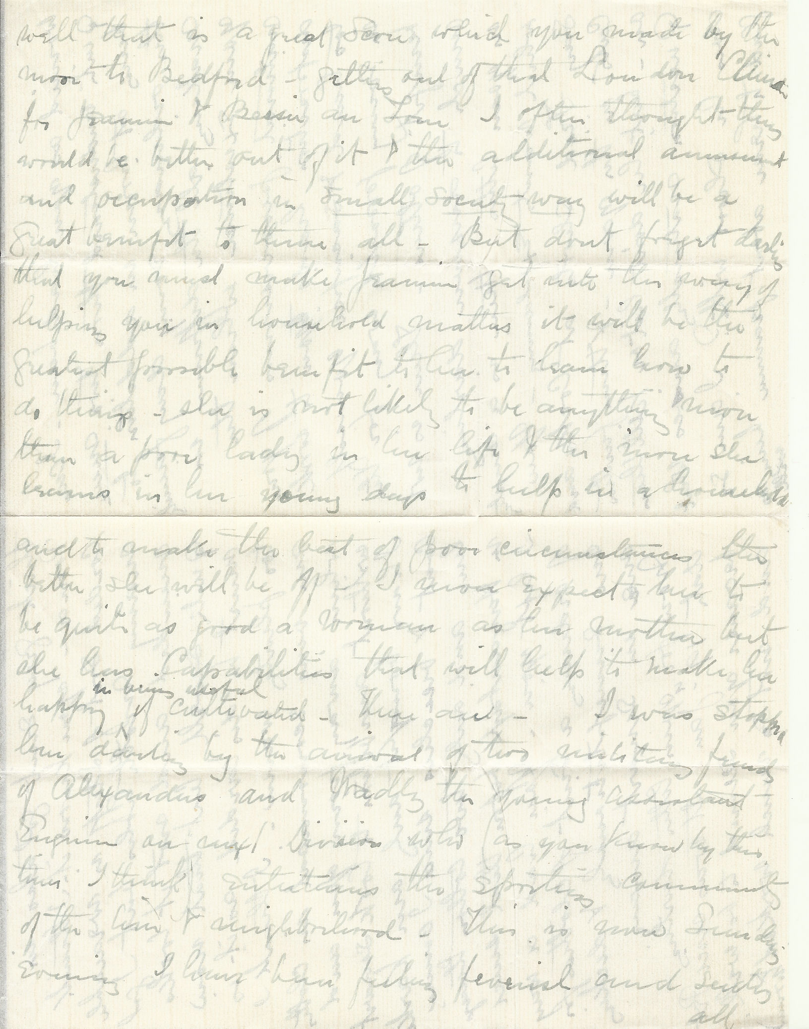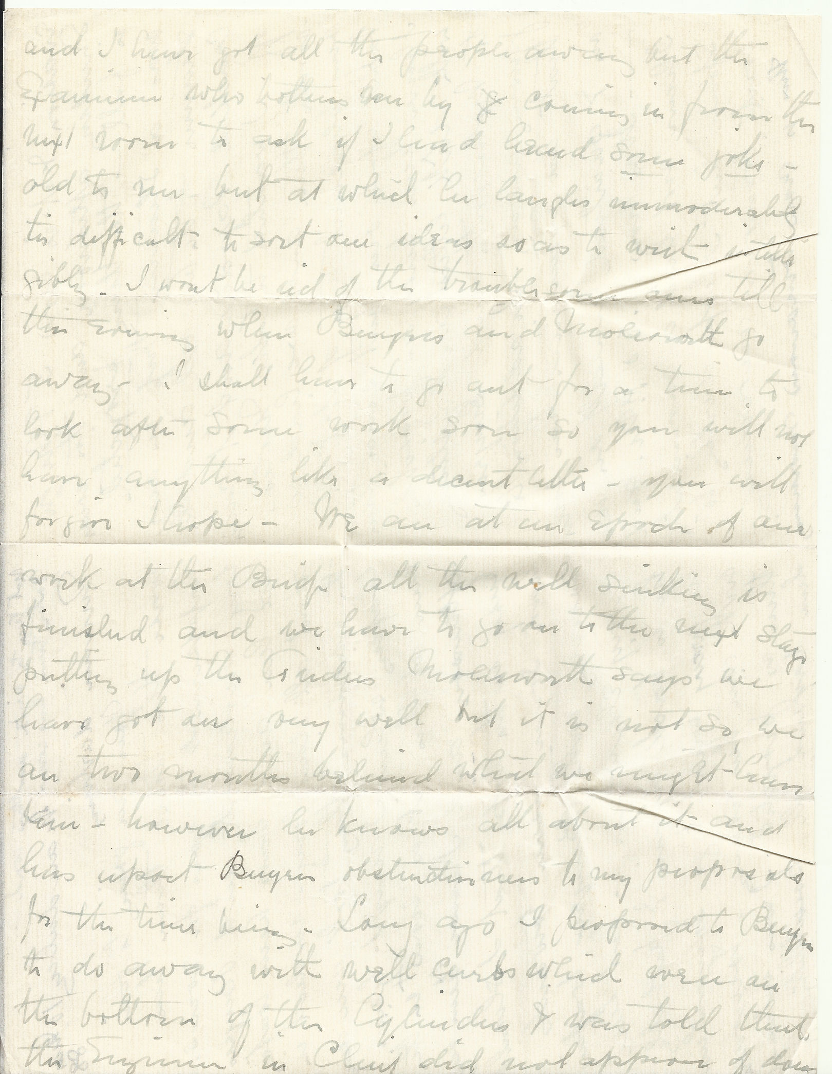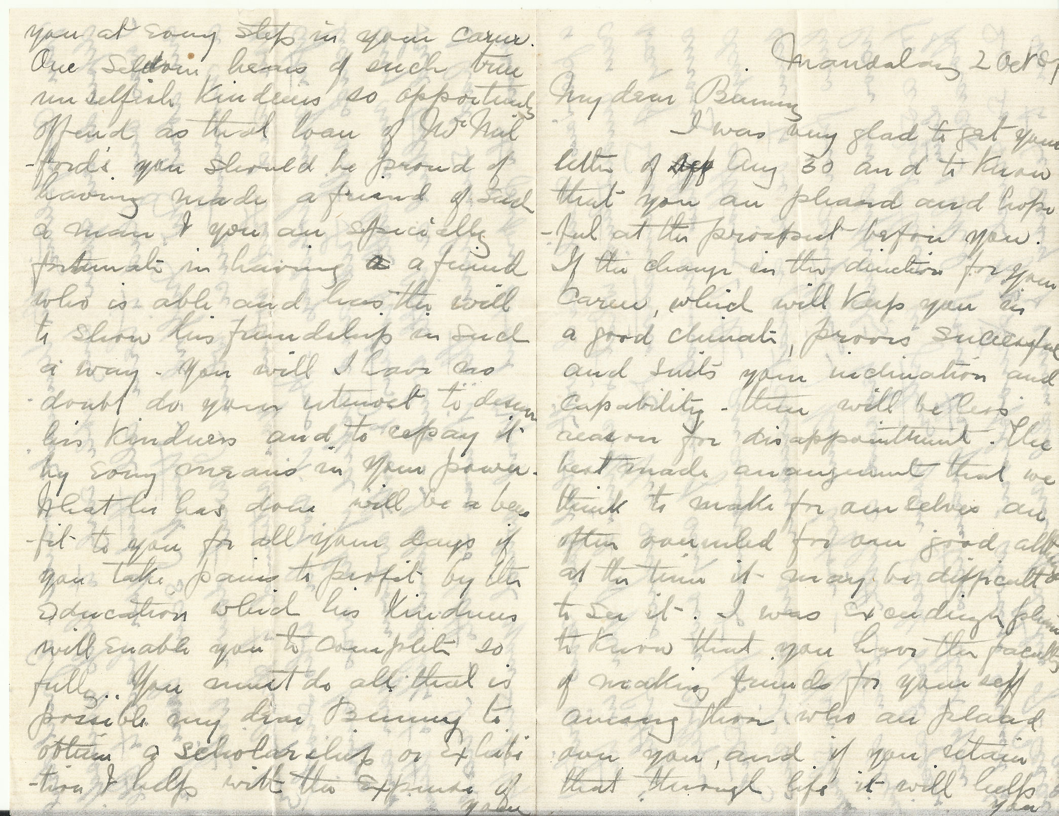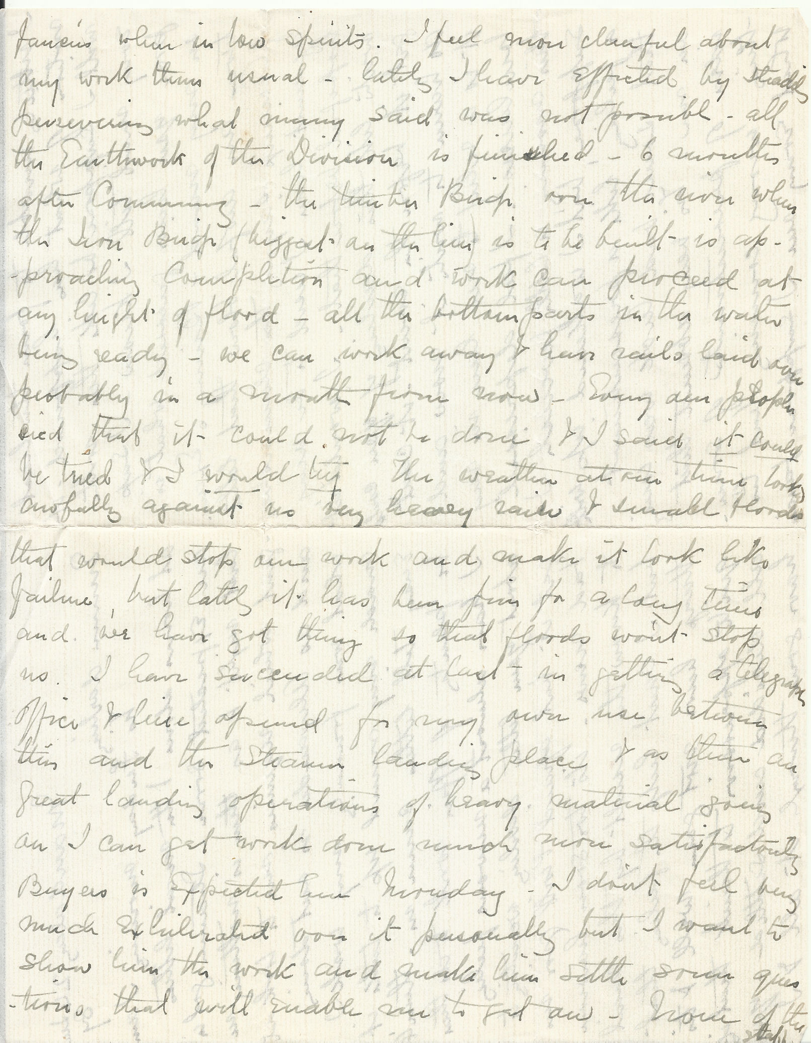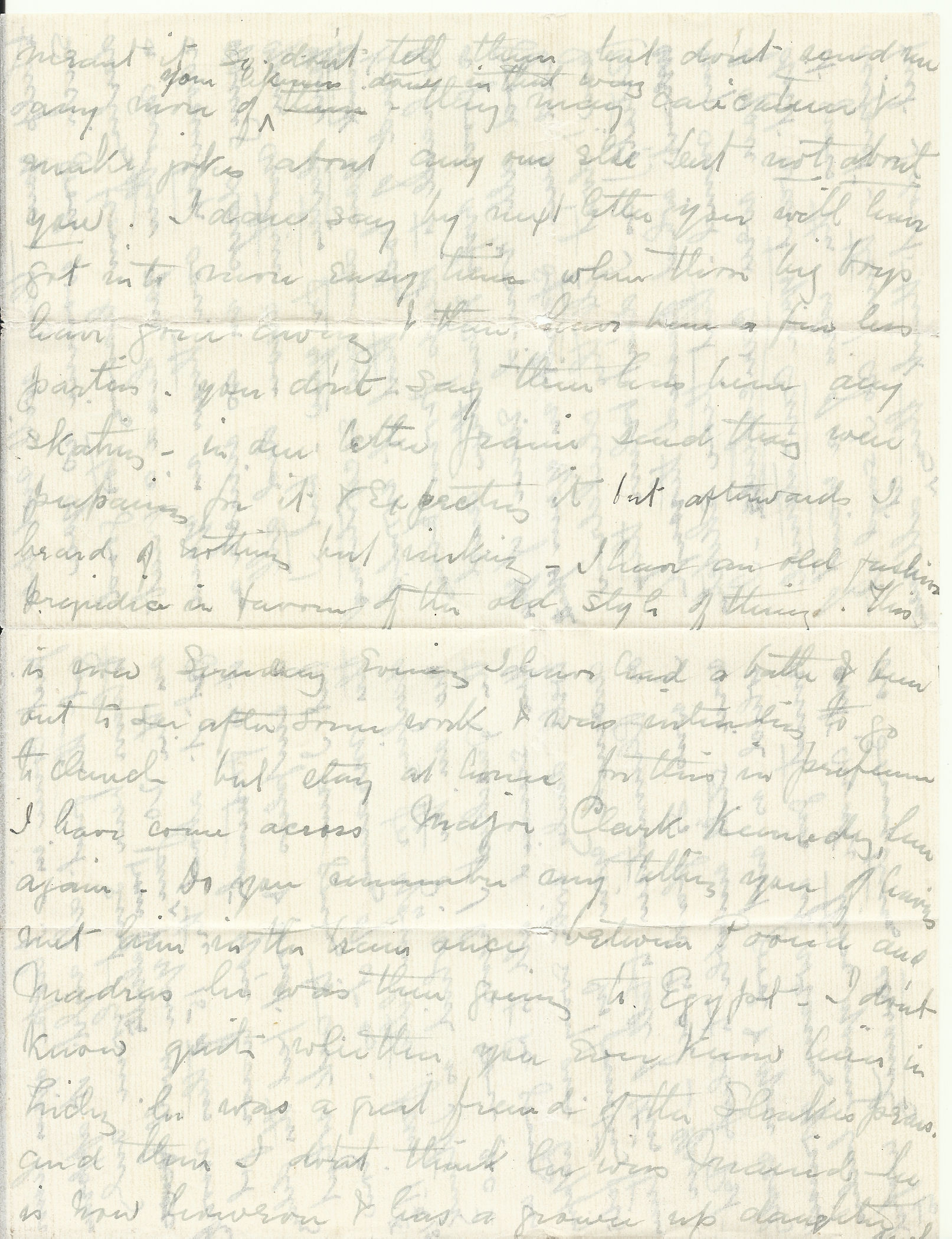 Now, darling, I must tell you, now it having passed, all that was in my mind, when I was staying in Rangoon, that kept my spirits down, & prevented cheerful letters, & writing separate letters to the young people. I was seedy, my digestion apparatus got all wrong, and I could neither eat or digest enough to keep me going. I did not eat a mouthful of meat for three months. I got rest from work, got away from Mandalay, & proper treatment, and so gradually got right again. So I am just as glad, nothing was said about it, but you can understand my being pretty low spirited.