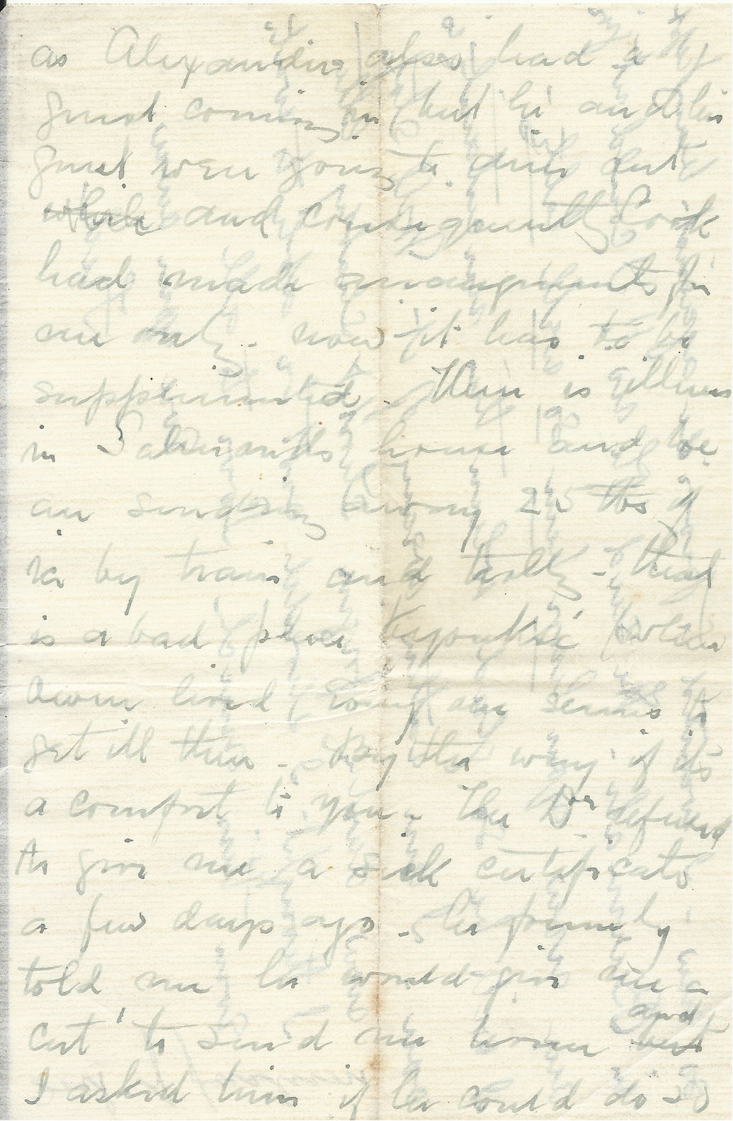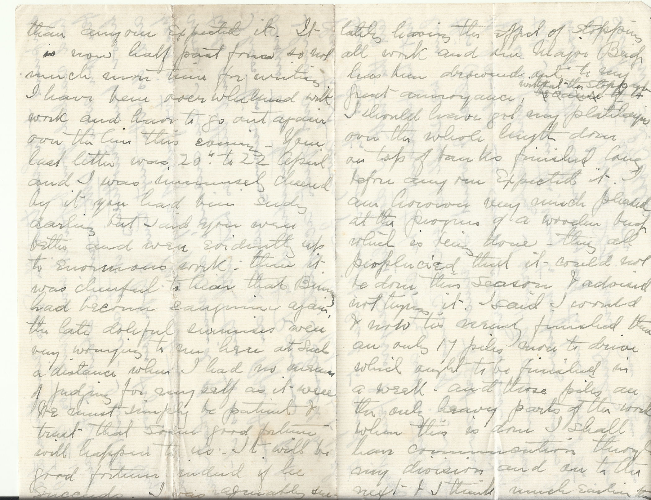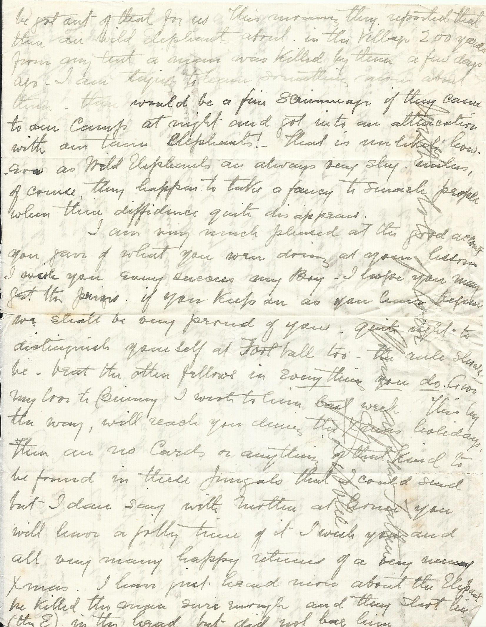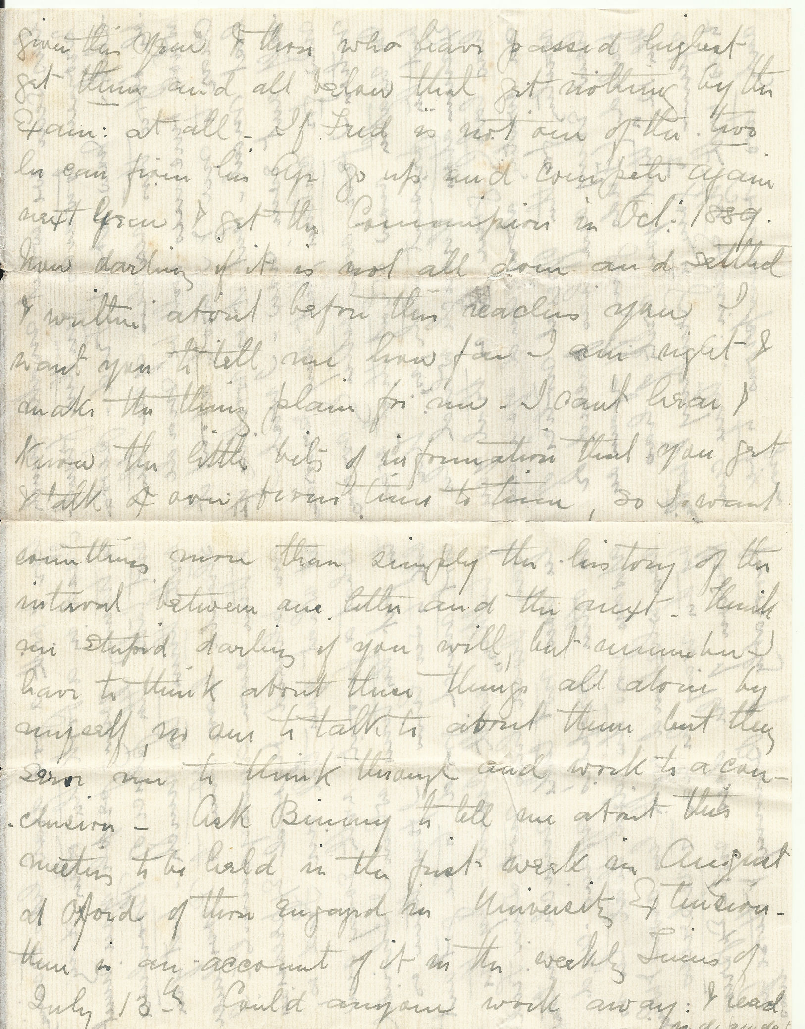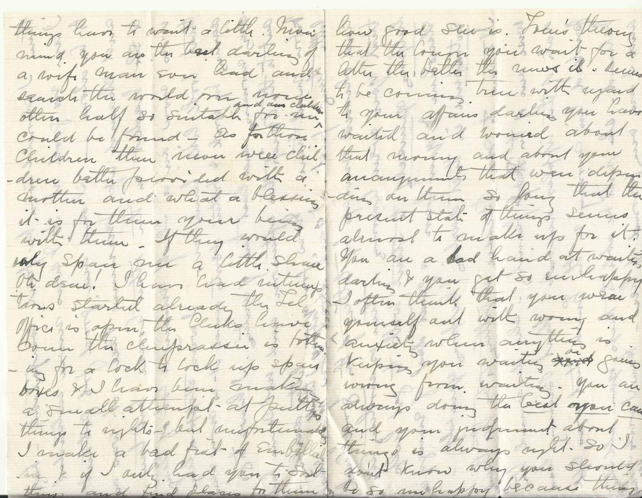 Now, darling, I must tell you, now it having passed, all that was in my mind, when I was staying in Rangoon, that kept my spirits down, & prevented cheerful letters, & writing separate letters to the young people. I was seedy, my digestion apparatus got all wrong, and I could neither eat or digest enough to keep me going. I did not eat a mouthful of meat for three months. I got rest from work, got away from Mandalay, & proper treatment, and so gradually got right again. So I am just as glad, nothing was said about it, but you can understand my being pretty low spirited.