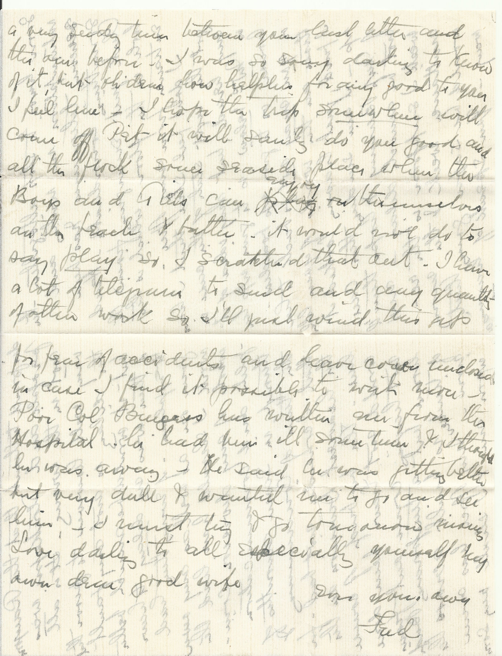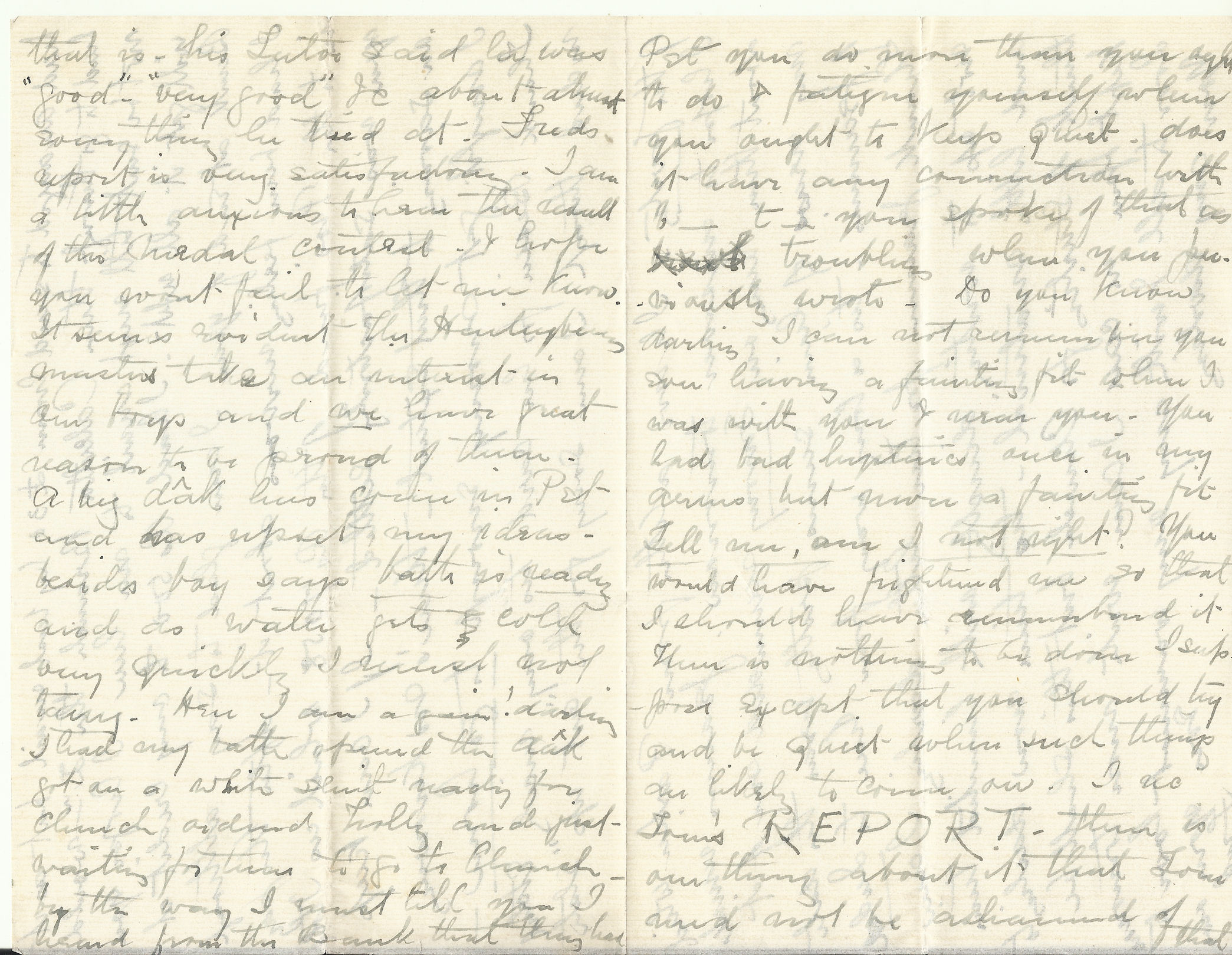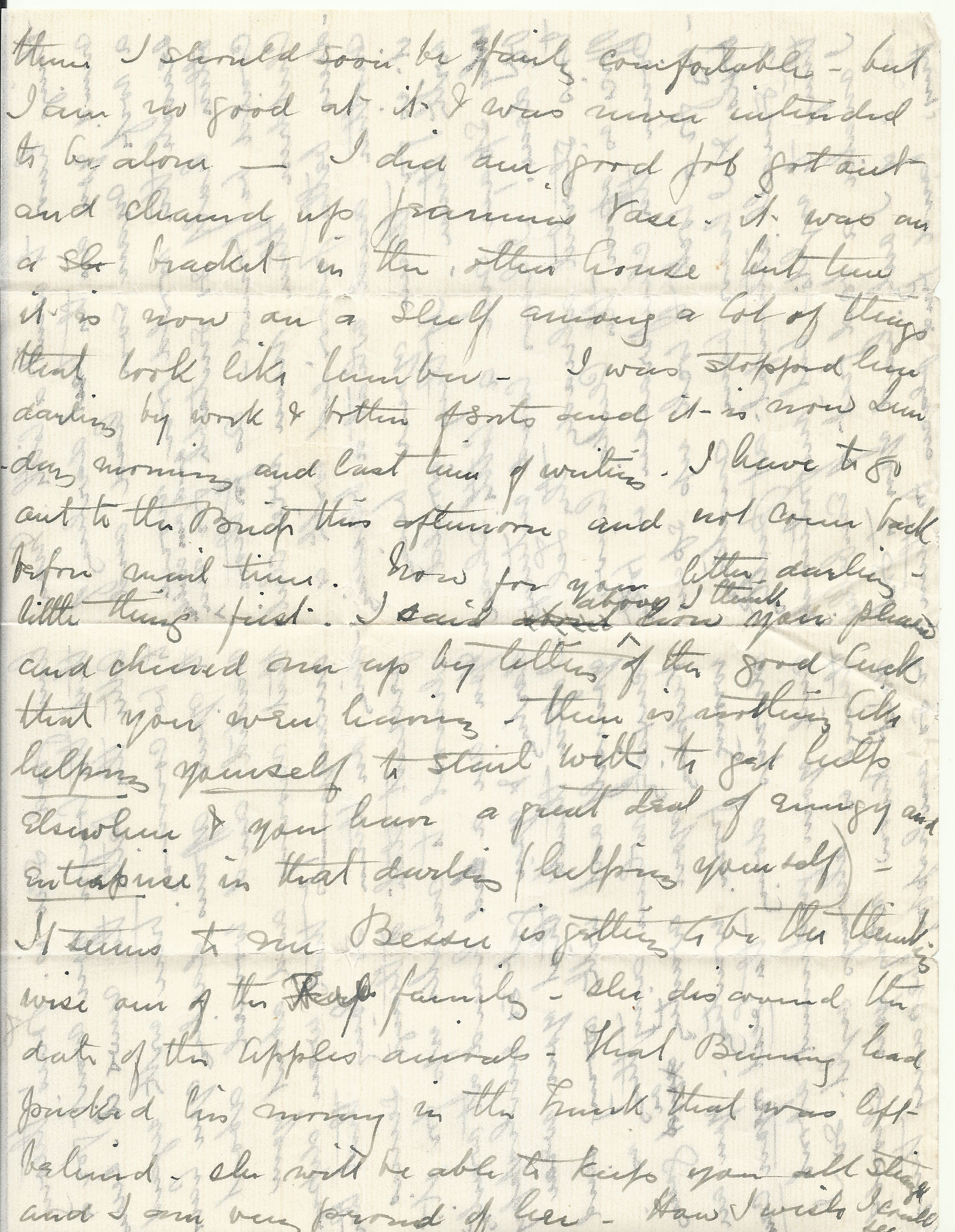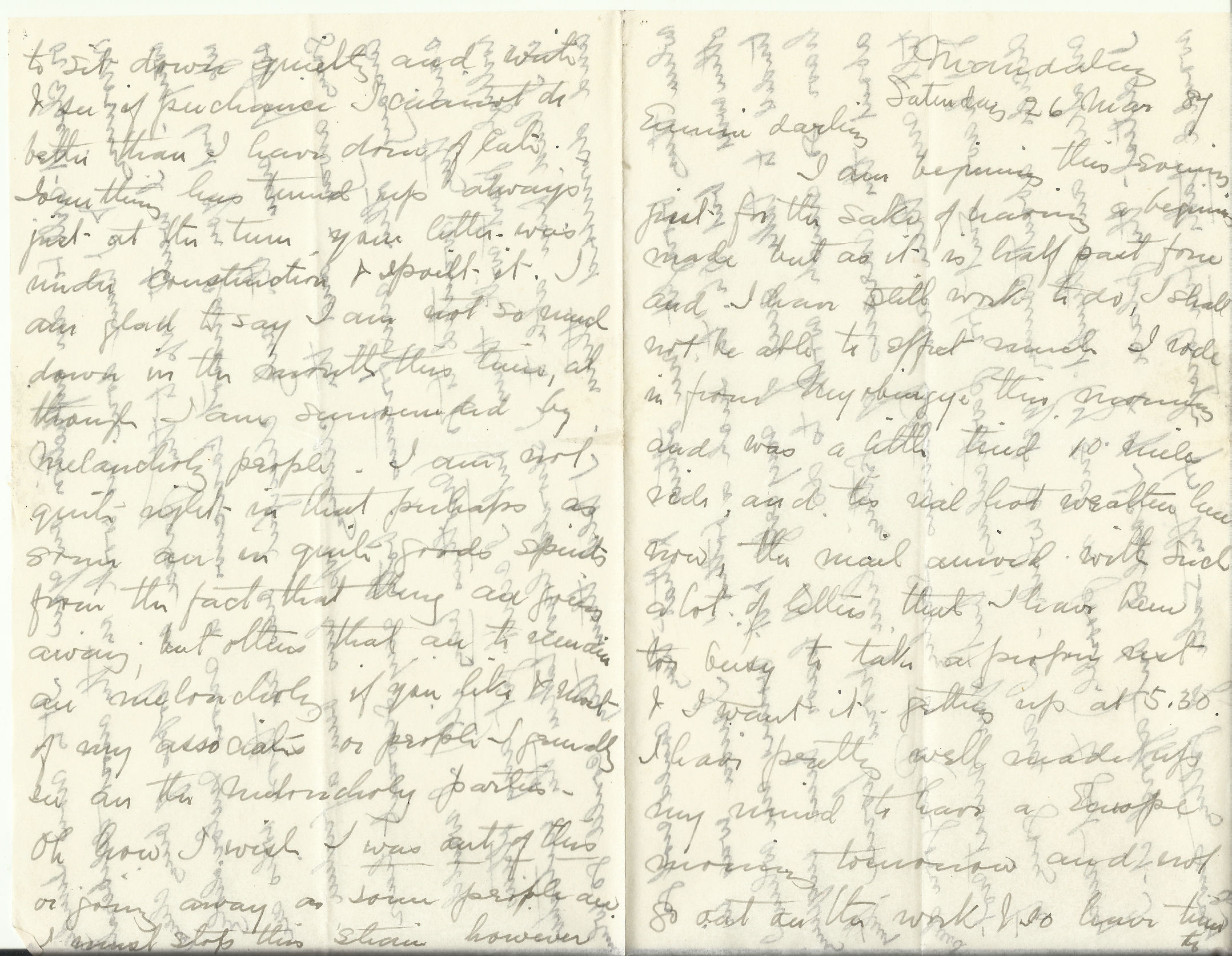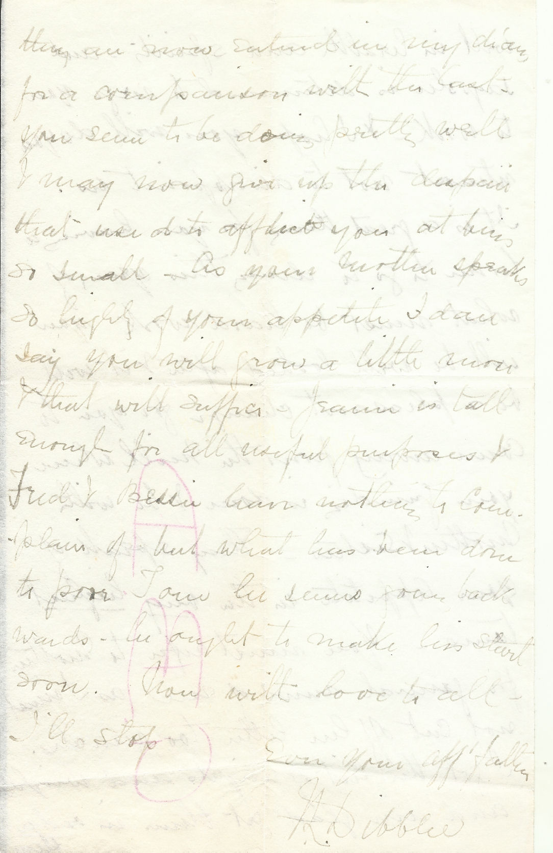 Now, darling, I must tell you, now it having passed, all that was in my mind, when I was staying in Rangoon, that kept my spirits down, & prevented cheerful letters, & writing separate letters to the young people. I was seedy, my digestion apparatus got all wrong, and I could neither eat or digest enough to keep me going. I did not eat a mouthful of meat for three months. I got rest from work, got away from Mandalay, & proper treatment, and so gradually got right again. So I am just as glad, nothing was said about it, but you can understand my being pretty low spirited.