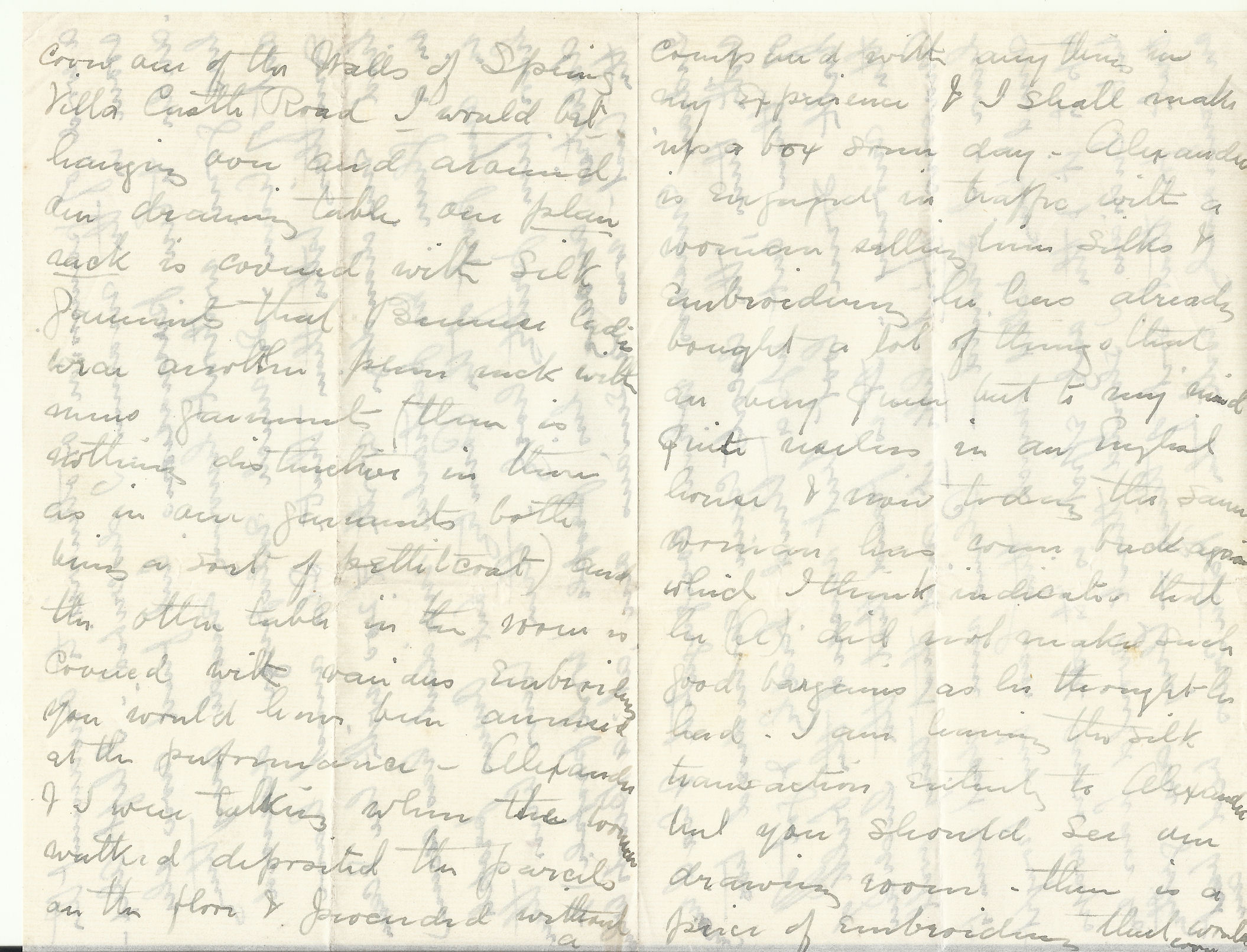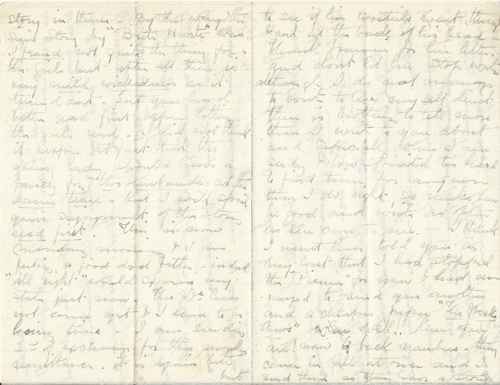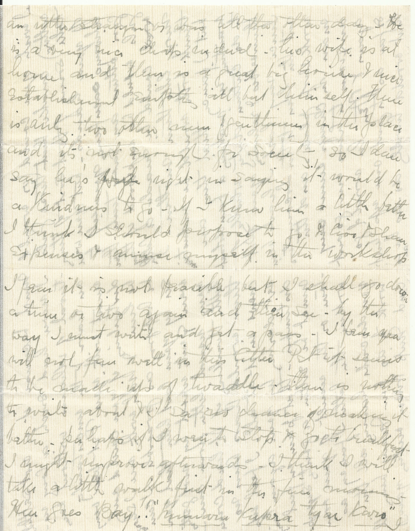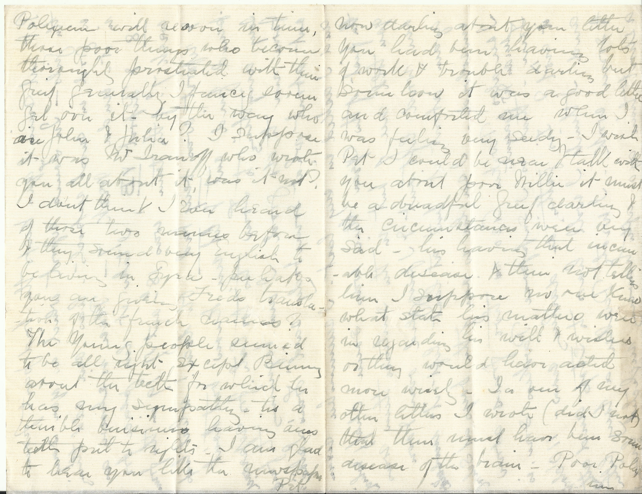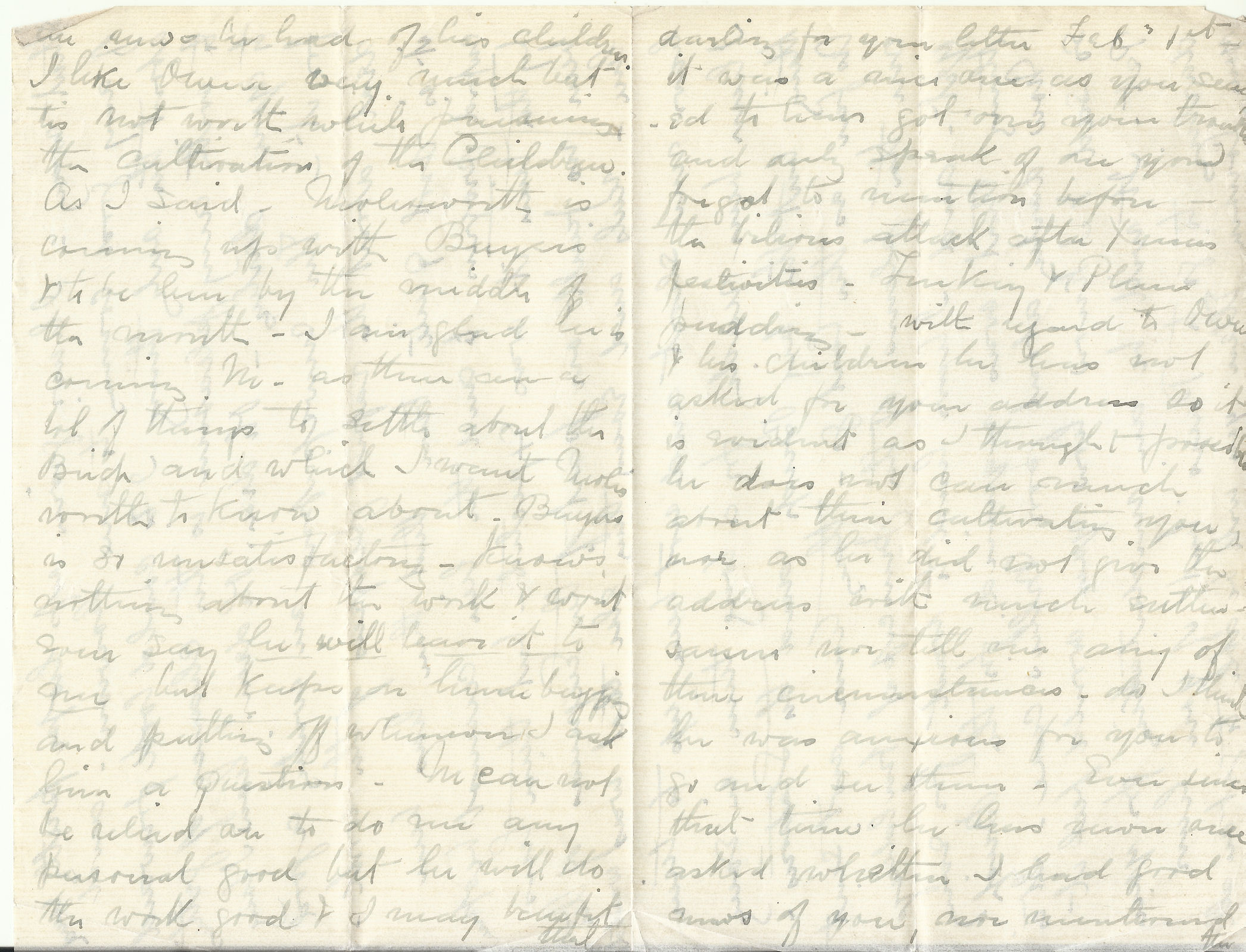 Now, darling, I must tell you, now it having passed, all that was in my mind, when I was staying in Rangoon, that kept my spirits down, & prevented cheerful letters, & writing separate letters to the young people. I was seedy, my digestion apparatus got all wrong, and I could neither eat or digest enough to keep me going. I did not eat a mouthful of meat for three months. I got rest from work, got away from Mandalay, & proper treatment, and so gradually got right again. So I am just as glad, nothing was said about it, but you can understand my being pretty low spirited.