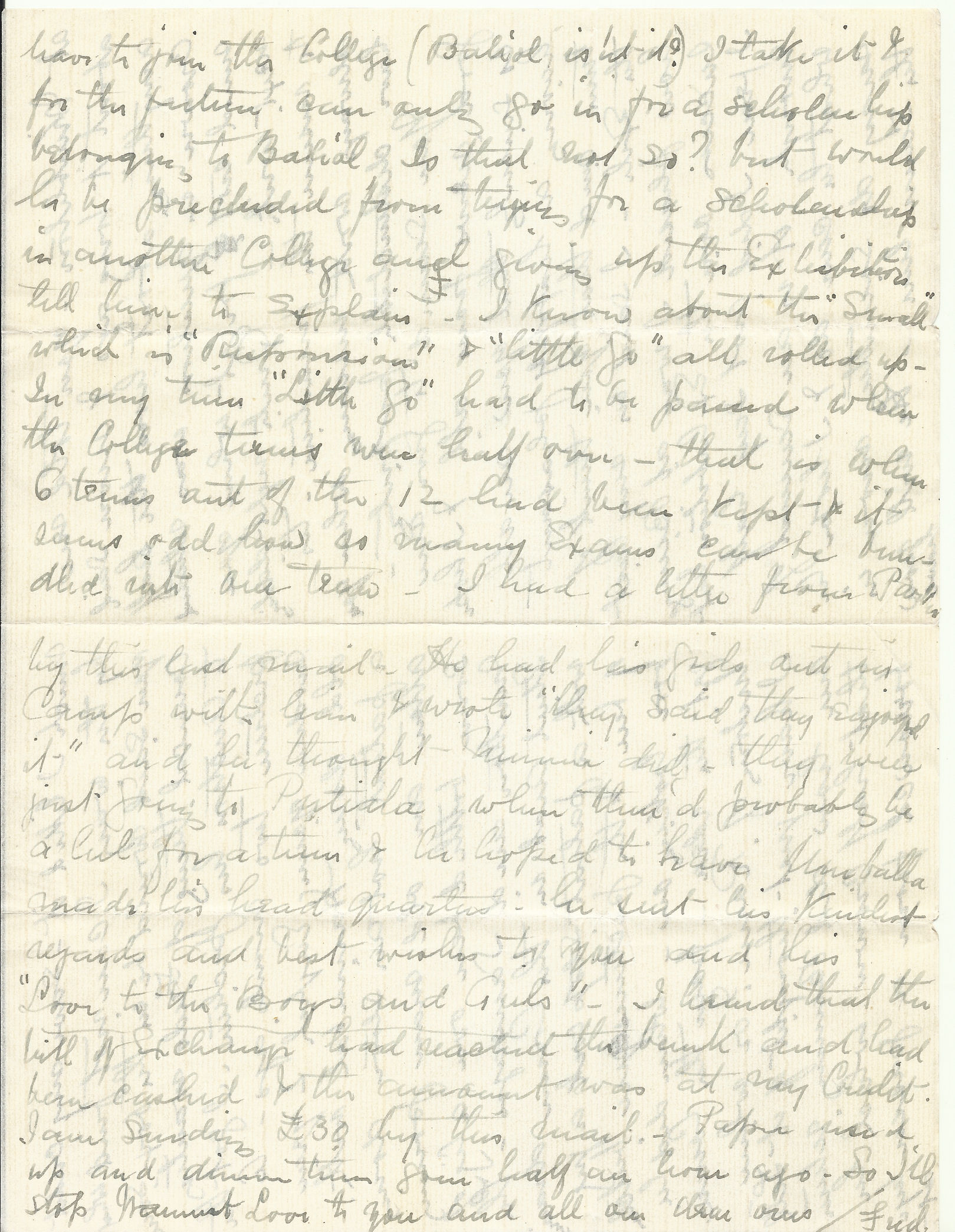 My father John Dibblee told me that his father, Frederick Dibblee junior, had been told by his father, Frederick Dibblee senior, that it was better to be trained at Cooper's Hill as an engineer, but this cost money that wasn't available. My father thought that this was because Frederick Dibblee senior had died (a few months after this letter), but this letter shows the money wasn't available anyway.