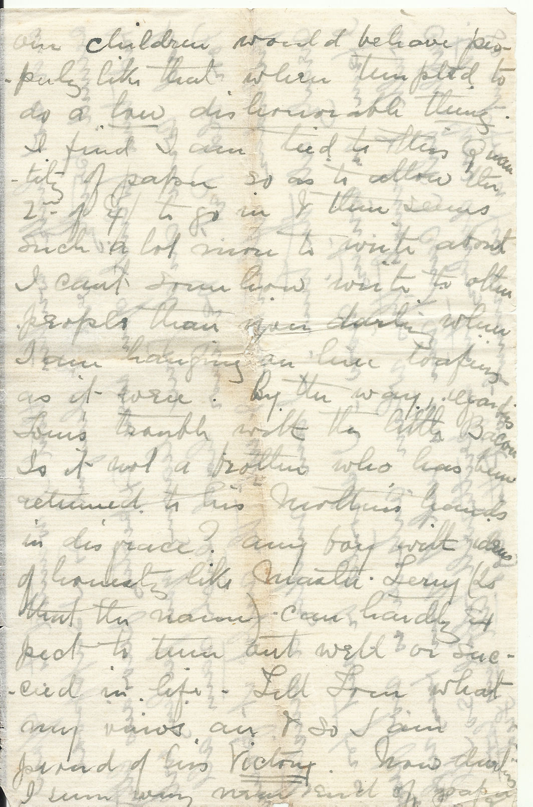 The children are often mentioned in the letters. Binney was his oldest surviving son, born 1868. Fred (junior) was his second surviving son, born 1872. His other surviving children were Jeannie, Bessie and Tom.