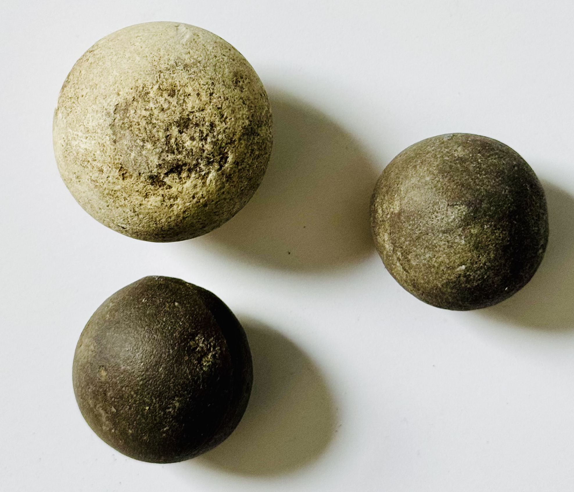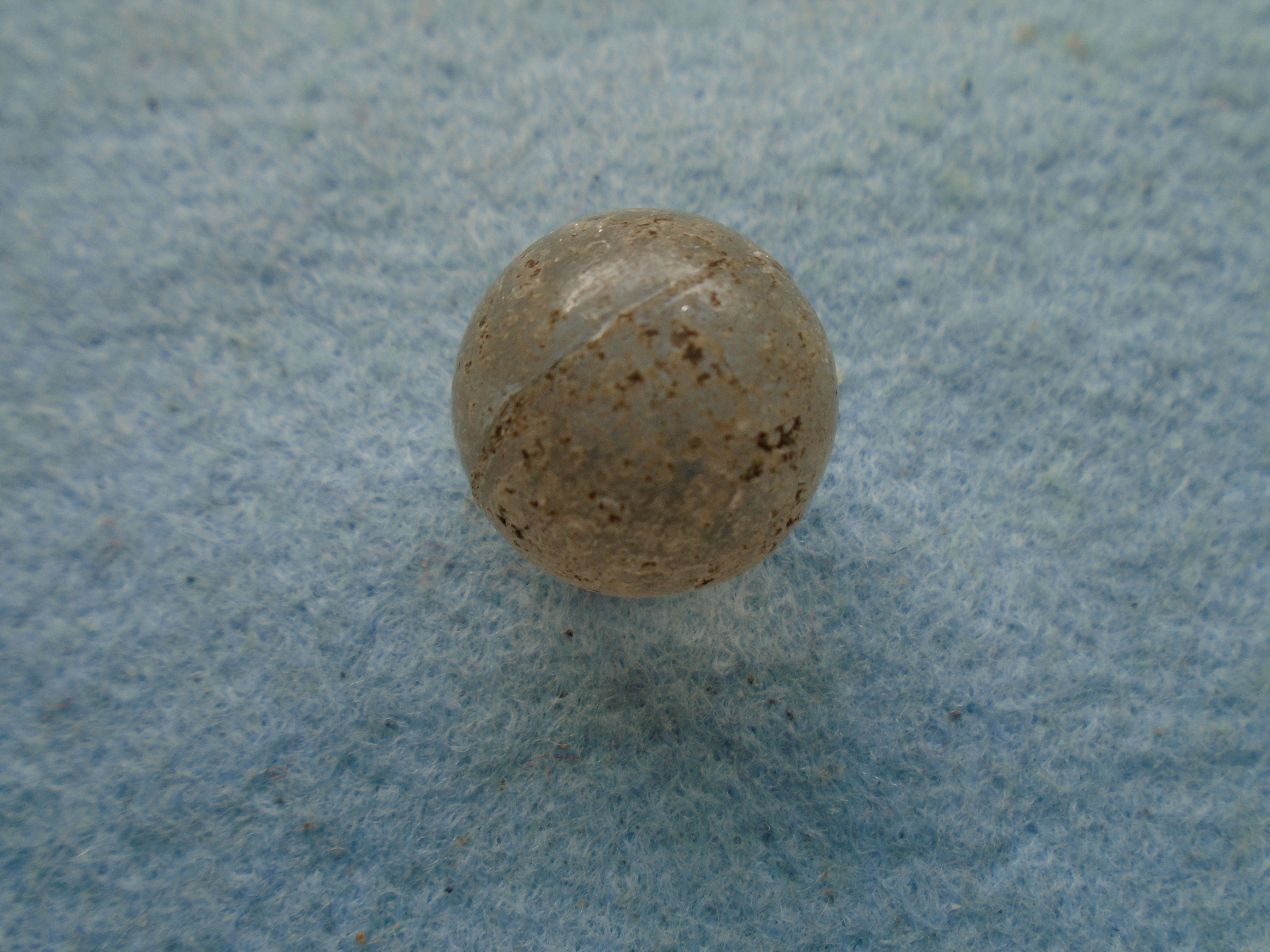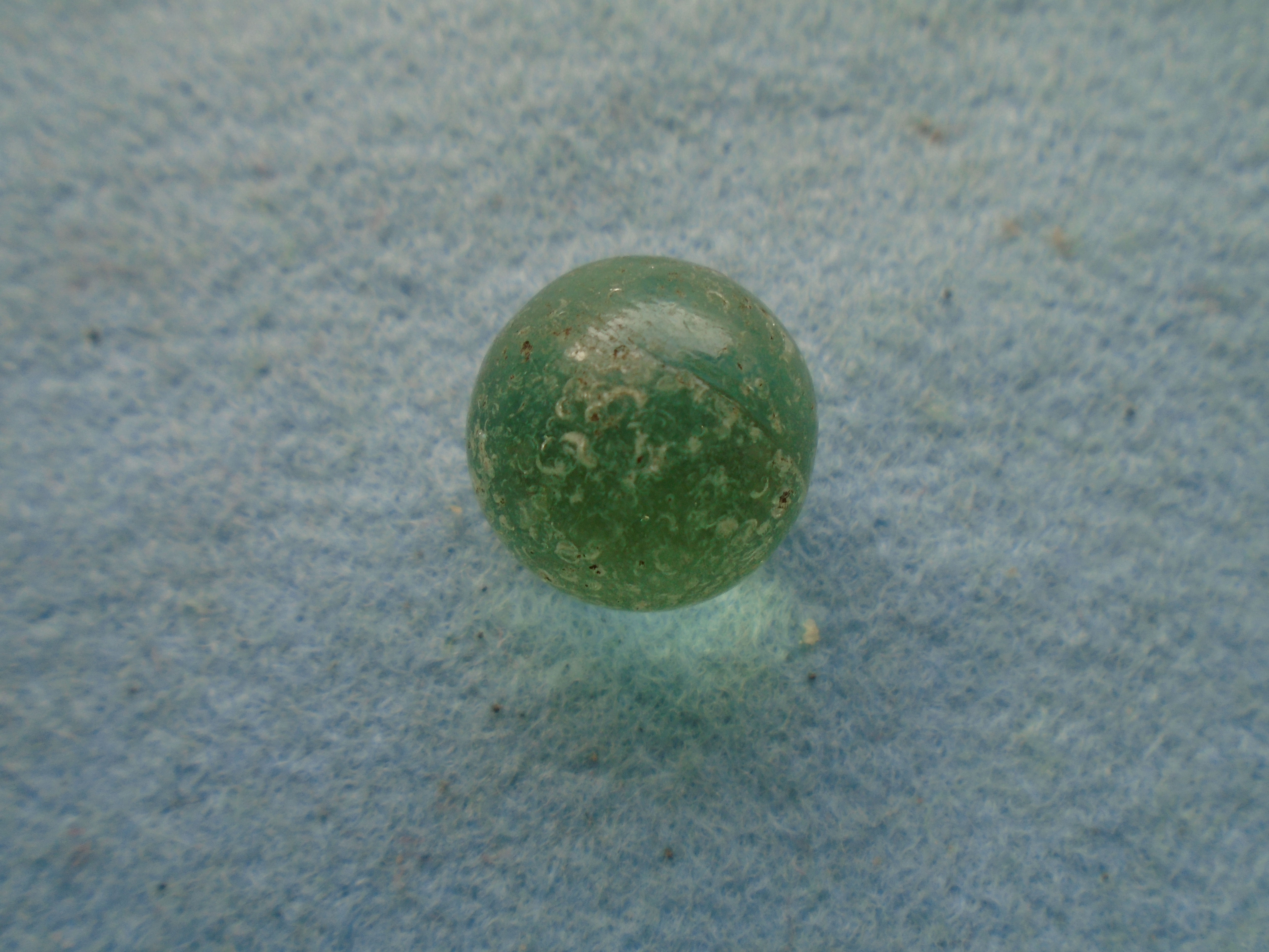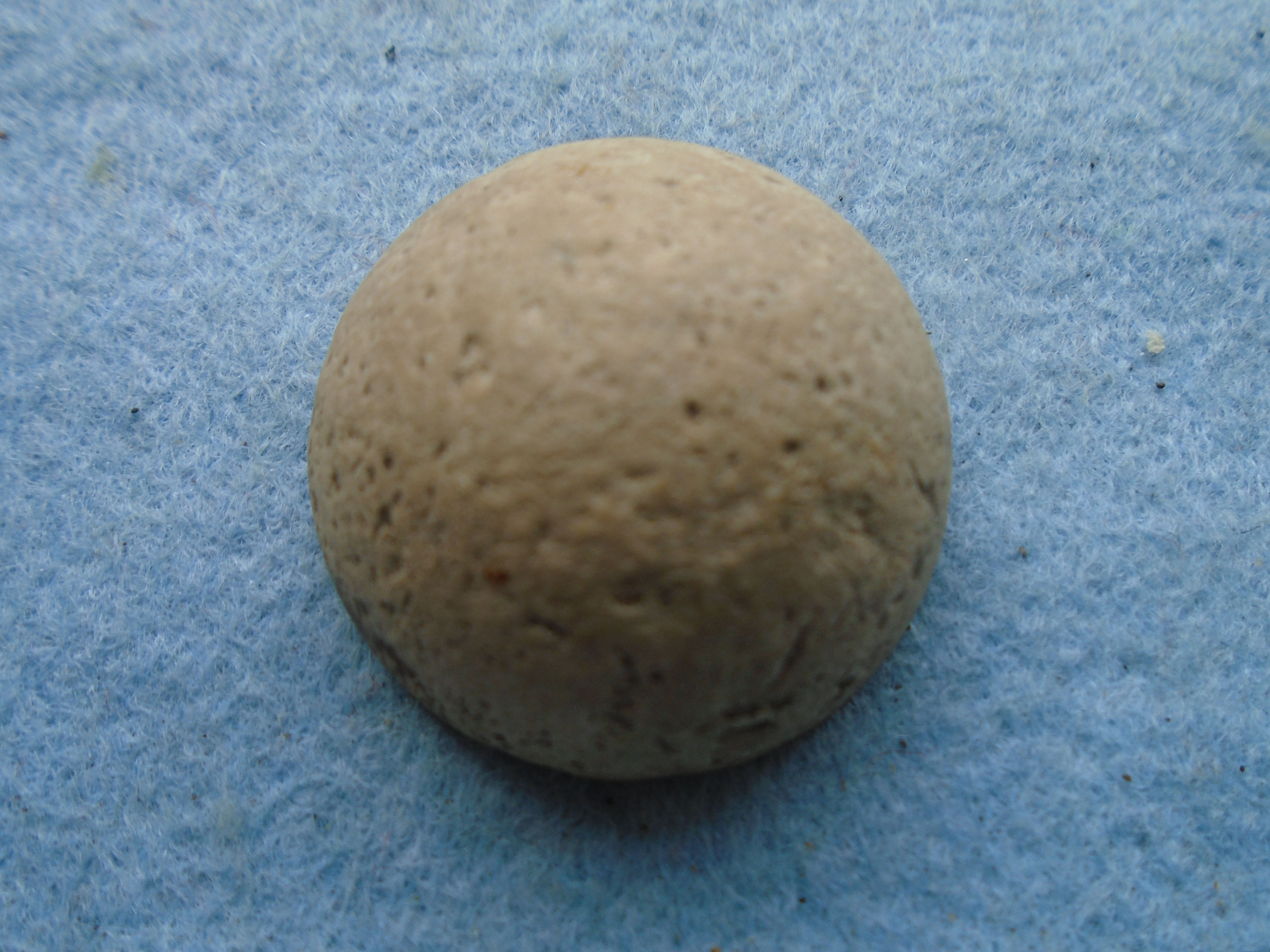 Round objects: The clay balls are probably marbles. The glass balls may be the stopper inside a bottle of fizzy pop.