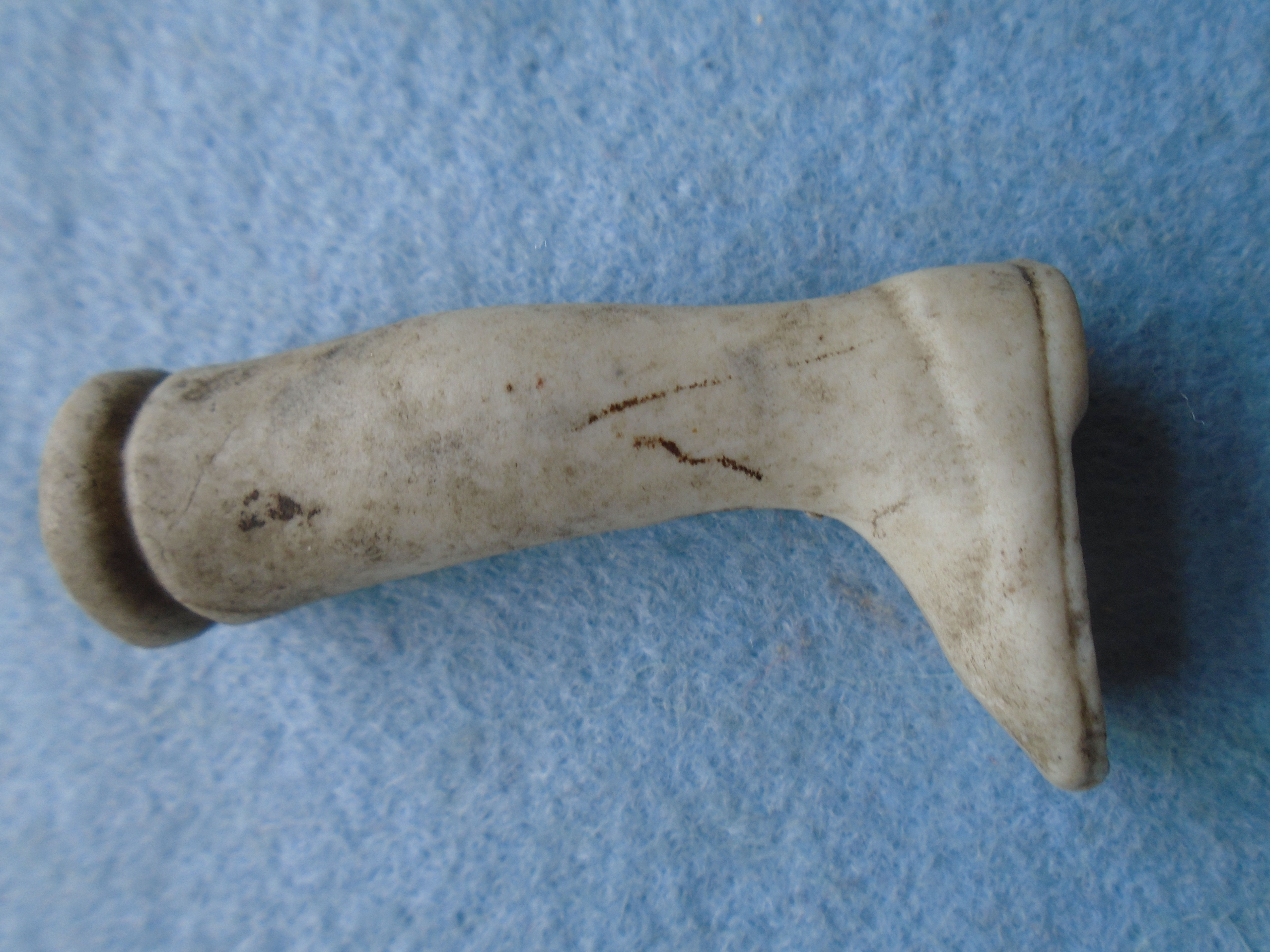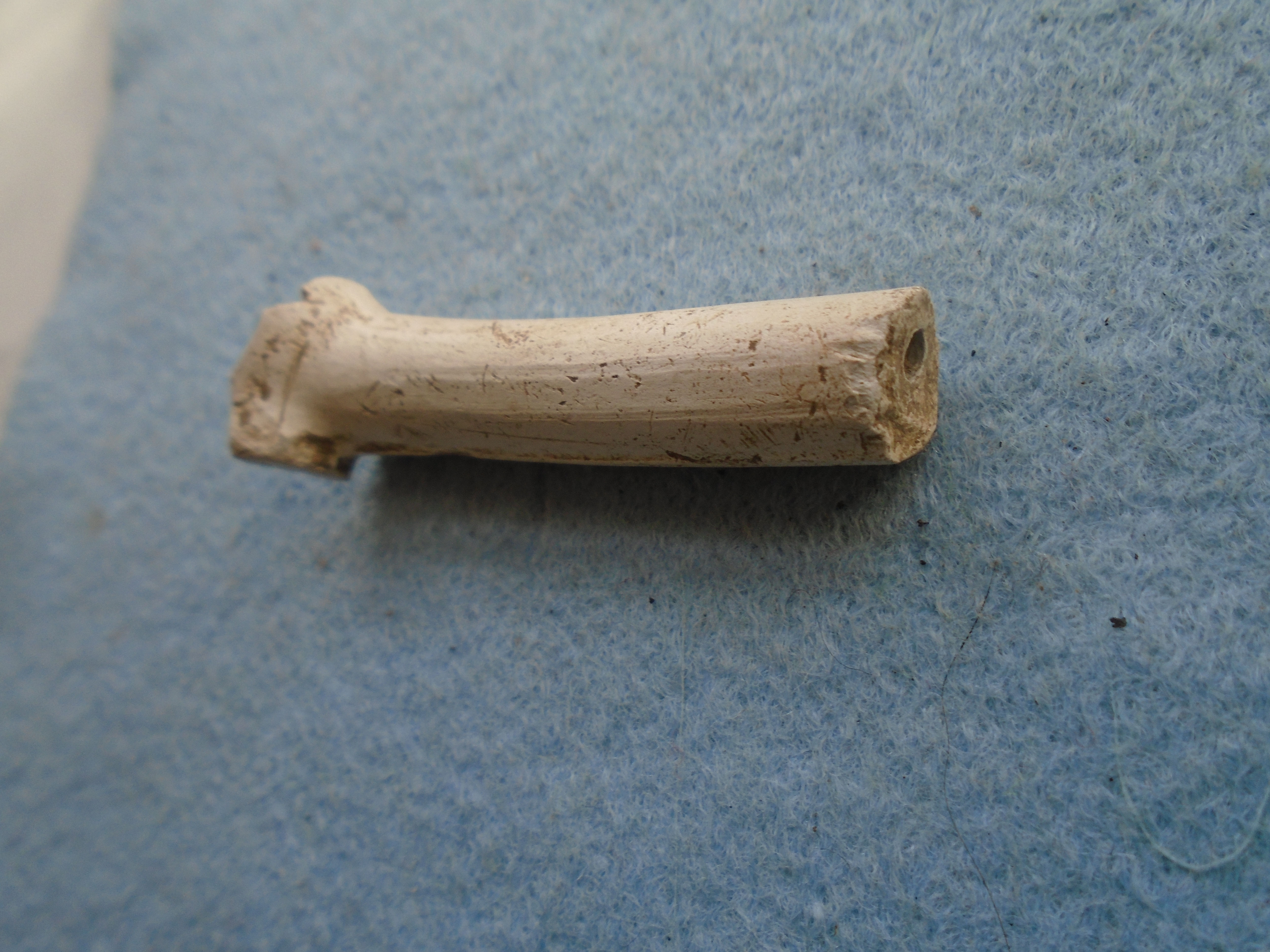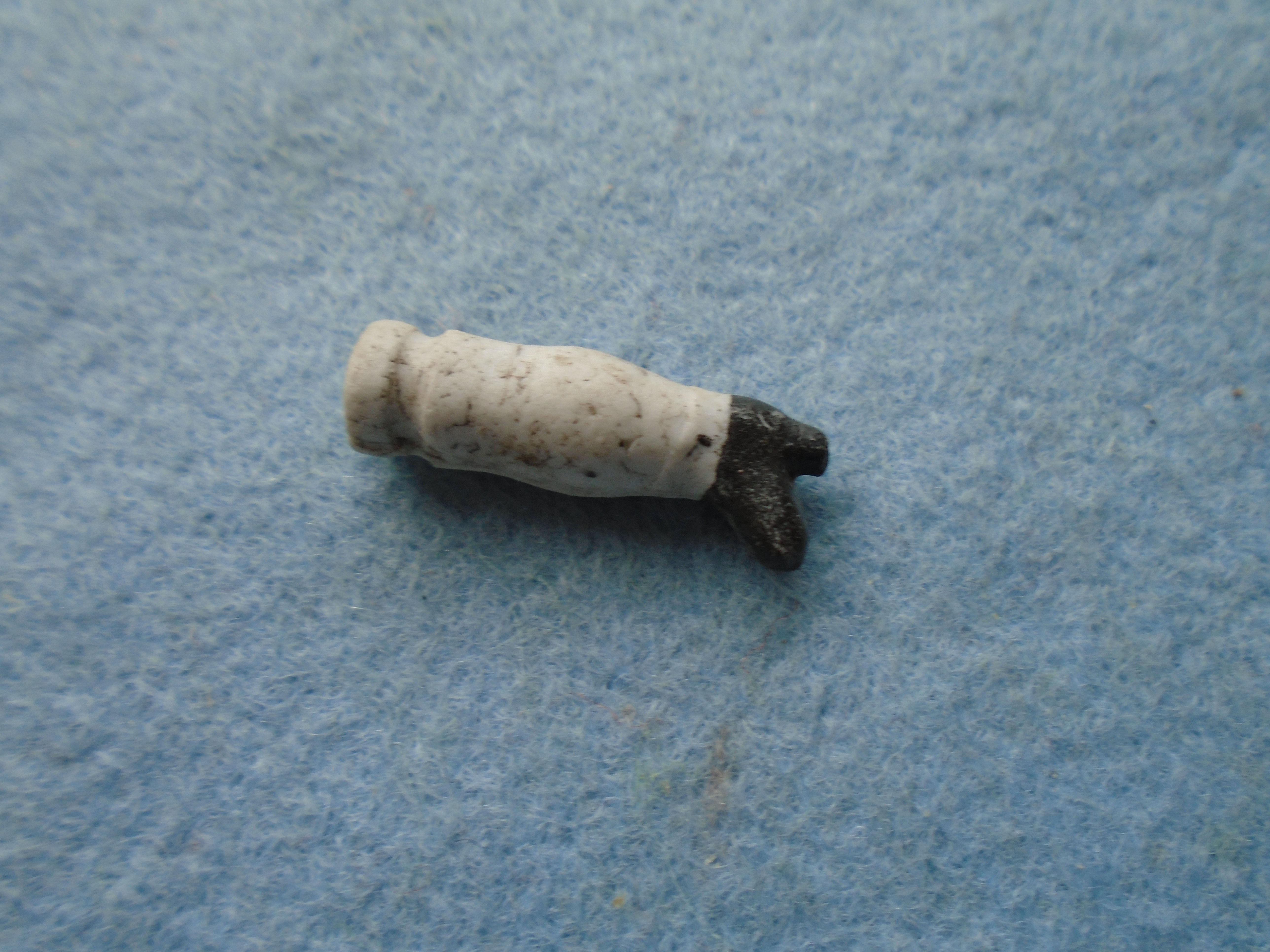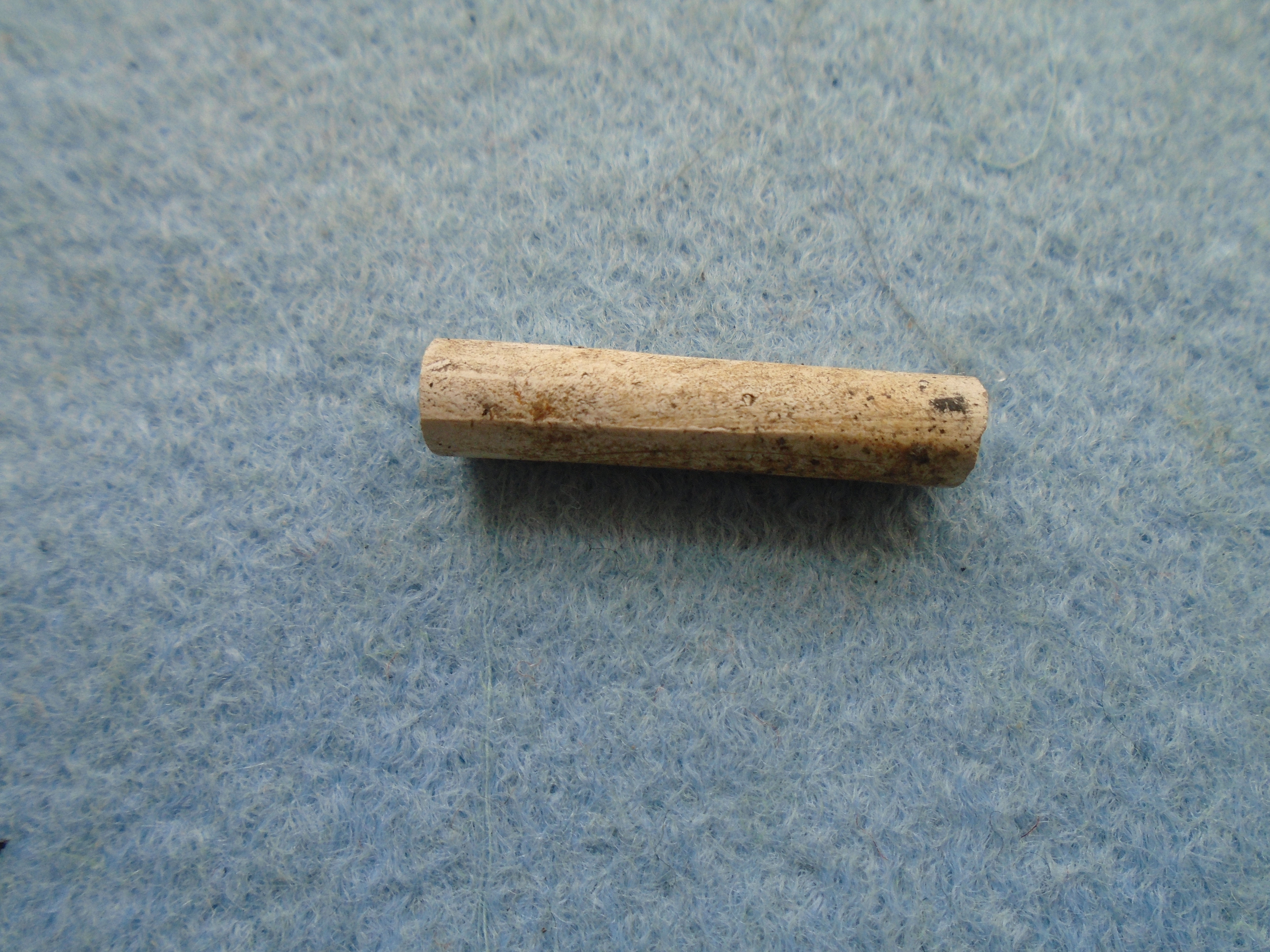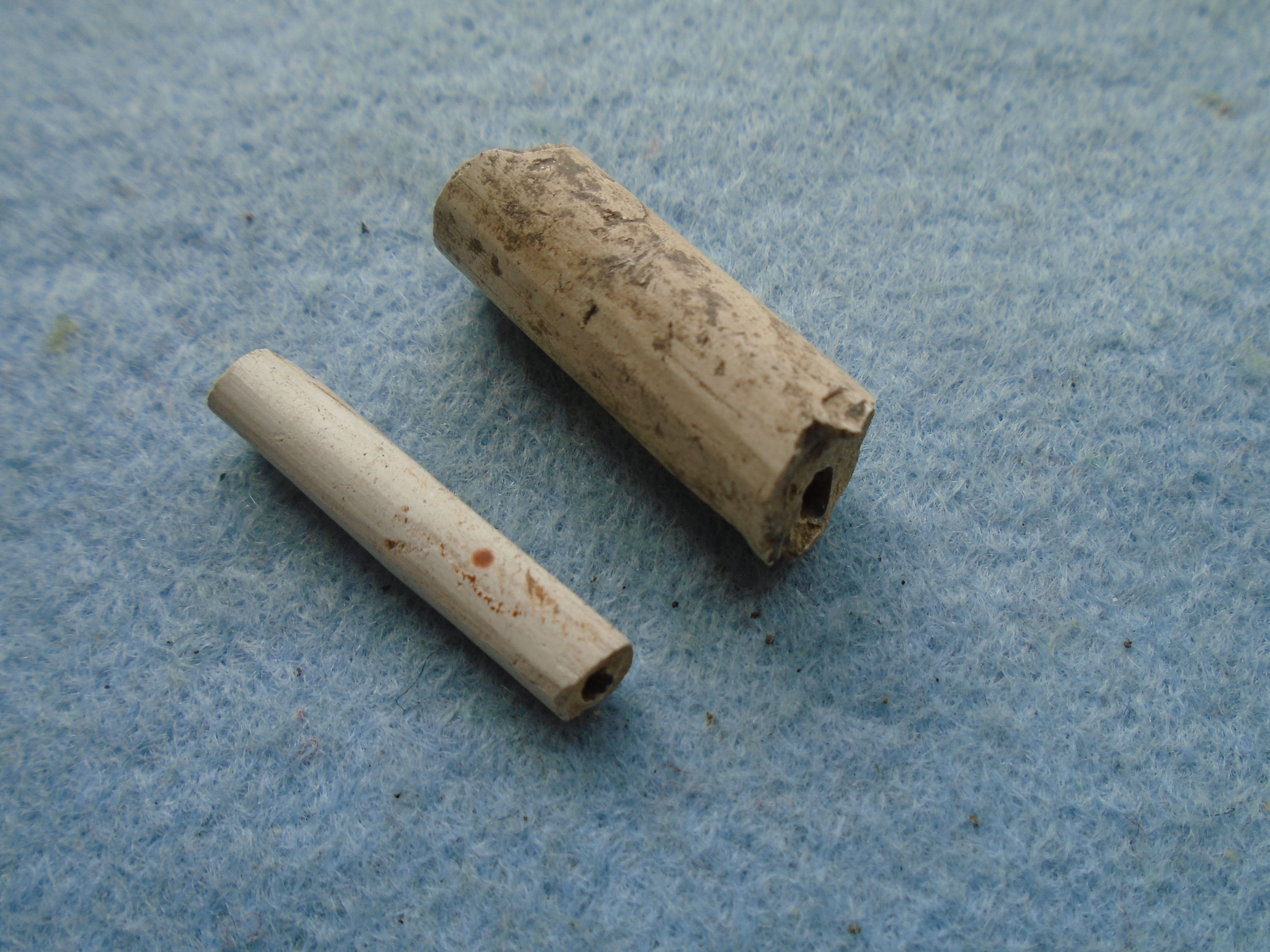Tobacco was smoked in clay pipes. These had long stems, and were very breakable! So bits of pipe stem are quite common. Sometimes you find the bowl. The stem varied in width within a single pipe.
