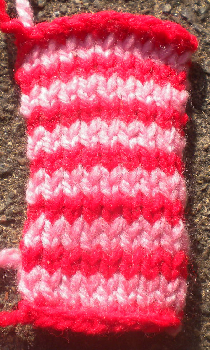 I have not done a left-handed version of this. If you are left-handed, imagine the pictures as after you have turned the knitting round, to start the next row.