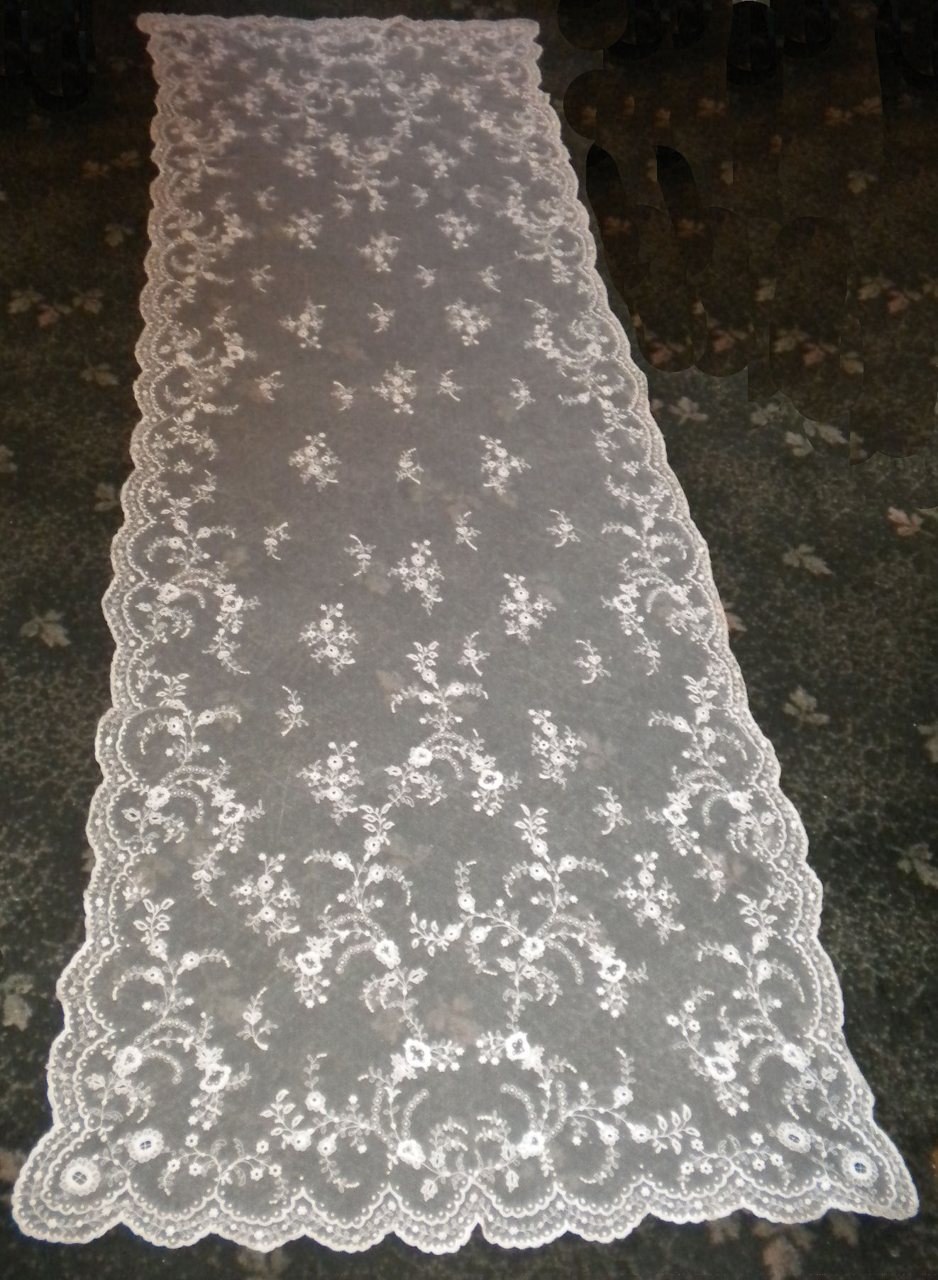 This veil is 7 ft 6 ins long, and about 2 feet wide.