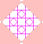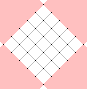 The first confusion is how big the diamond is. Look at the pink diamond area above. It is tempting to say that the shape is 6x6. However, the pink lines belong to the lace surrounding the diamond shape. Only the grey lines crossing into the middle of the diamond shape can actually be used. And there are 4x4 of those. If this sounds confusing, then look at the shape below. Here our diamond shape is surrounded by cloth stitch. Only the pairs that leave the cloth stitch may be used, and there are 4 on one side, and 4 on the other. So I will call this a 4x4 diamond shape.