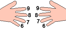 Hold your hands with palms facing you and fingers towards each other. Number the fingers on each hand from bottom to top as six to nine. (The thumb could be ten, but it's easy to multiply by ten, so don't bother!) |