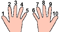 Hold both your hands up with palms facing you. Number the fingers from left to right as one to ten. |