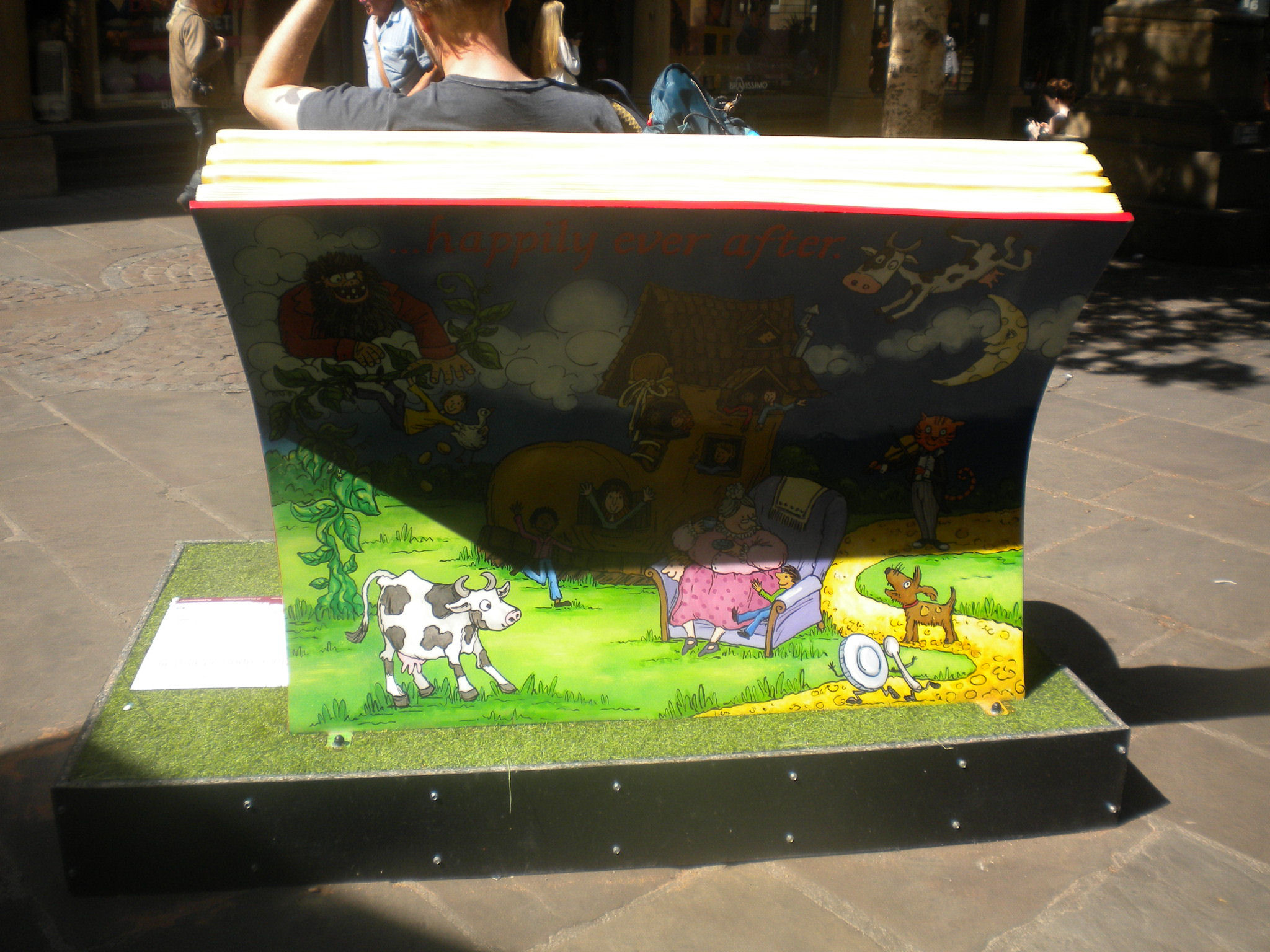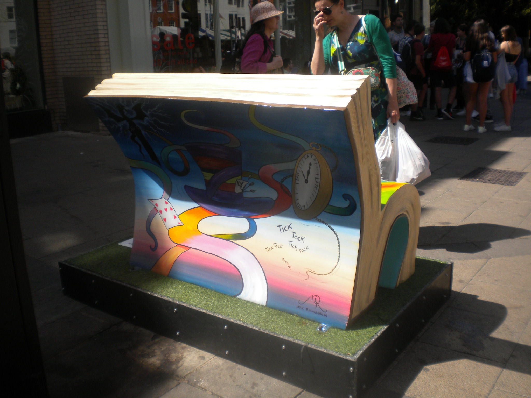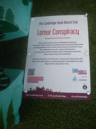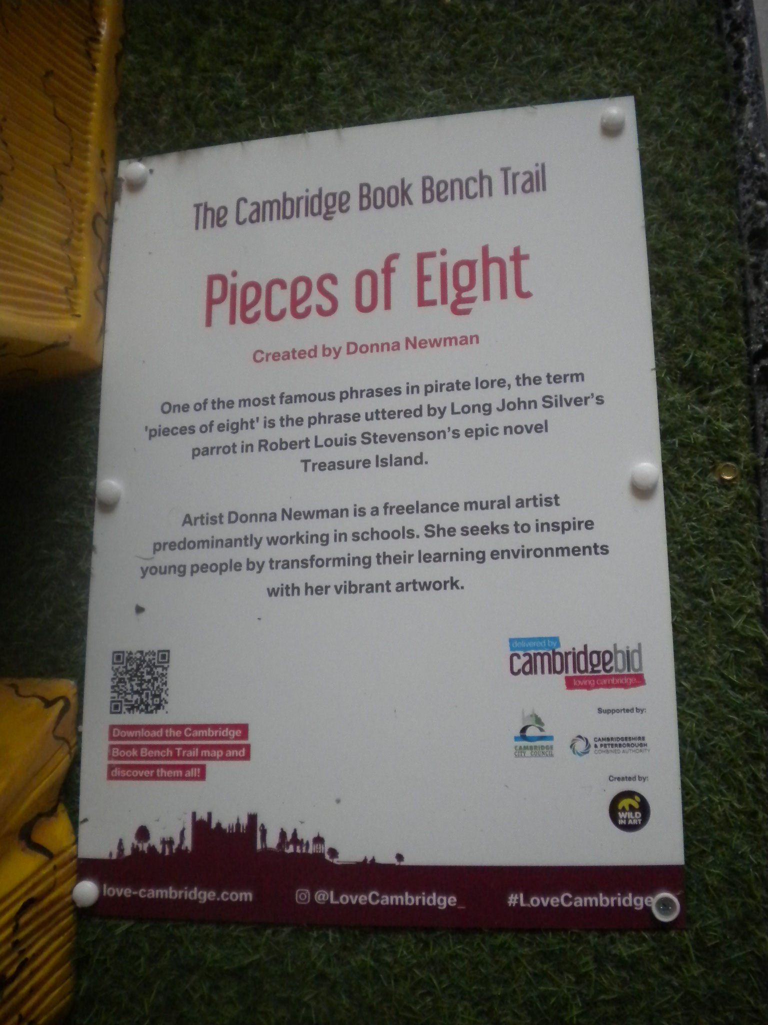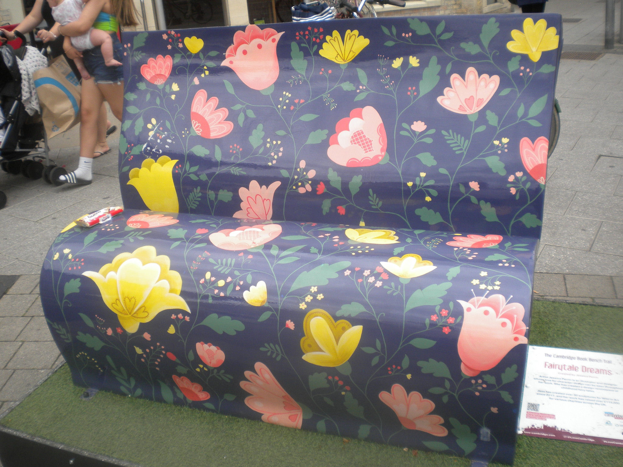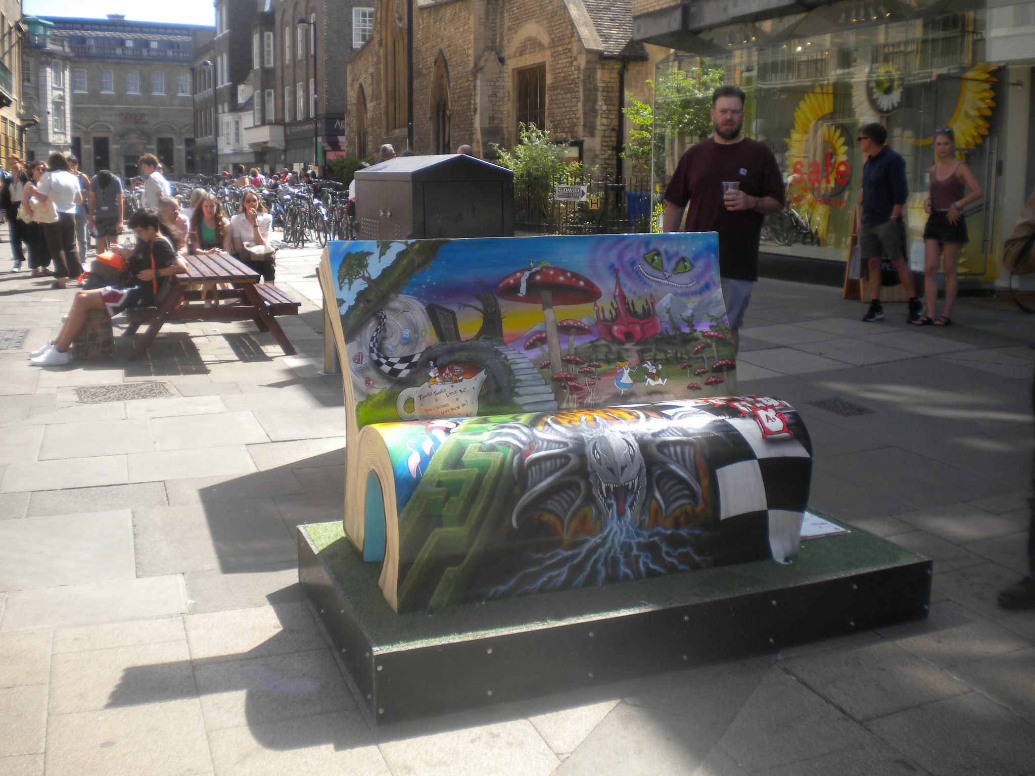 In summer 2022, a number of decorated book benches appeared on the streets of Cambridge. I assume that these will be temporary, like the cows. The "blurb" says "This summer Cambridge BID are working with Wild in Art to install 12 Book Bench sculptures across the city, all individually designed by UK artists. You will find them in the historic core, shopping centres, train station and in the parks and open spaces.