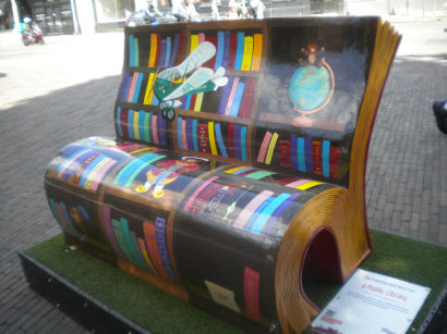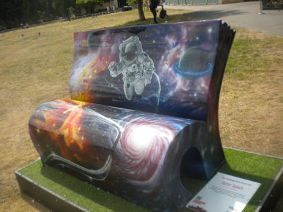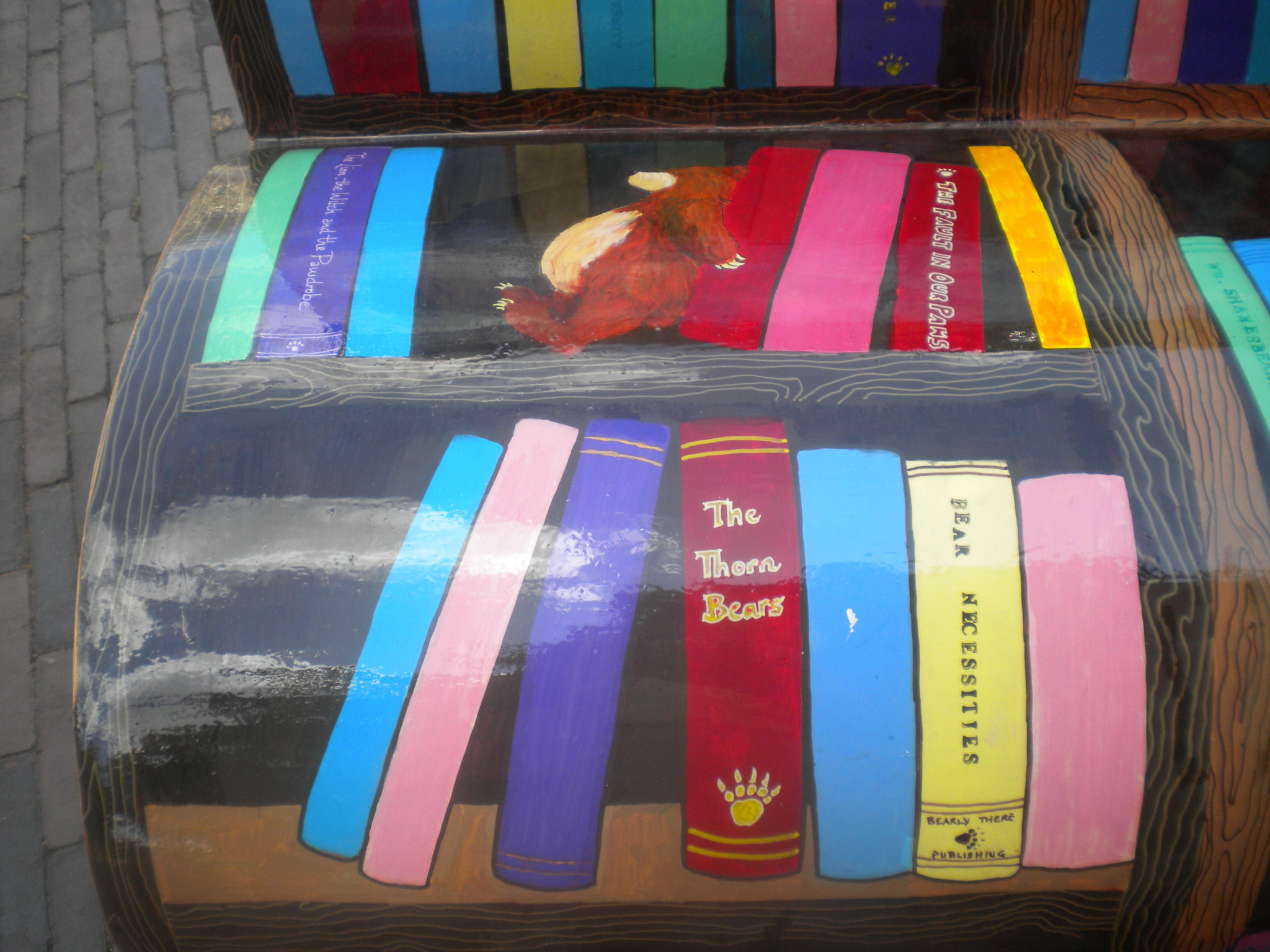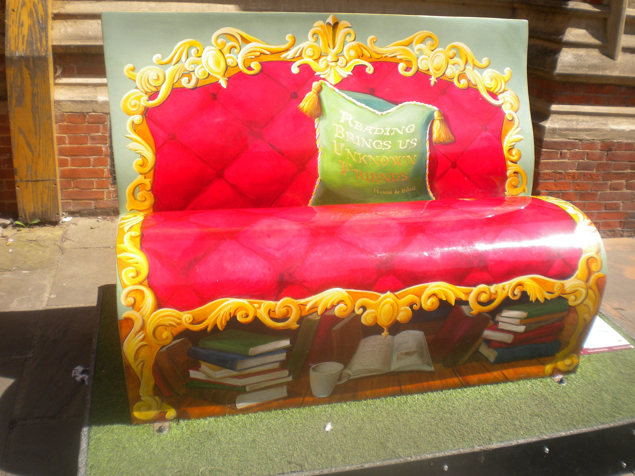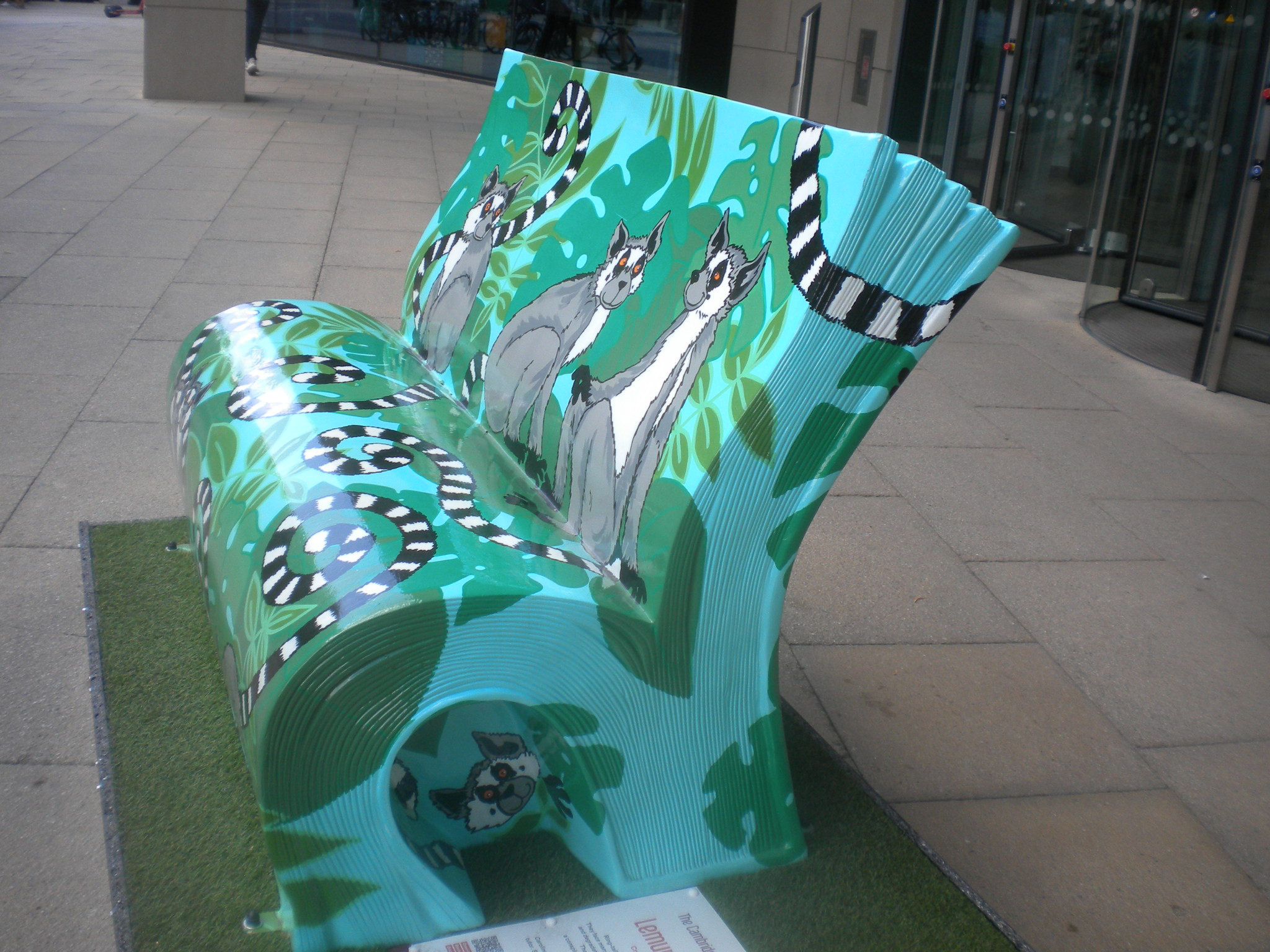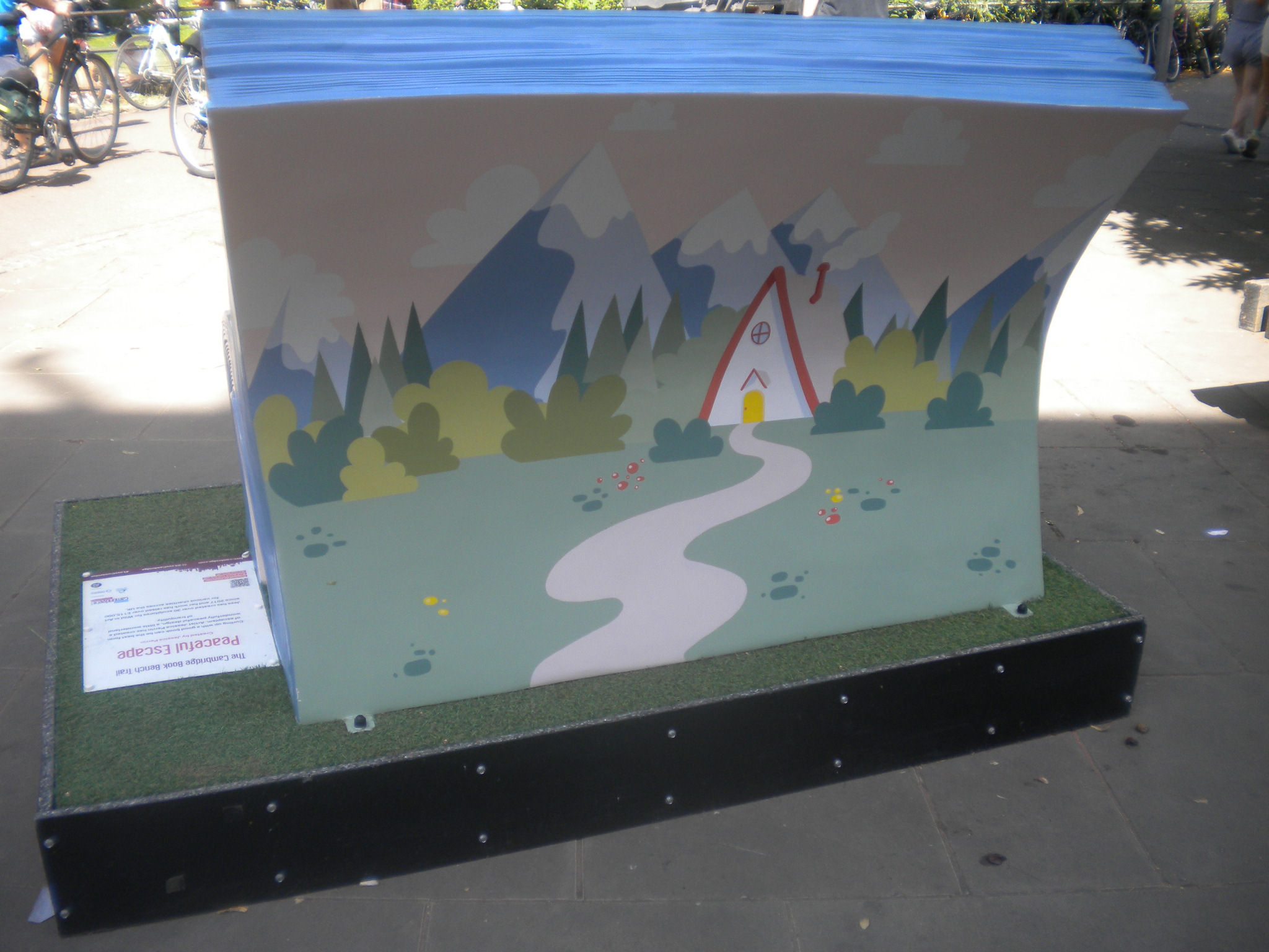 In summer 2022, a number of decorated book benches appeared on the streets of Cambridge. I assume that these will be temporary, like the cows. The "blurb" says "This summer Cambridge BID are working with Wild in Art to install 12 Book Bench sculptures across the city, all individually designed by UK artists. You will find them in the historic core, shopping centres, train station and in the parks and open spaces.