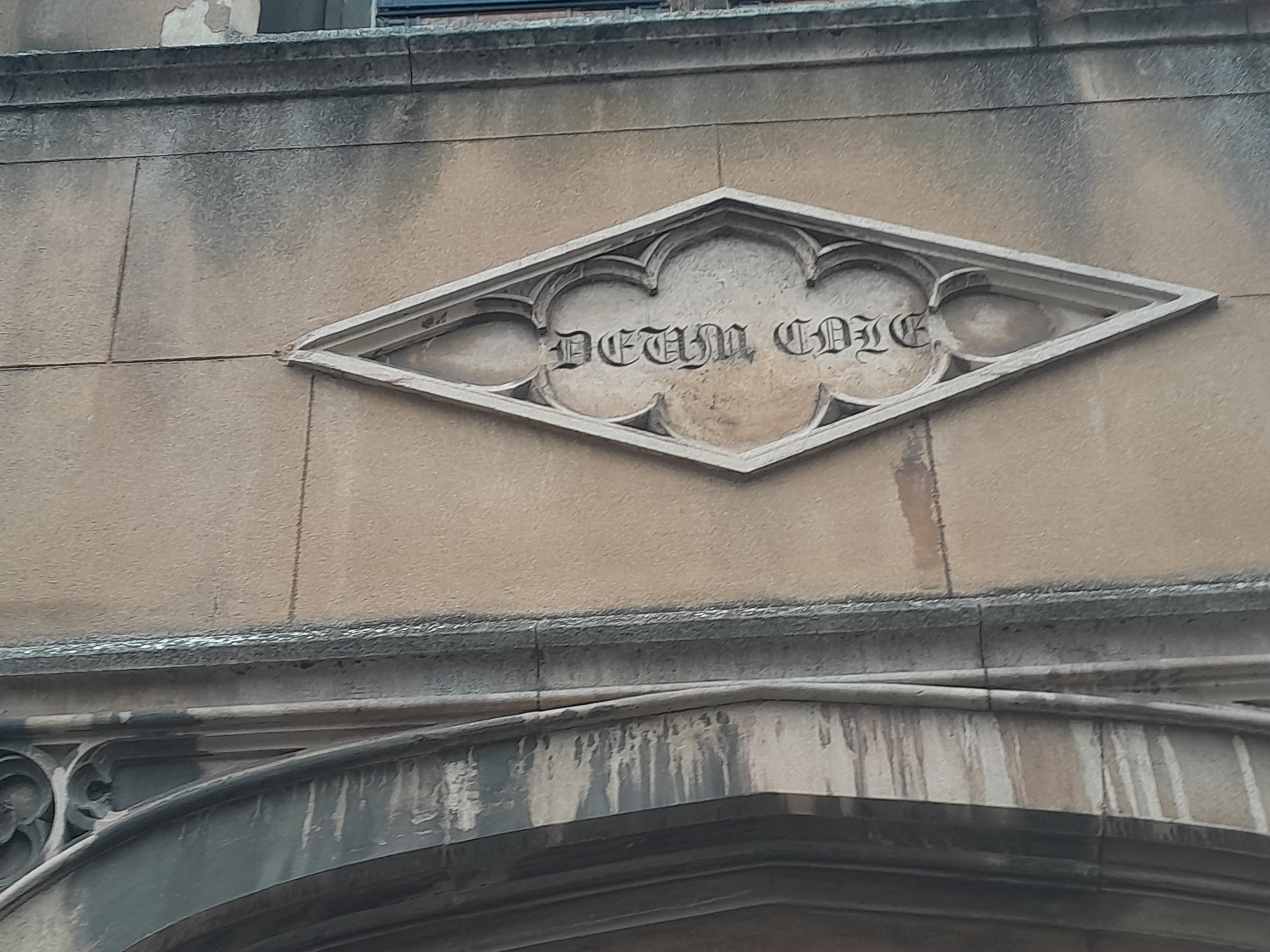 "Deum Cole" means "Worshop God". It is a rebus or punning motto.