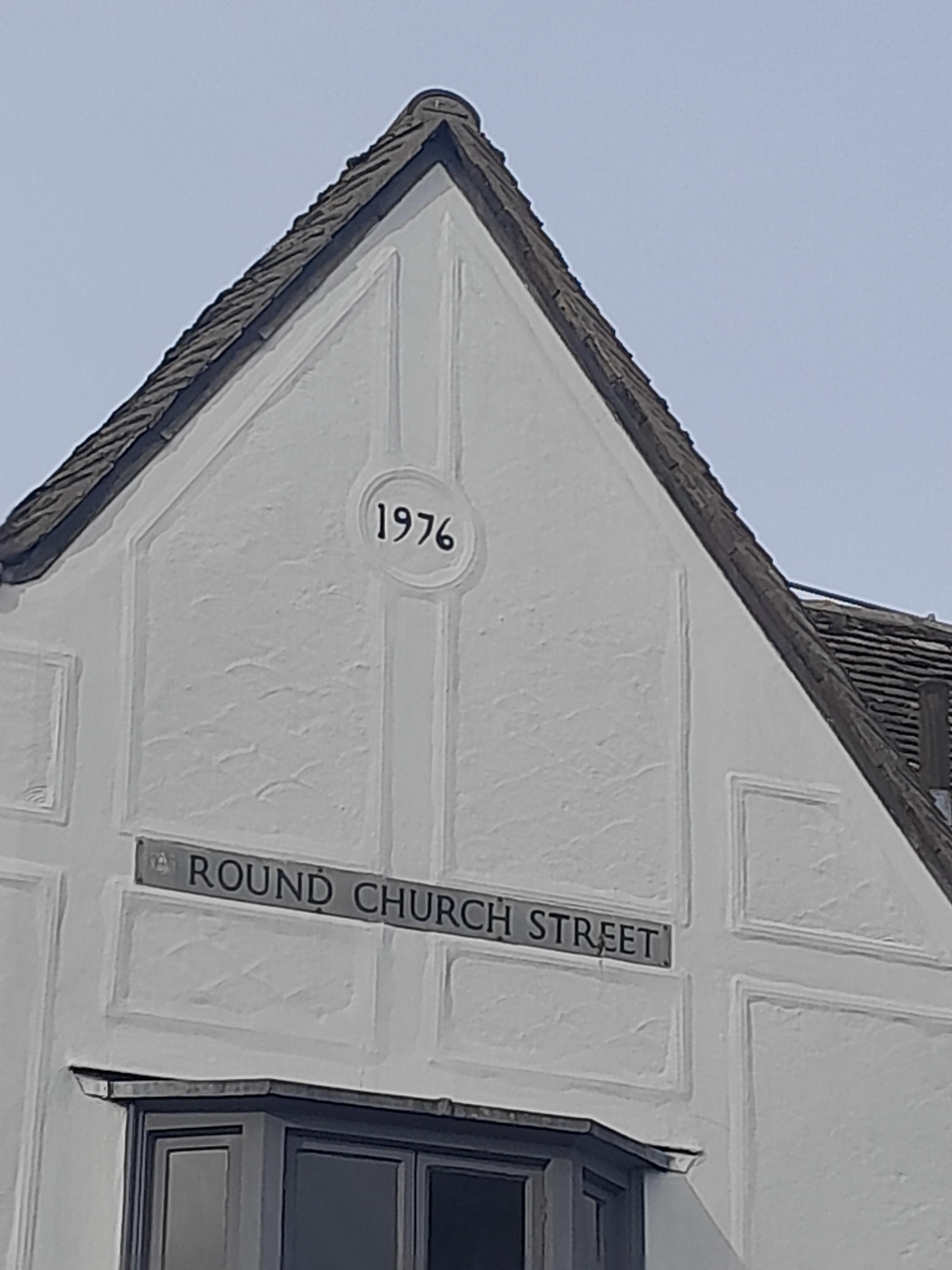 The houses in Bridge Street near the Round Church, on the way to Magdalene Bridge, are at least 17c. The pargetting is modern, and quite simple. It does give the date, 1976.