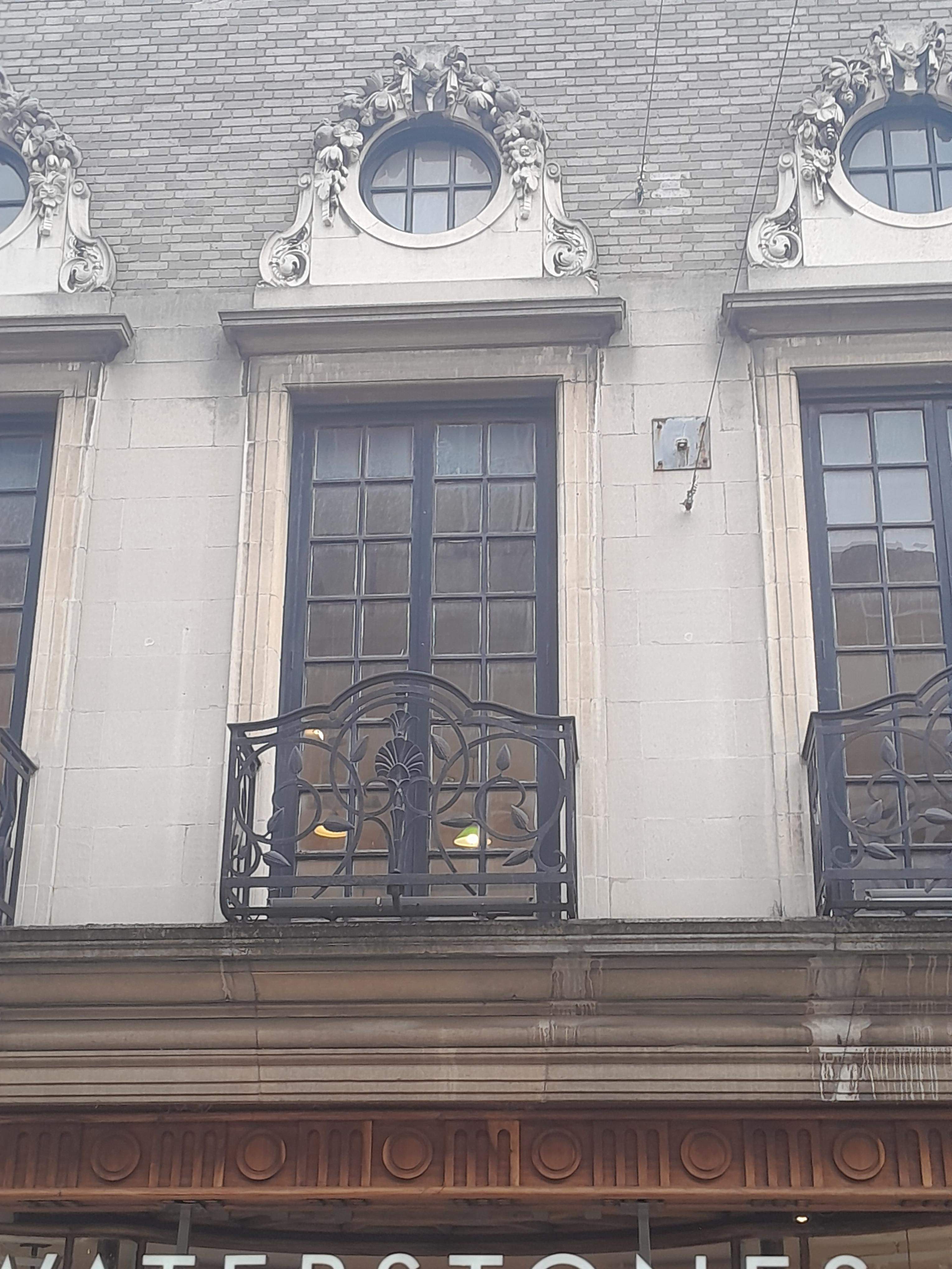 Above 19 At Andrews Street, there is an owl, sitting on a pestle and mortar. This shows that this shop was originally an apocathary. These sold medicines, like a chemist, but they ground up the ingredients themselves. The owl is a symbol of wisdom. The sign has a date 1851 1934. I assume that is the date of the building, and when the sign was made.