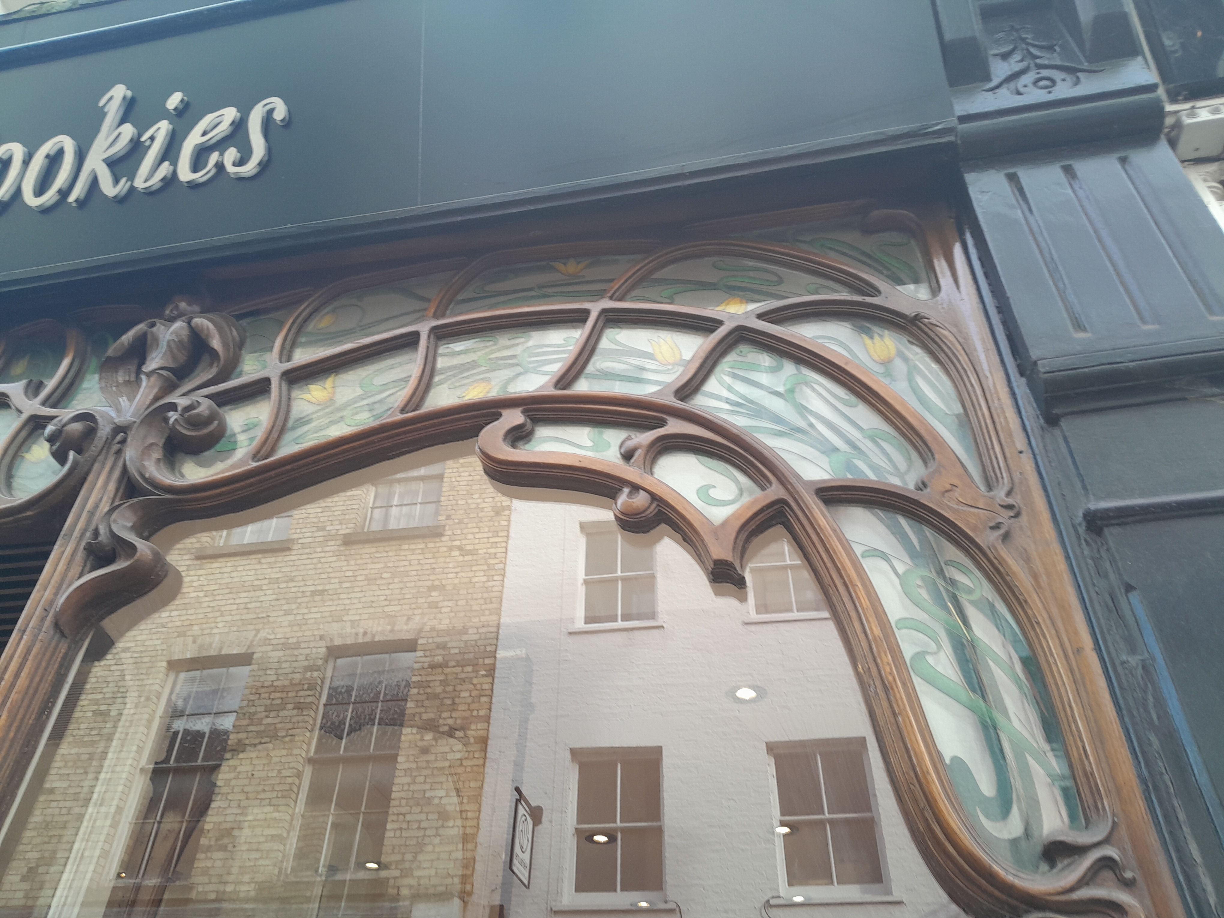 20 Market Street is listed grade II. The listing says it has a "central recessed glass door with carved timber bottom and top rails in vegetative Art Nouveau style with figurative carving. Display windows either side with carved bottom rails in Art Nouveau style, and open carved timber upper panels of vegetative type with floral and figurative carving... The shop front is an elaborate and very rare survival."