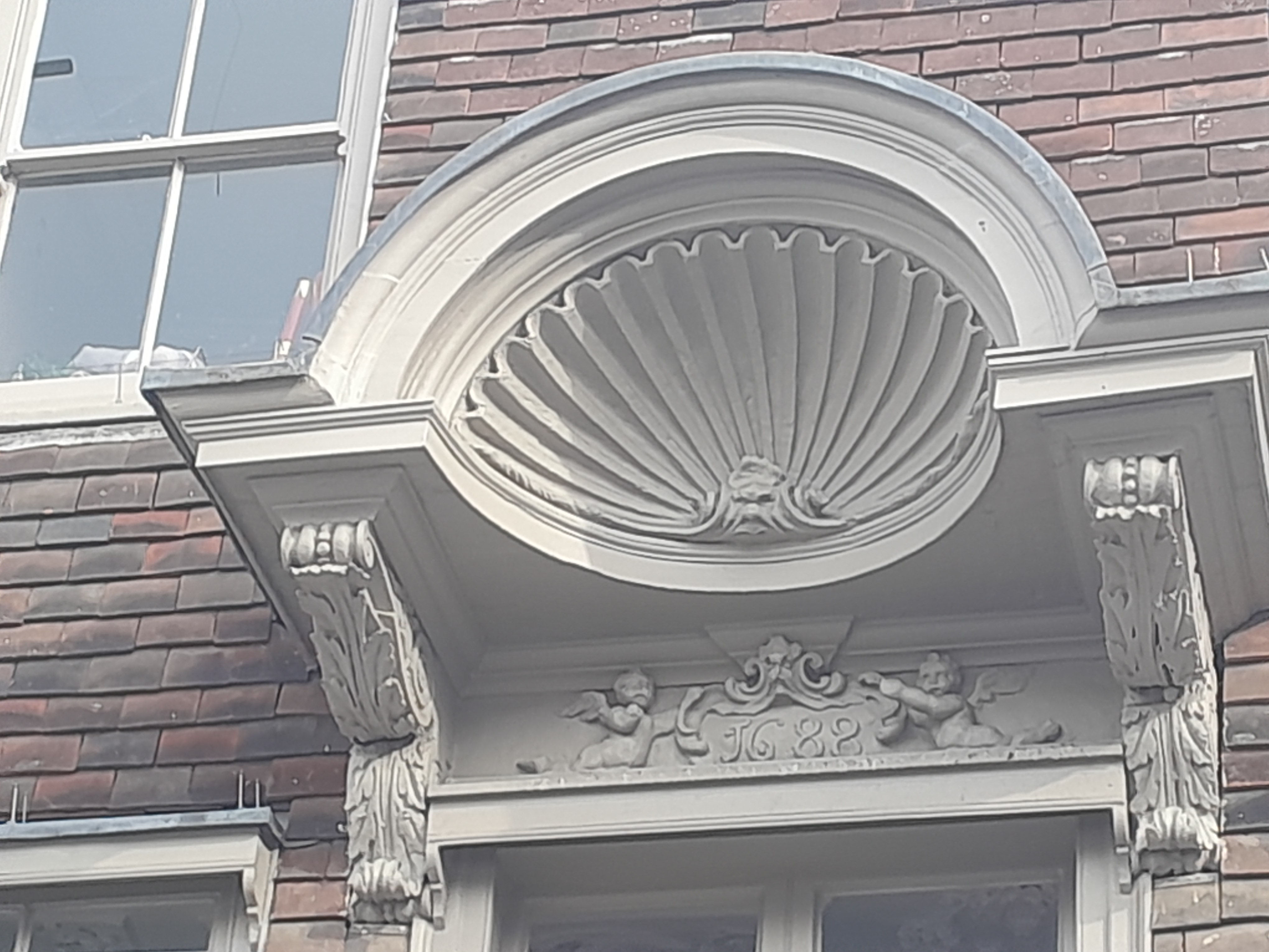 23 Trinity Street is listed grade II. It is early C18. There are heads above the windows. One of them looks as if he's going to sneeze!