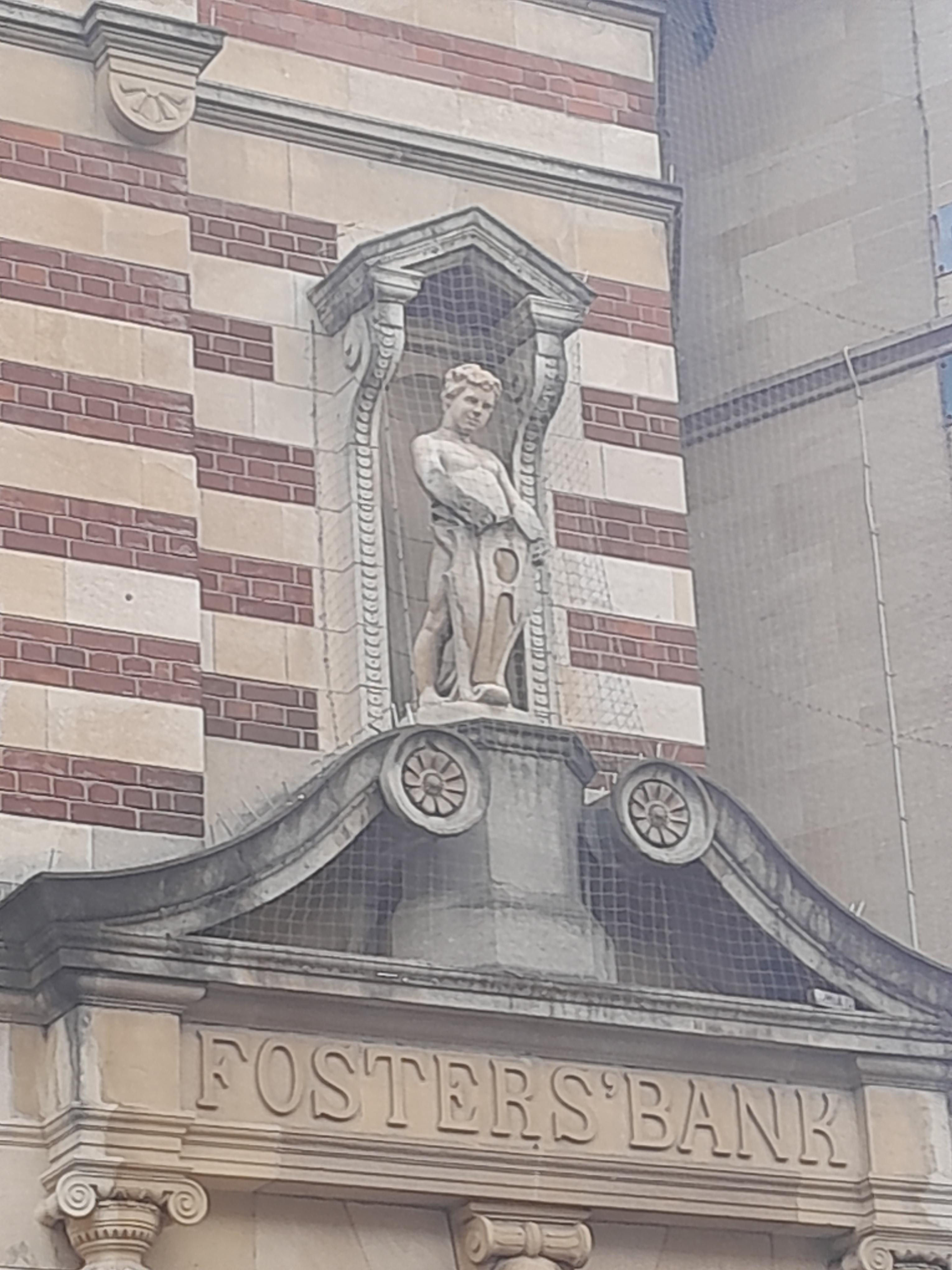 1-5 Sidney Street, Lloyd's Bank is listed grade II*. It was built in 1891, in a Dutch Renaissance style. There is a frieze of carvings round it, including into Hobson Street.