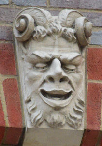 If you look up at the buildings on either side of Sussex Street, you will see carvings of either leaves or rams heads. I suspect that they are a joke. There are different types (or orders) of pillars. An Ionic pillar has spirals at the top, based on rams horns, and Corithinthian has acanthus leaves (and rams horns as well). Here we have the whole head or plant! There are more conventional pillar carvings as well.
