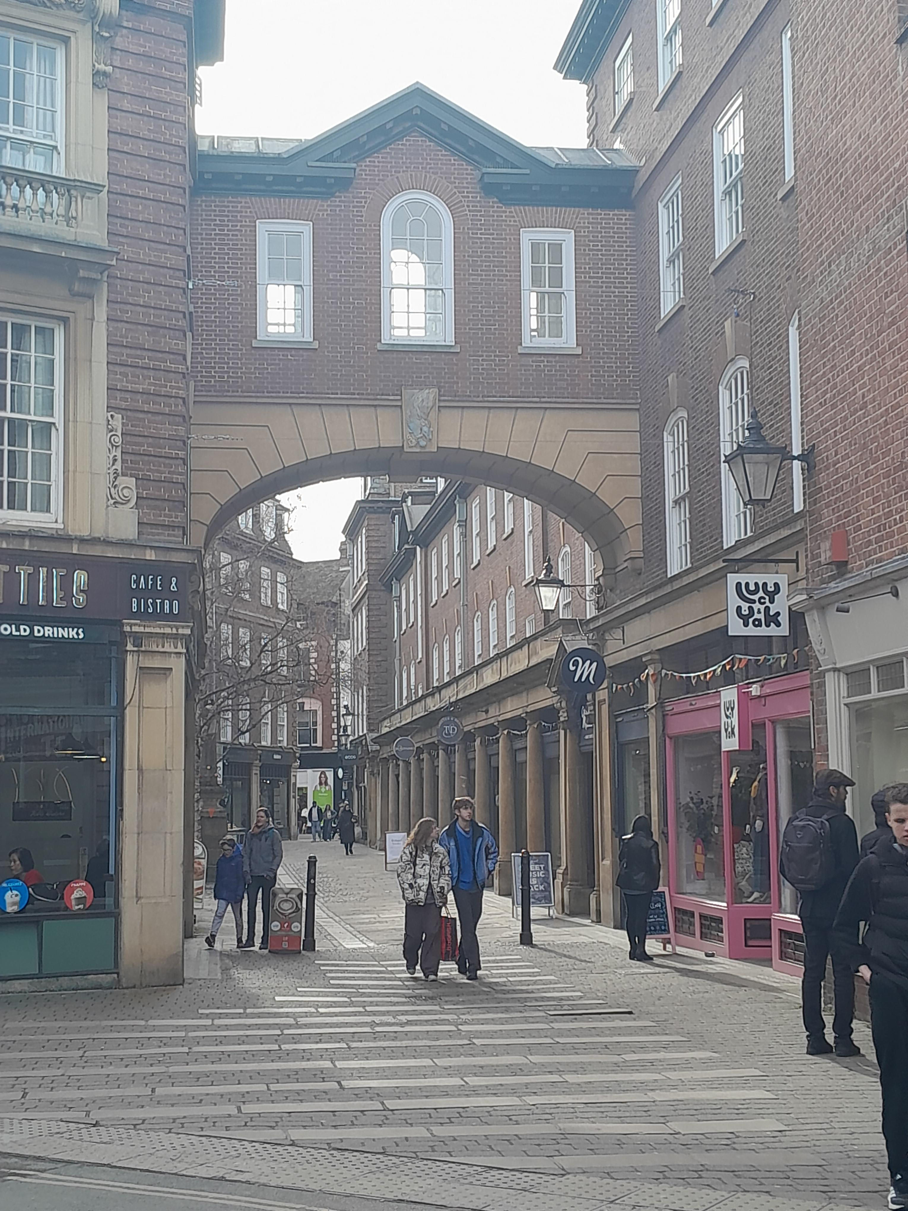 Sussex Street is listed grade II. It was built in 1928-39. At the end of Sussex Street, there is an archway over the street. This joins two parts of Sidney Sussex college. This archway was built in 1991. Walk under the arch, and turn round to look at the other side. There is a blue porcupine. Sidney Sussex College was founded by Frances Sidney, Countess of Sussex. The crest of her family is a blue and gold porcupine, and so this is the corporate seal of the college.