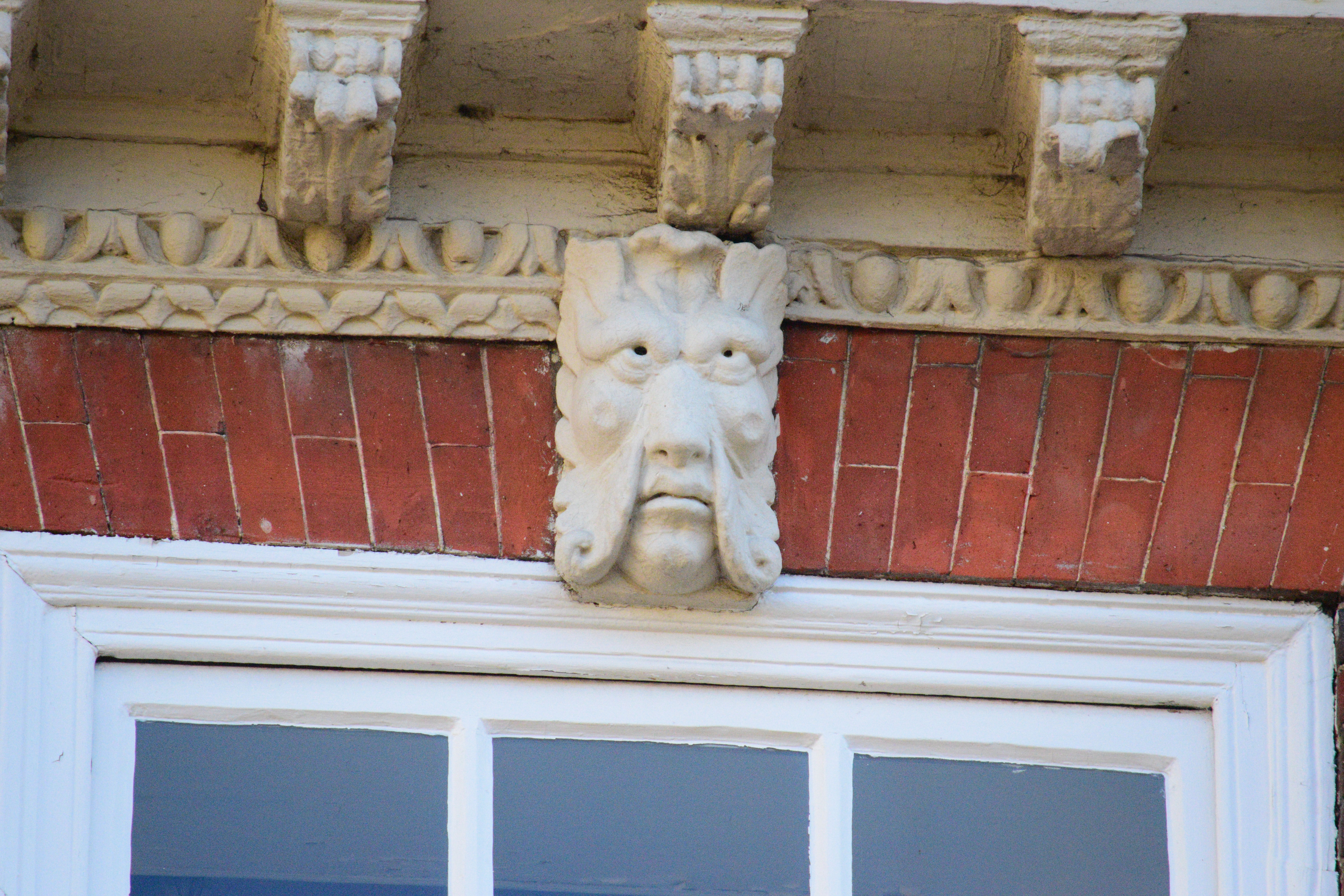 6 Sidney Street was built, I think, in late 19C. It has two faces above its windows. This house used to be owned by the Miller family, who founded Millers, the music shop in Sussex Street.