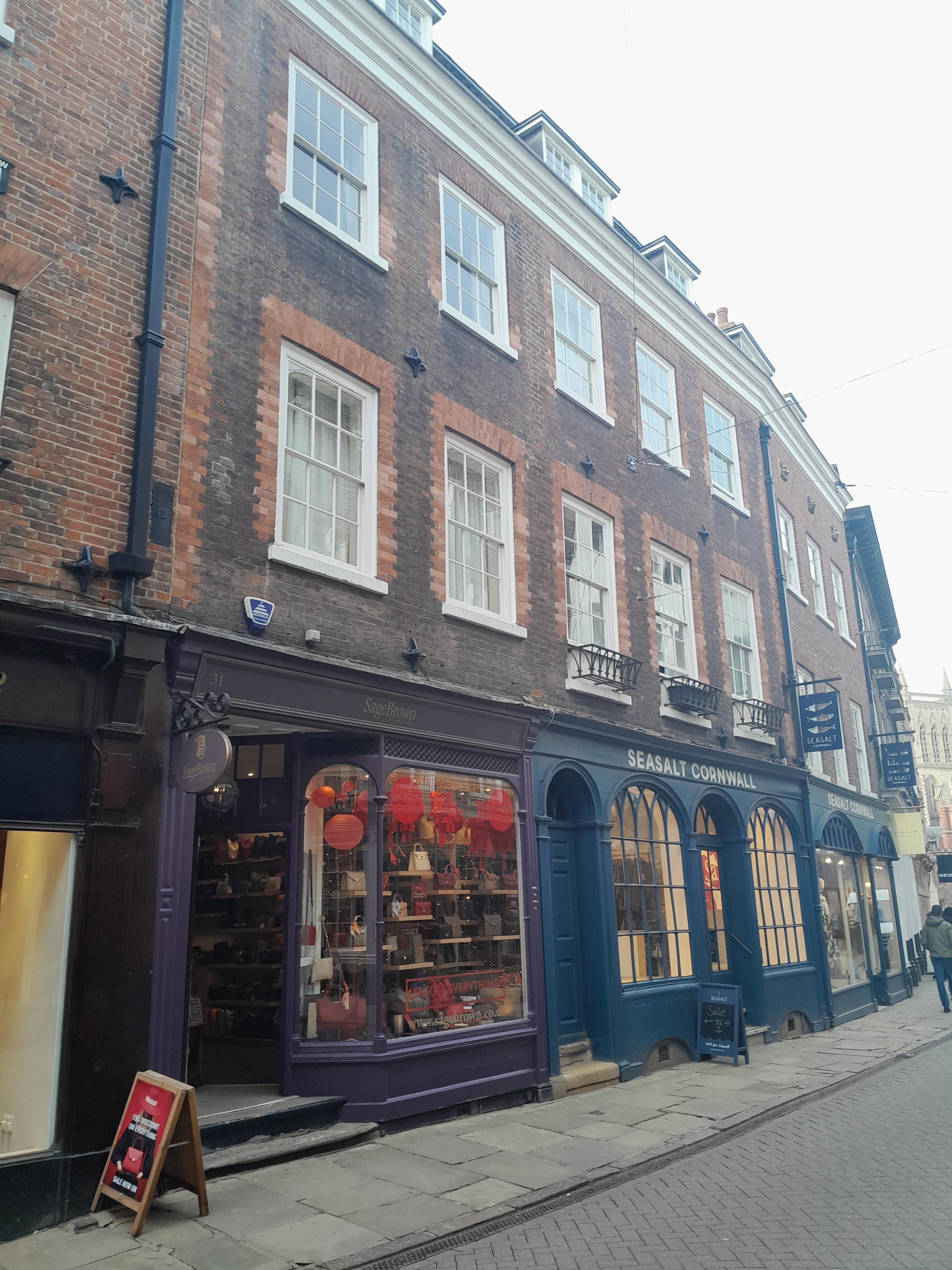 30-31 Trinity Street is listed grade II*. It is C18. The listing says that "The Georgian shop front to No 30 is a particularly good example of its kind."