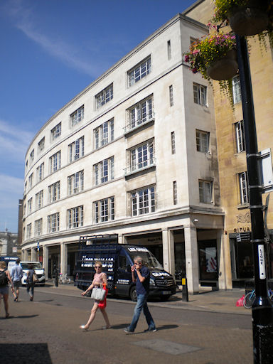 16-21 Market Hill (listed grade II) was built in 1937. It is on the north side of the market place. The architect won the RIBA bronze medal for his design. Pevsner describes it as the best modern building of its date in Cambridge. There are small decorative flourishes.