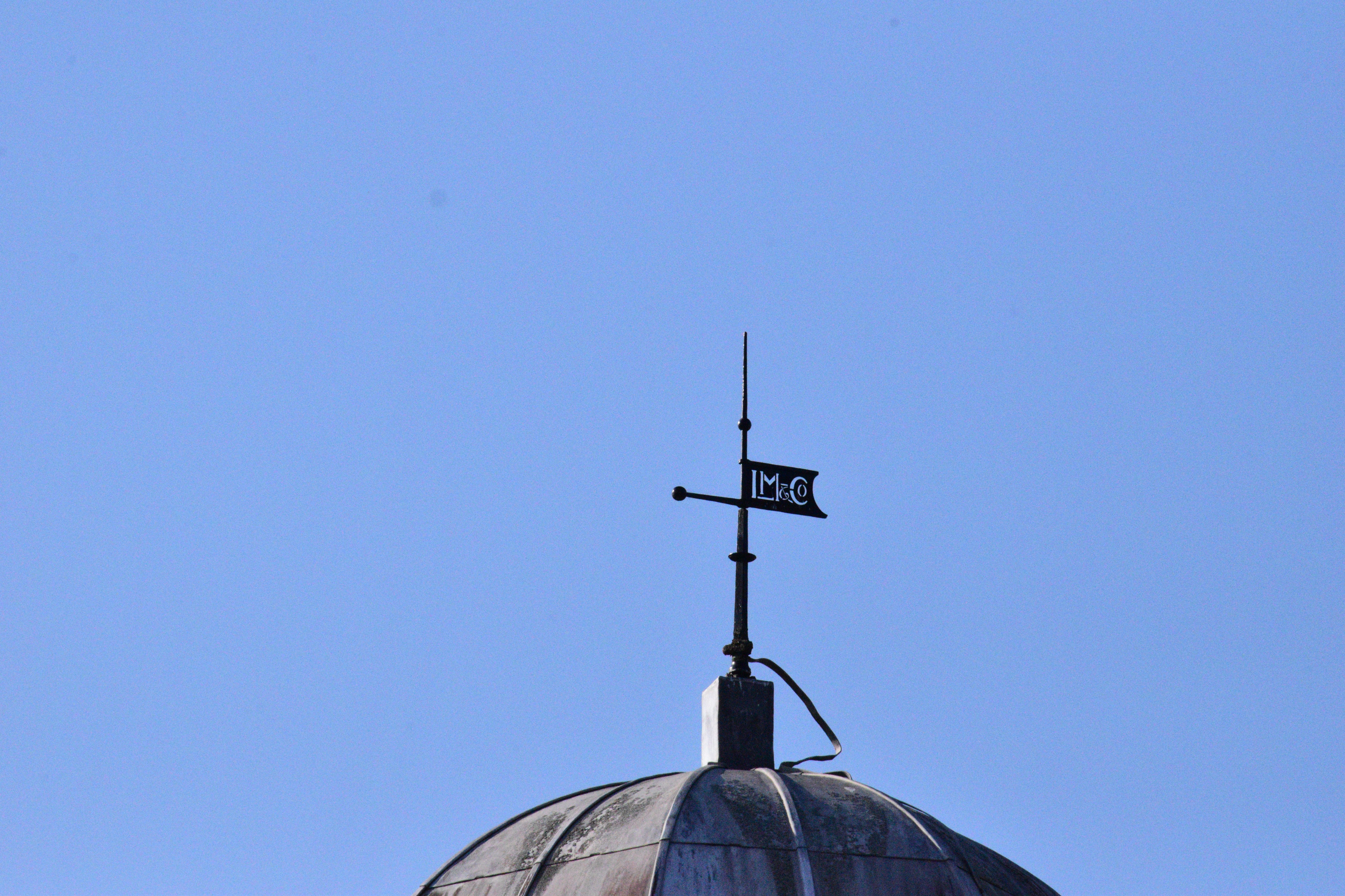 From this website: "Another club founded in 1827, Jesus College, built this boathouse in 1932 to replace a Victorian structure that had been destroyed by fire. The rebuild boasted both a weather vane and a clock tower and this may have given rise to the myth that displaying the former means that a college has gone Head of the River for five consecutive years and having the latter means that it has had ten years consecutive Headships (or perhaps five Lents and five Mays)."