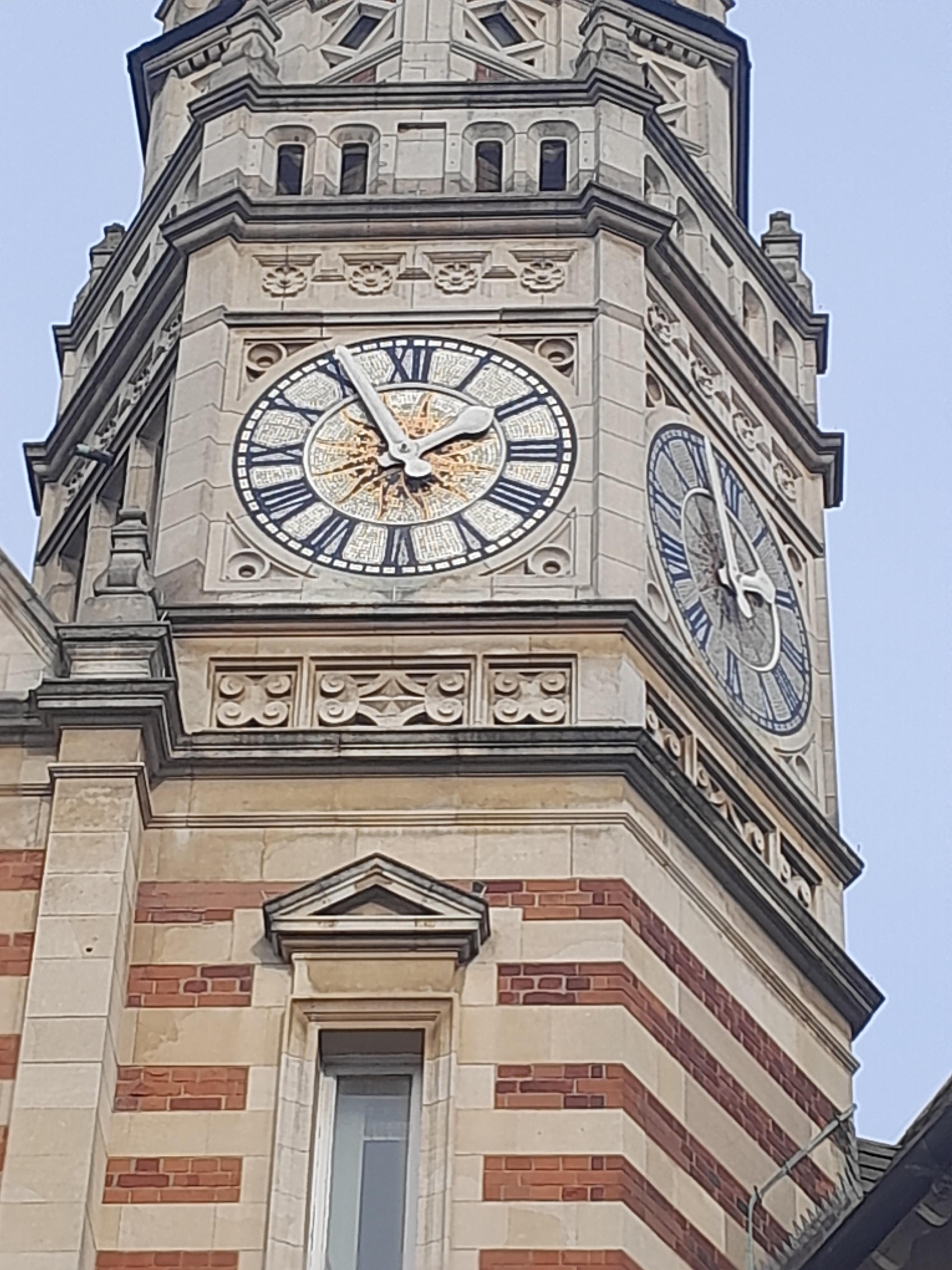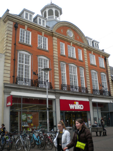 Lloyd's Bank in Sidney Street (end of Petty Cury) is listed grade II*. It was built as Fosters bank, in 1891, in a Dutch Renaissance style. It has a splendid clock, which does work.