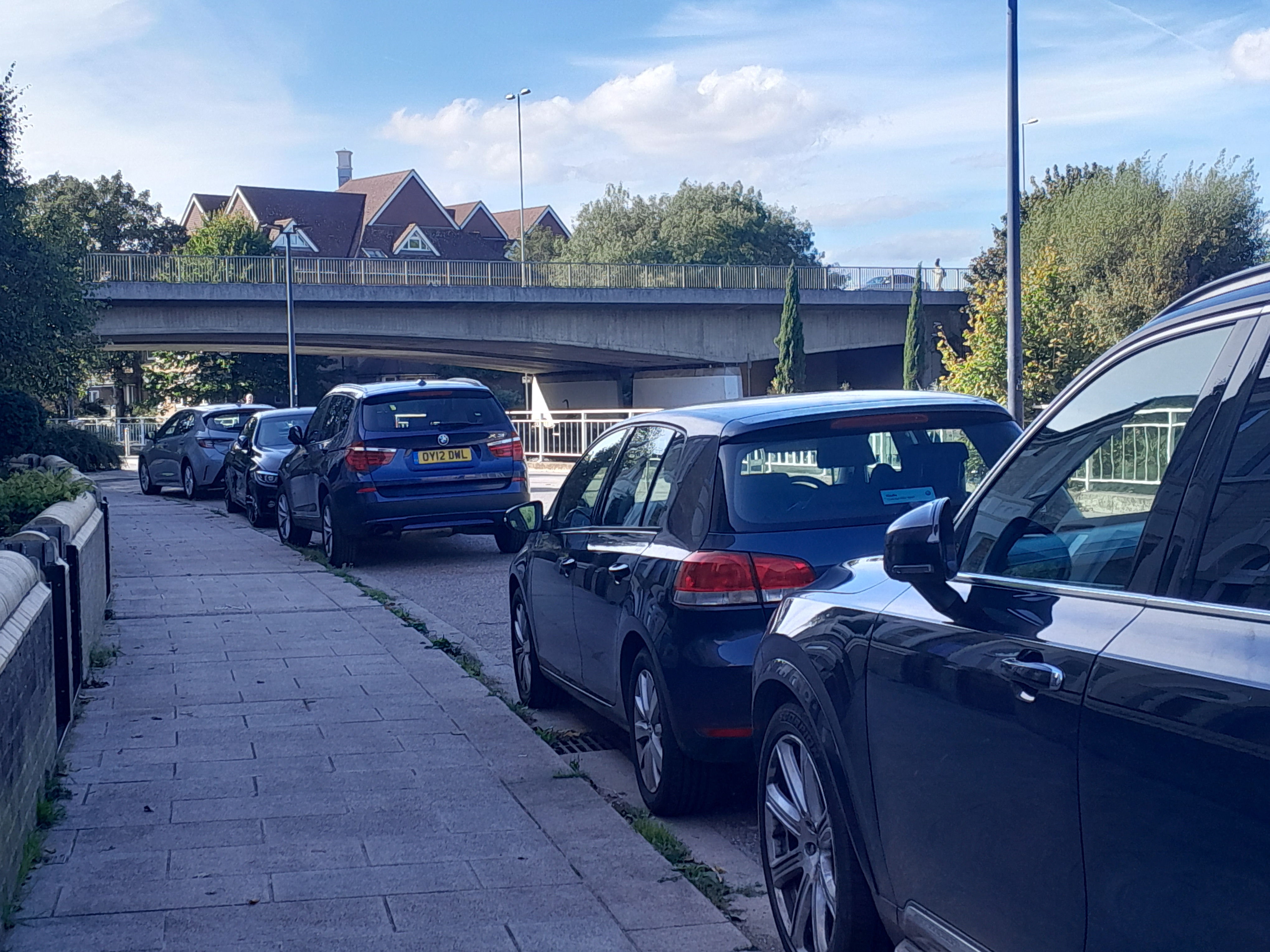 The next bridge along the river is a road bridge, Victoria Avenue Bridge. It takes quite a lot of traffic, although not as much as the Elizabeth Way Bridge. Northwards, it does lead into a notorious junction called Mitcham's Corner, which is a mega-roundabout, mis-shapen, with houses in the centre. If you are coming through Mitcham's Corner in a car or bicycle, then look at the lane markings on the road very carefully!