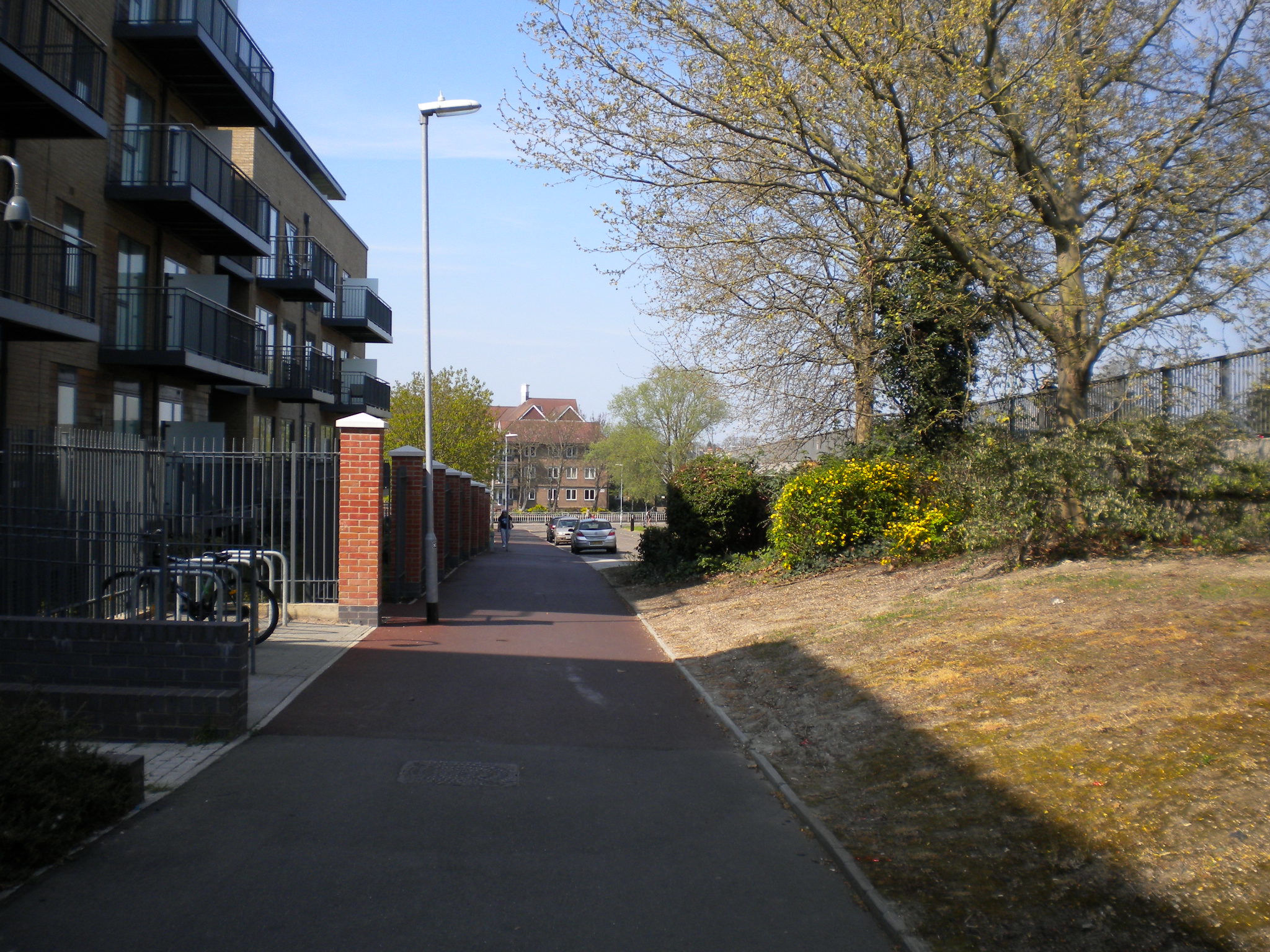 When at ground level again, look for a path which runs to the left of Elizabeth Way (the main road over the river). Walk down this to the river. Apparently it's called Walnut Tree Avenue - I never knew that! |
