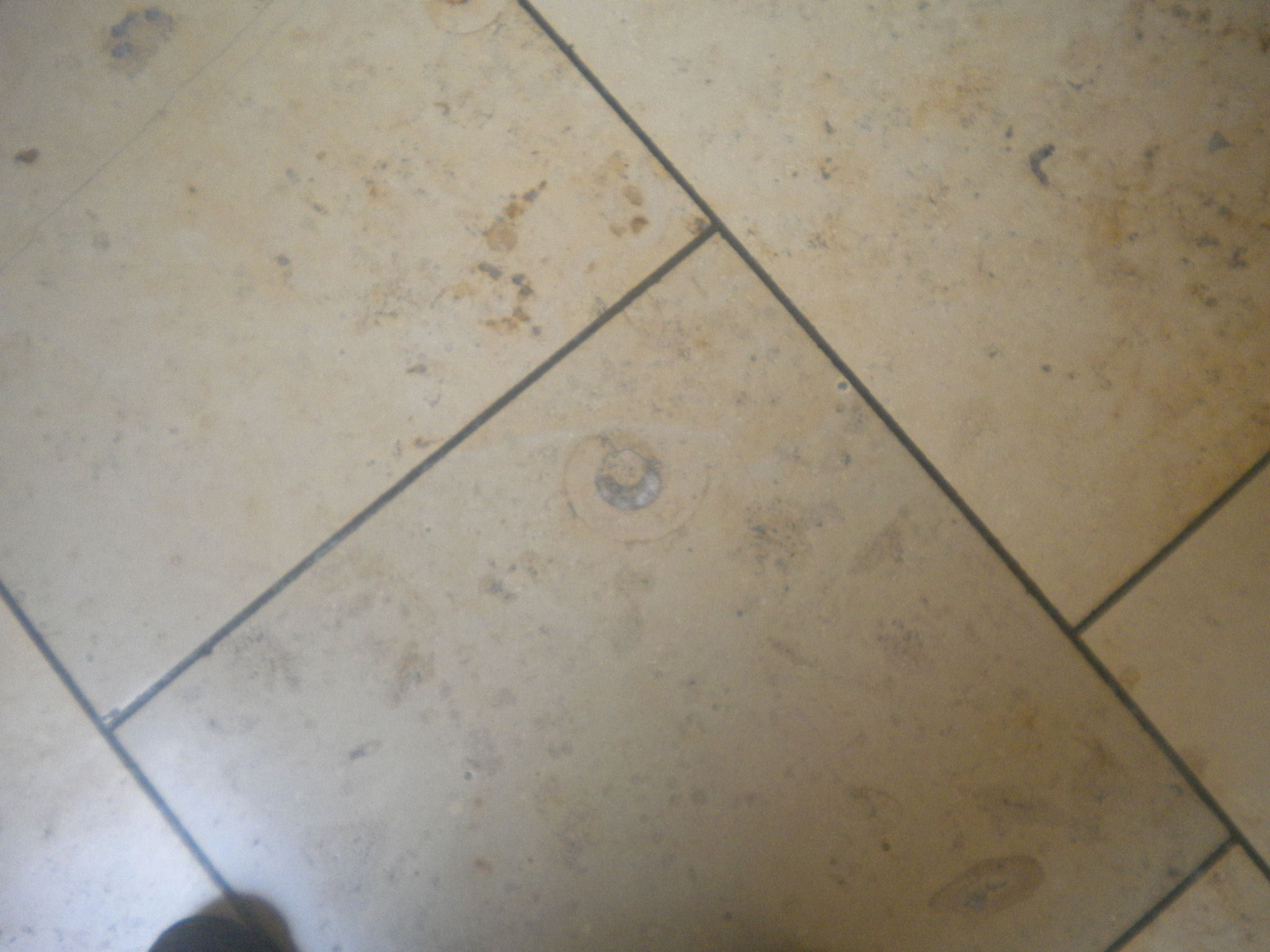 This shopping mall is paved with a stone that contains fossils. There is an ammonite in front of the escalator up to the library.