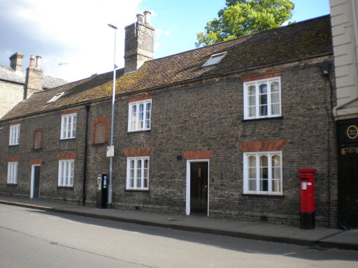 Jakenett's Almshouses are listed grade II. They were built in 1790. The plaque says "Thomas Jakenett formerly a Burgefs of this town and Agnes his wife Founded an Almfhoufe in the reign of Edw. the 4th 1469, on the South fide in Gt. St. Mary Church-Yard, which was taken down in confequence of an Act of Parliament being granted for Paving and lighting the town of Cambridge, and was rebuilt in this fpot in the year 1790 at the joint expence of the Univerfity and the Inhabitants of Gt. St. Mary's Parifh."