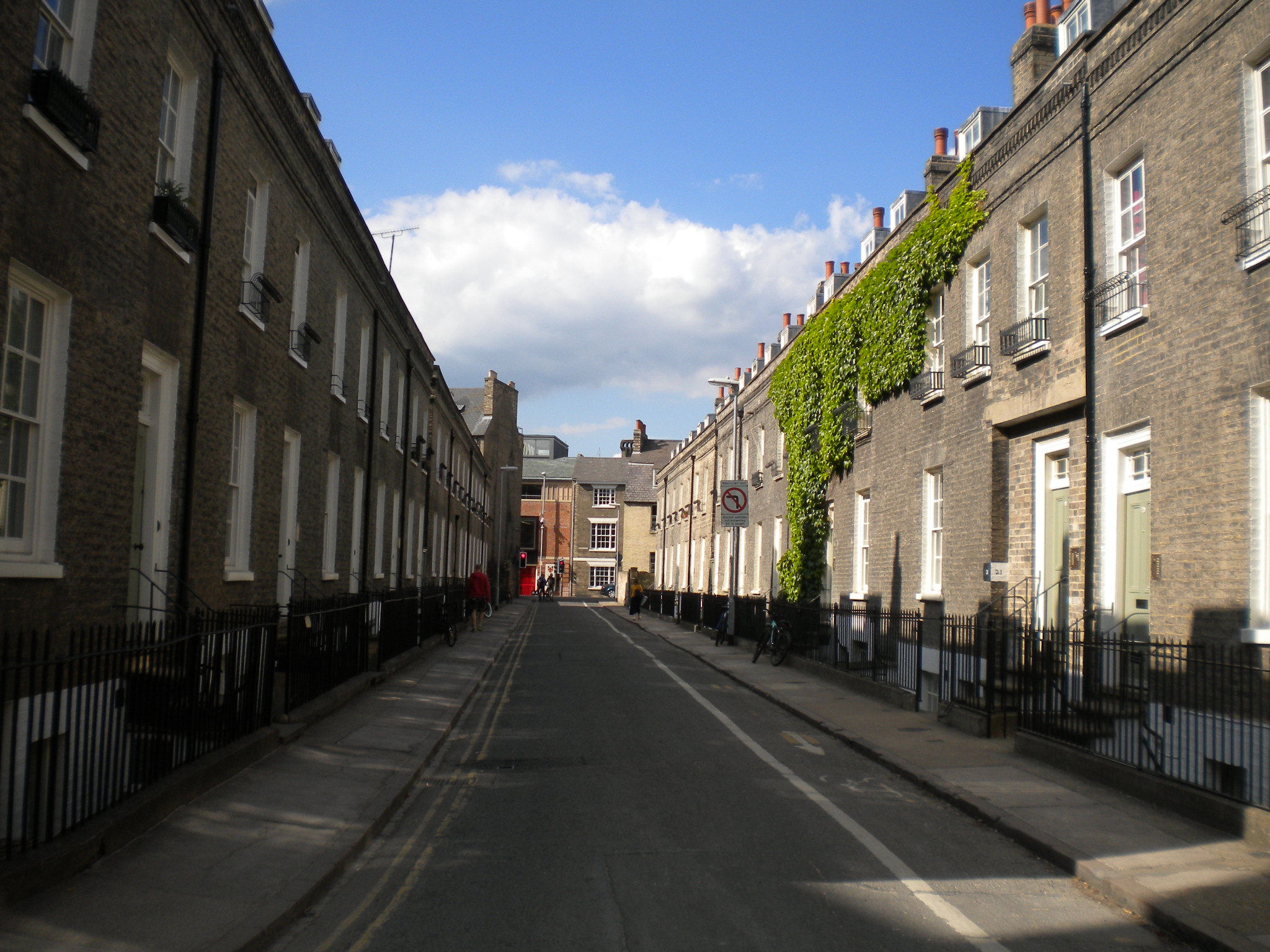 Malcolm St is listed grade II. These were built around 1842. These were built as student accomodation. The landlord lived in the basement, with its own entrance. Malcolm Street is named after Malcolm IV of Scotland, a benefactor or possibly founder of St Rhadegund's nunnery, built in 1130s. The site, and some of the buildings, were taken over by Jesus College.