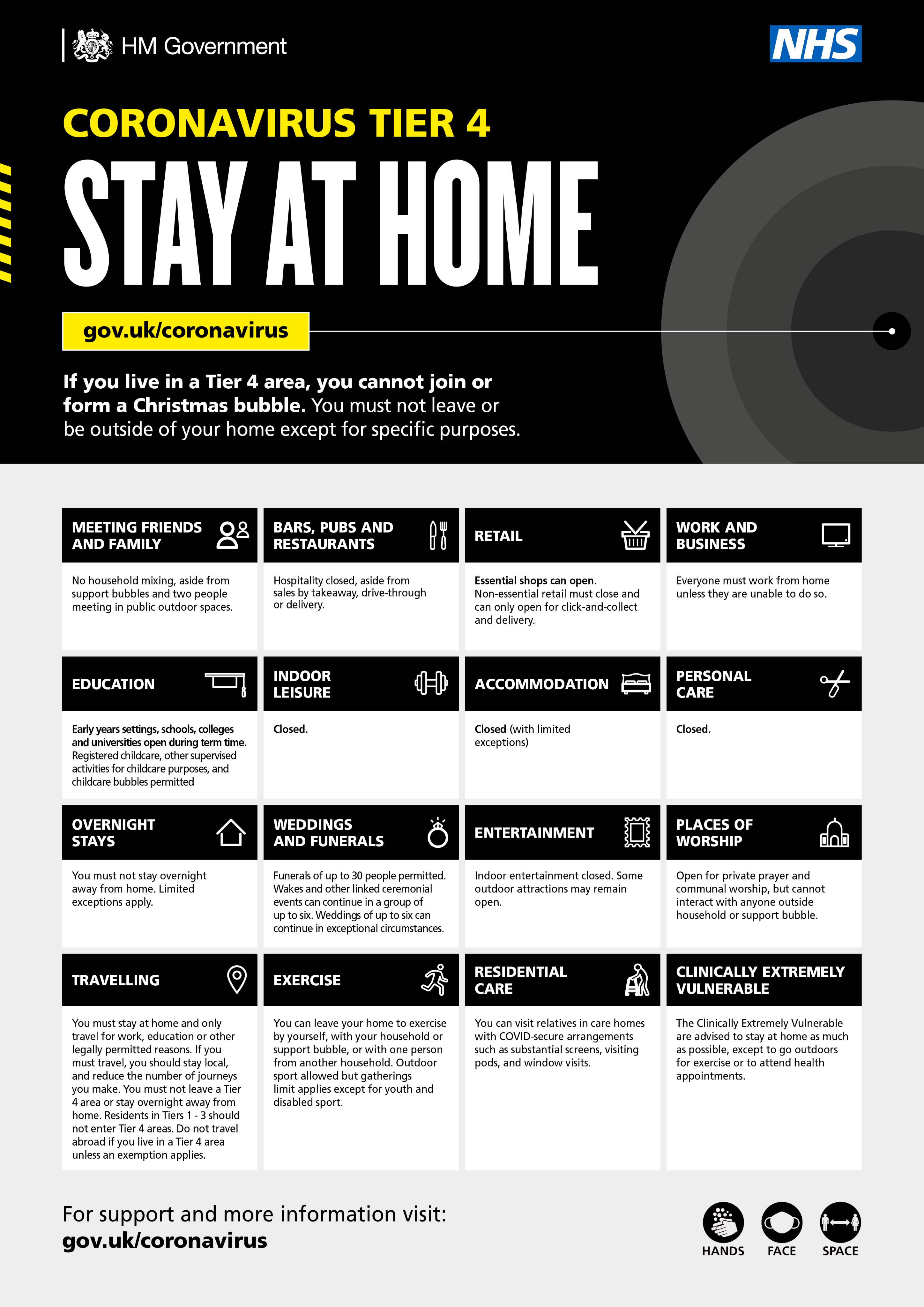 | Dec 20 | Tier 4 introduced, covering Greater London and parts of East & South-East England. (SI2020/1611)