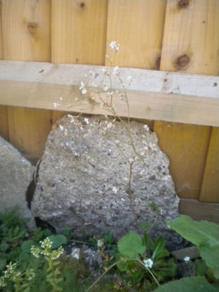 London Pride is a perennial. This flowered in May. The photo shows before it is fully out. The flower stem grows longer, with the flowers at the top.