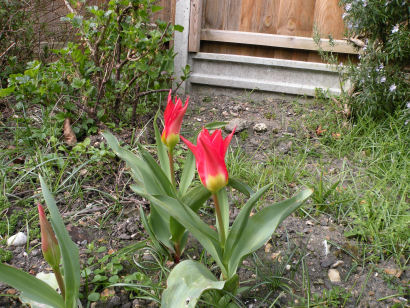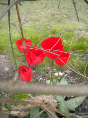 Tulip are grown from bulbs. These flowered from March to April. There are several varieites which flower at different times.