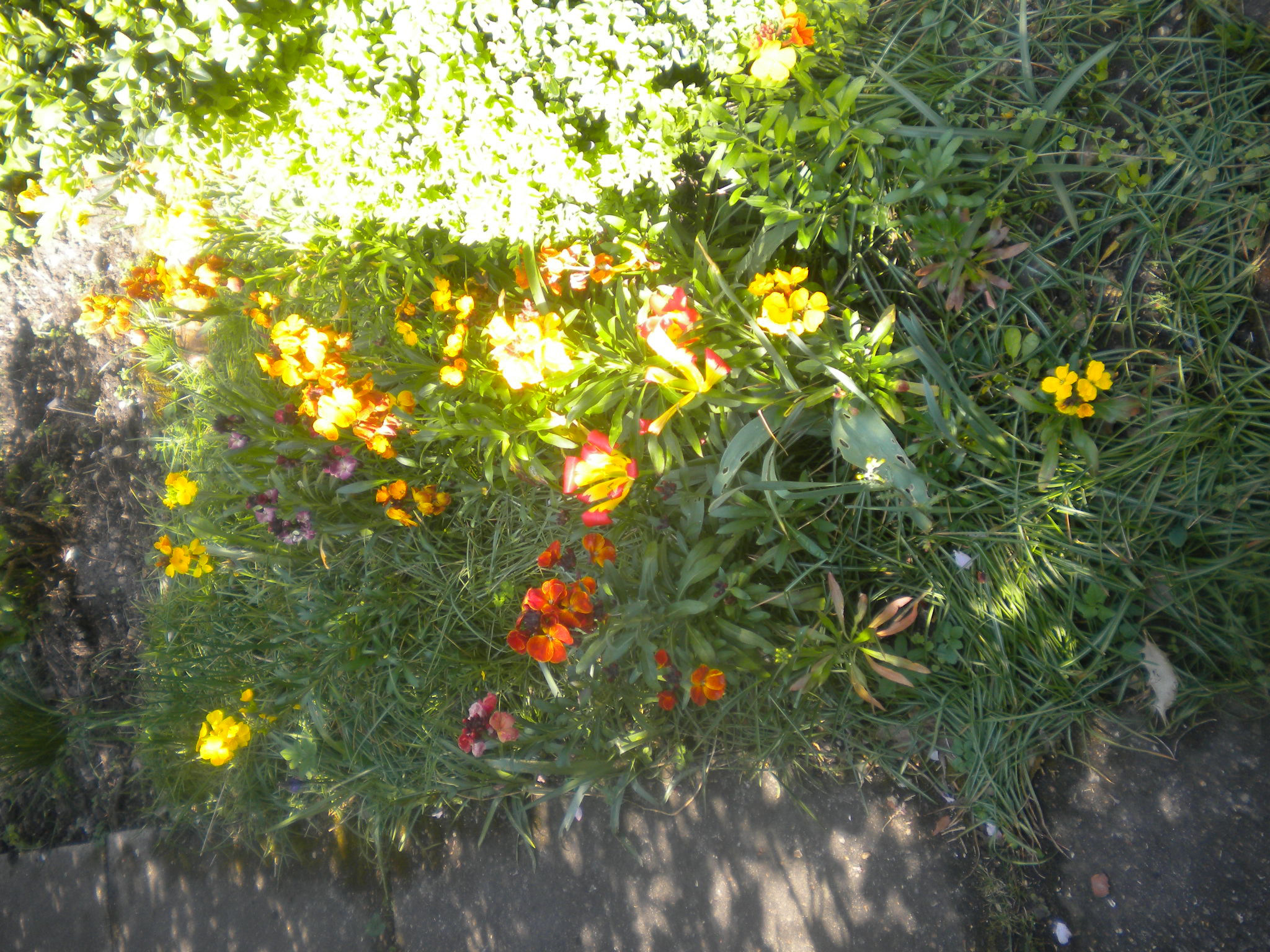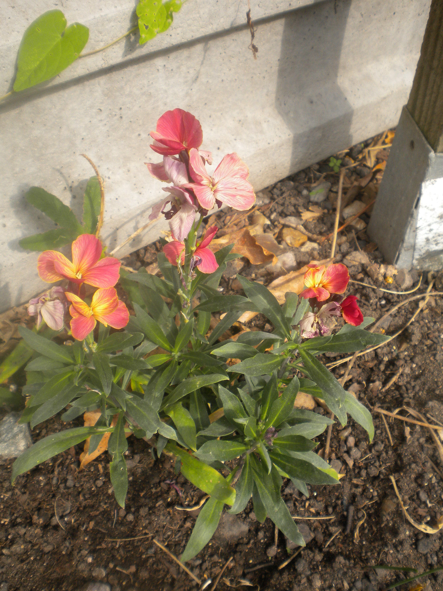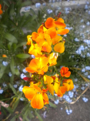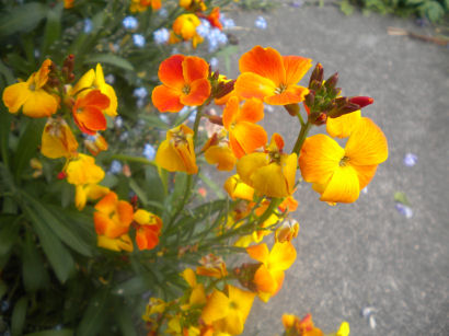 Wallflower are perennials, but are usually grown as biennials. These flowered in April, although buds started to show in late February. There is a good range of colour.